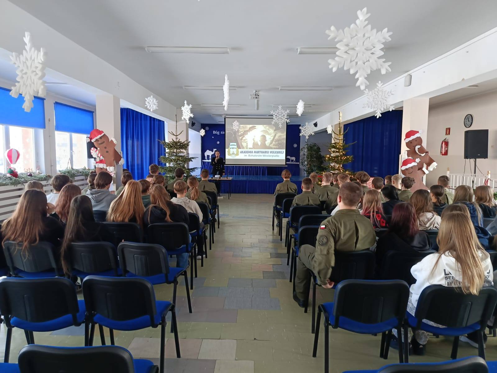 Dnia 8 stycznia 2026 odwiedziła naszą szkołę przedstawicielka Akademii Marynarki Wojennej aby opowiedzieć o rekrutacji, nauce i życiu codziennym na tej wojskowej uczelni.
