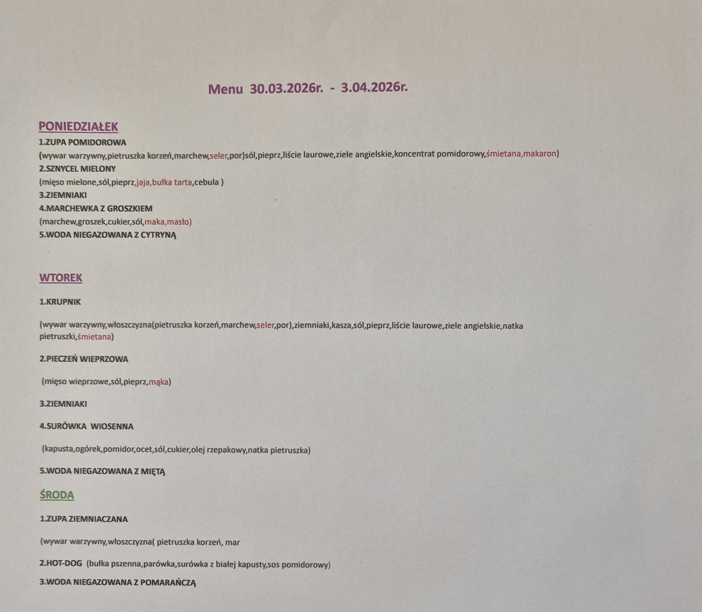 menu przedszkole 30.03-03.04