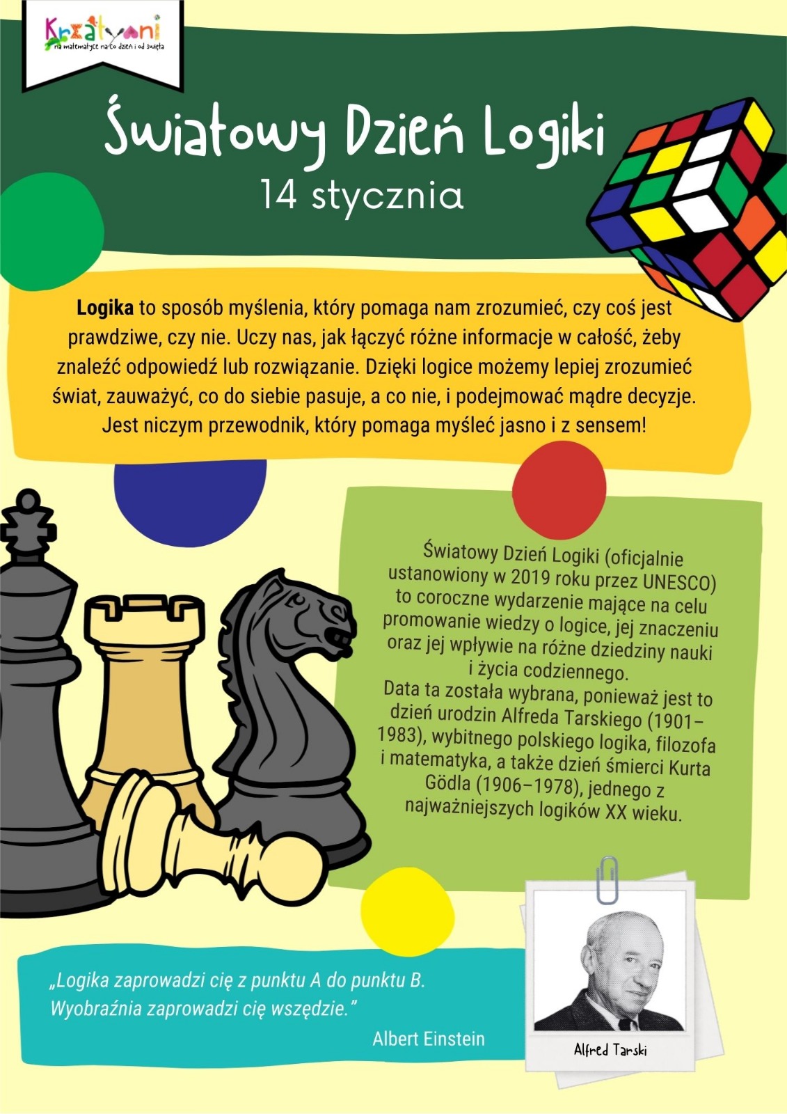 Tuż przed feriami uczniowie naszej szkoły w ramach realizacji projektu "Kreatywni na matematyce na co dzień i od święta" wzięli udział w zajęciach zorganizowanych z okazji Światowego Dnia Logiki, obchodzonego 14 stycznia 2026 roku.