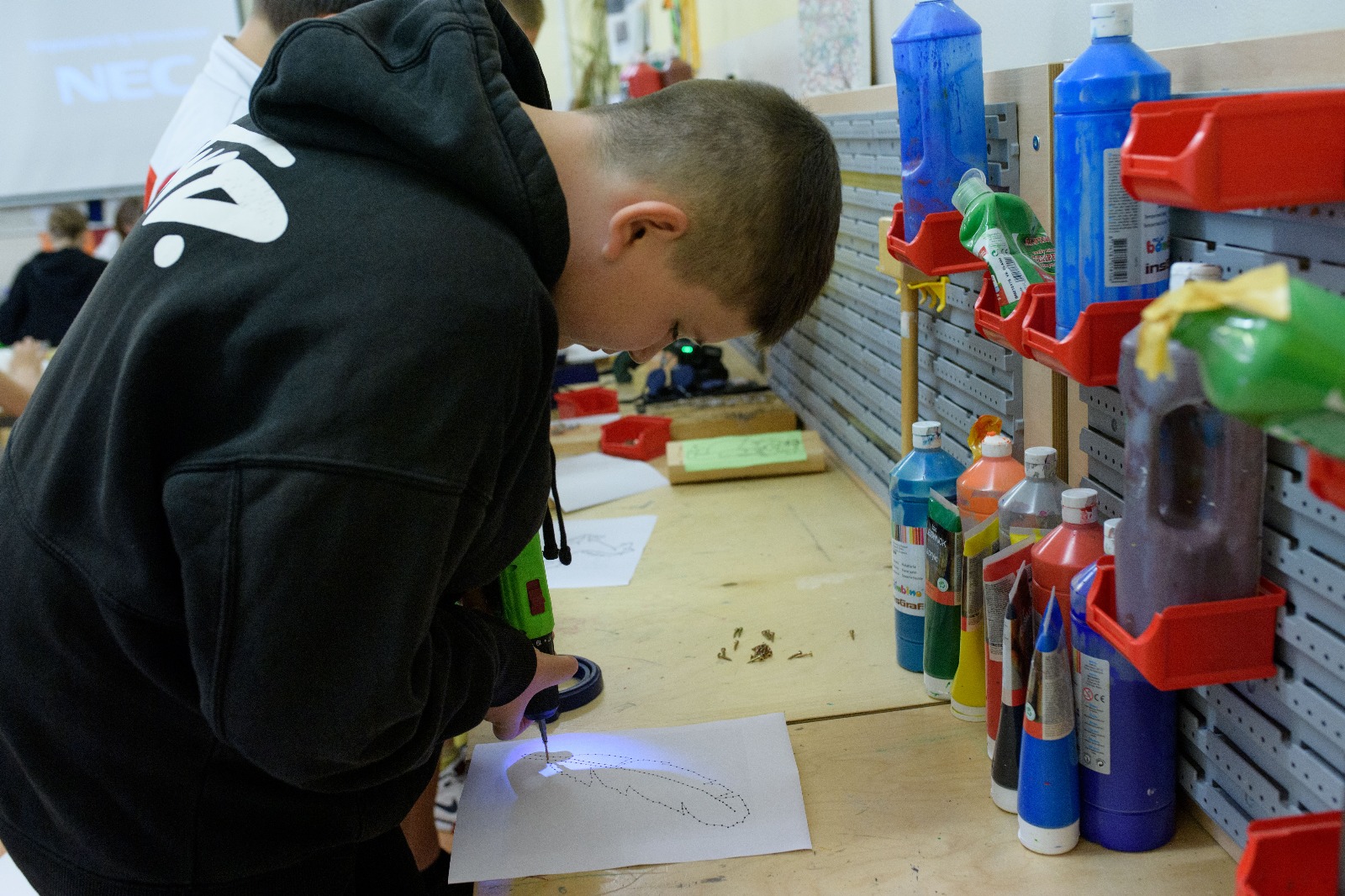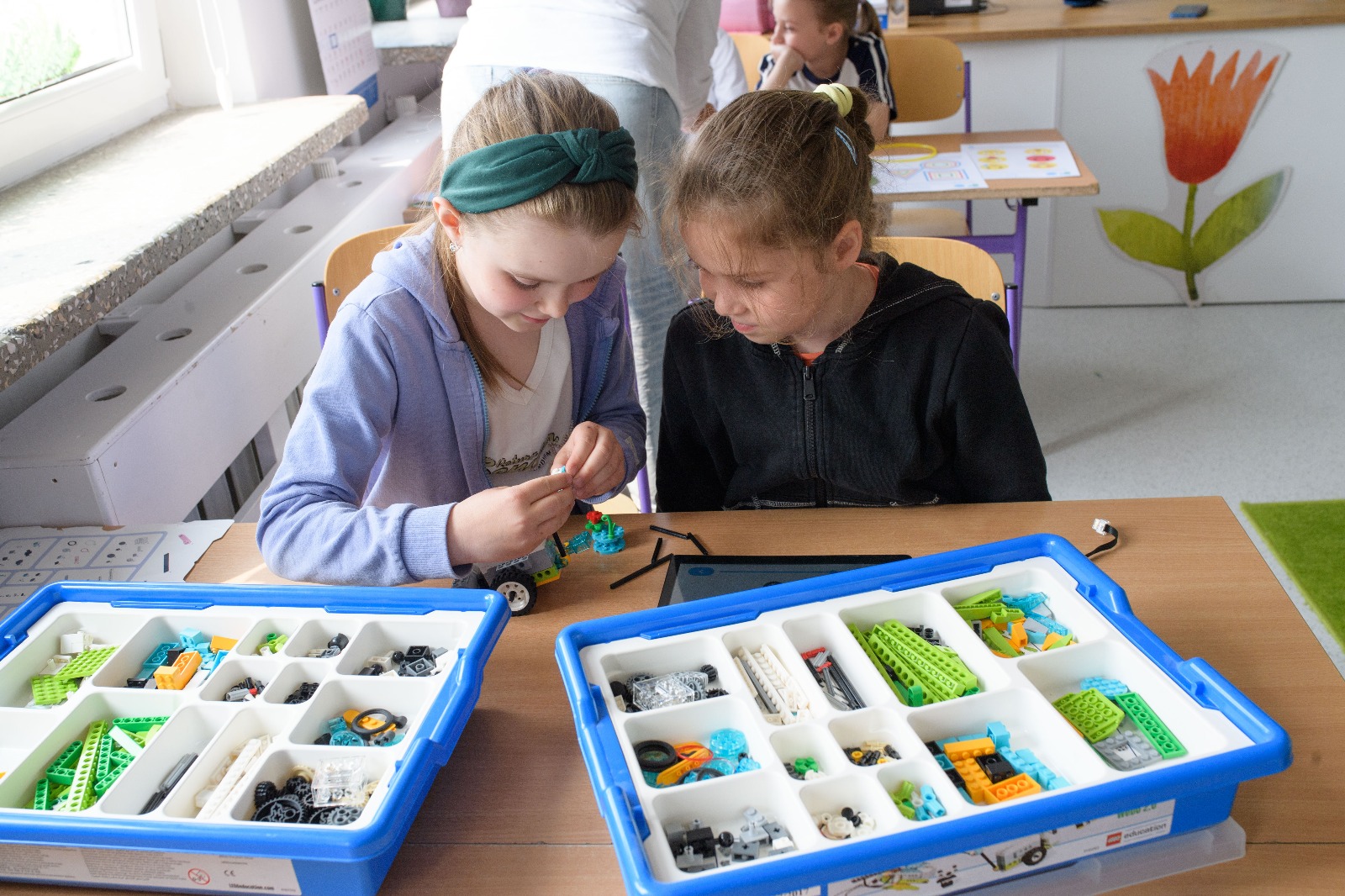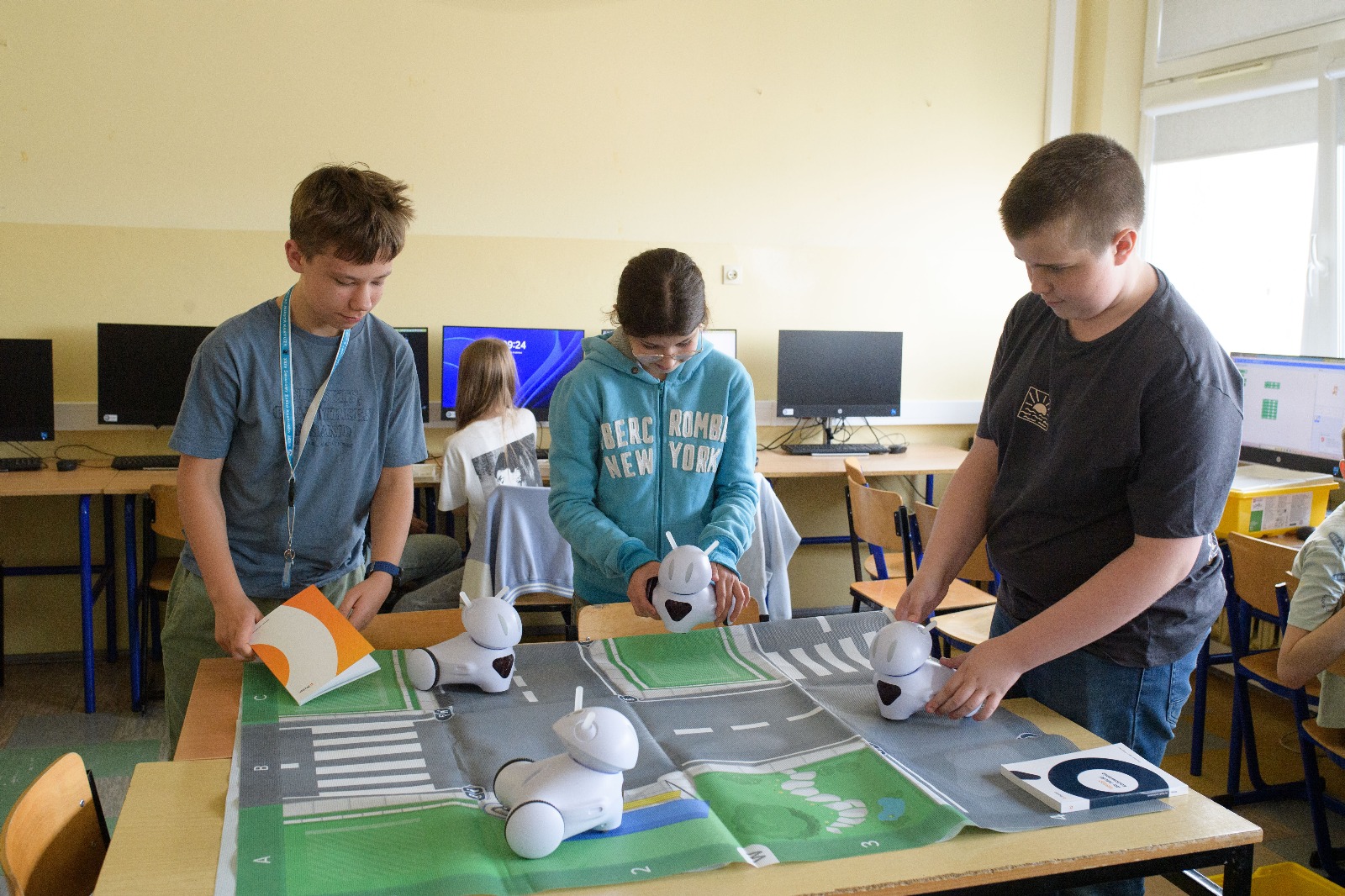 Uczniowie klas I–IV szkoły podstawowej zgłębiali tajemnice przyrody – rozpoznawali ślady zwierząt, uczyli się odróżniać gatunki ptaków i obserwowali otaczające ich środowisko. Z kolei starsze klasy rozwijały swoje kompetencje cyfrowe i logiczne na warsztatach z robotyki, programowania oraz kartografii. Zajęcia te nie tylko uczyły obsługi nowoczesnych narzędzi, ale także rozwijały kreatywność, myślenie przestrzenne i umiejętność pracy zespołowej.