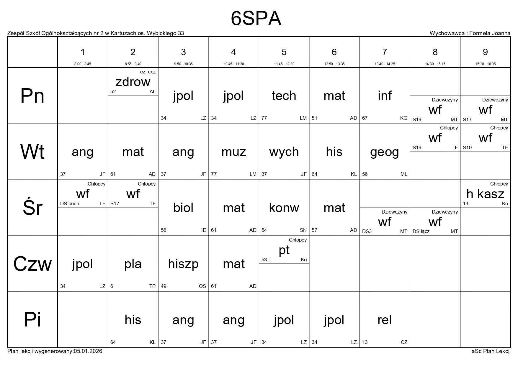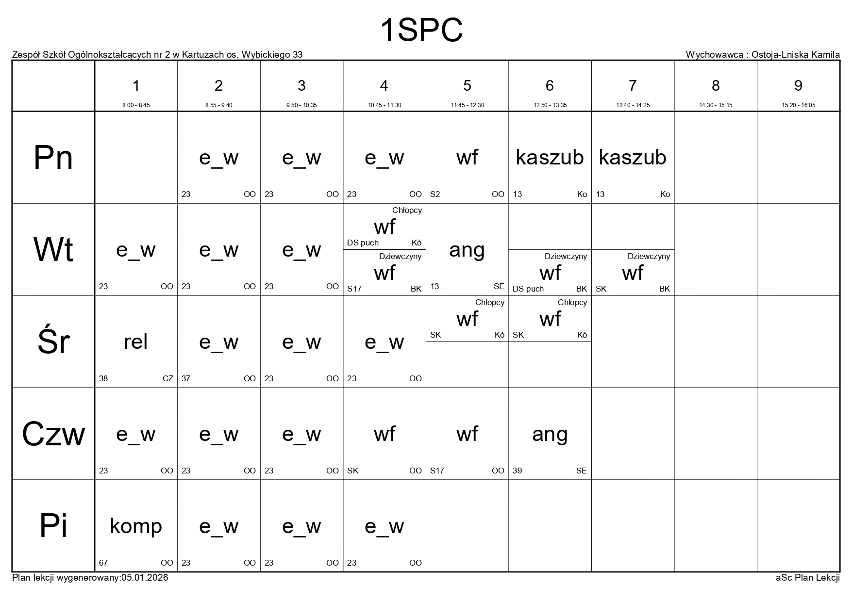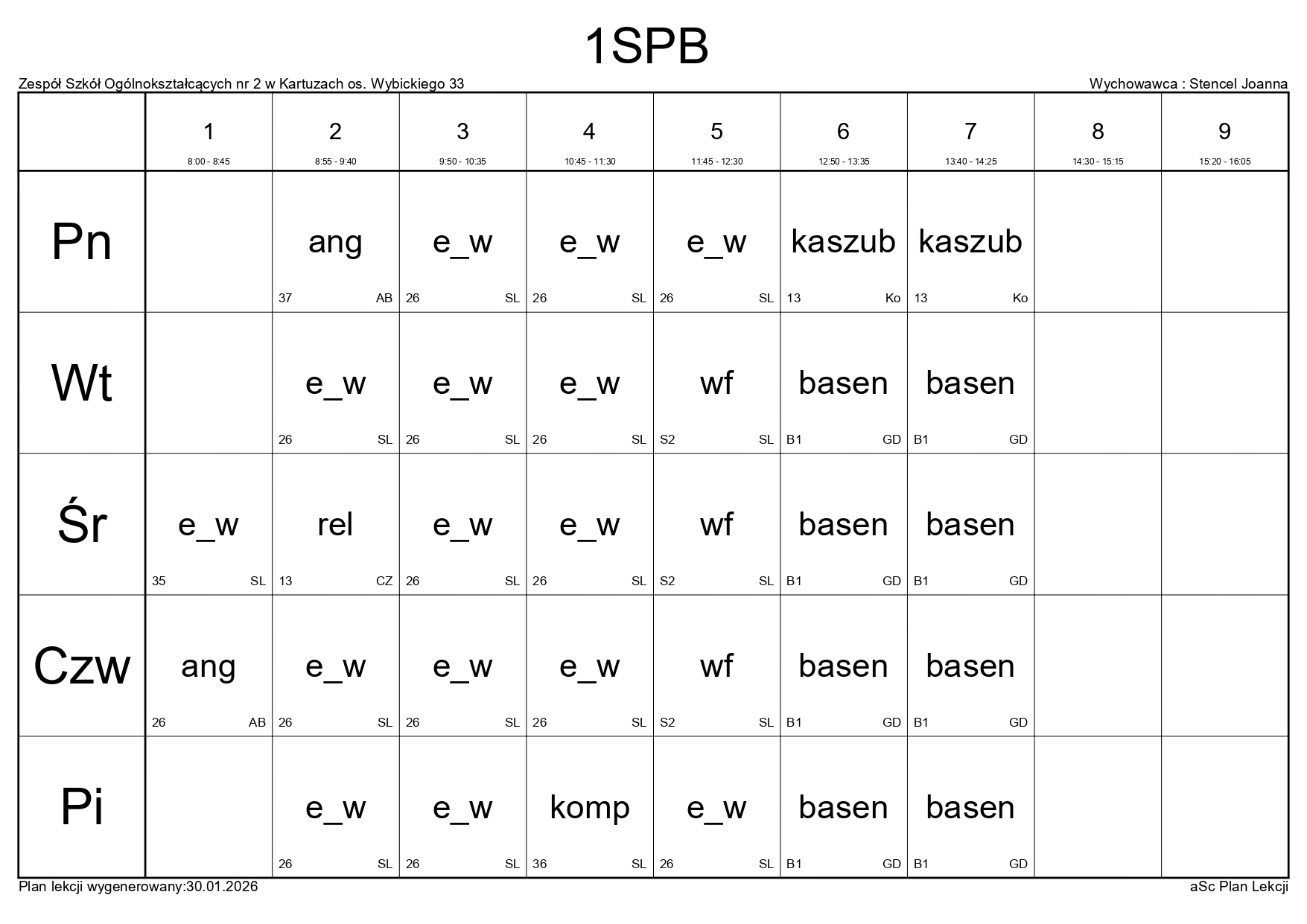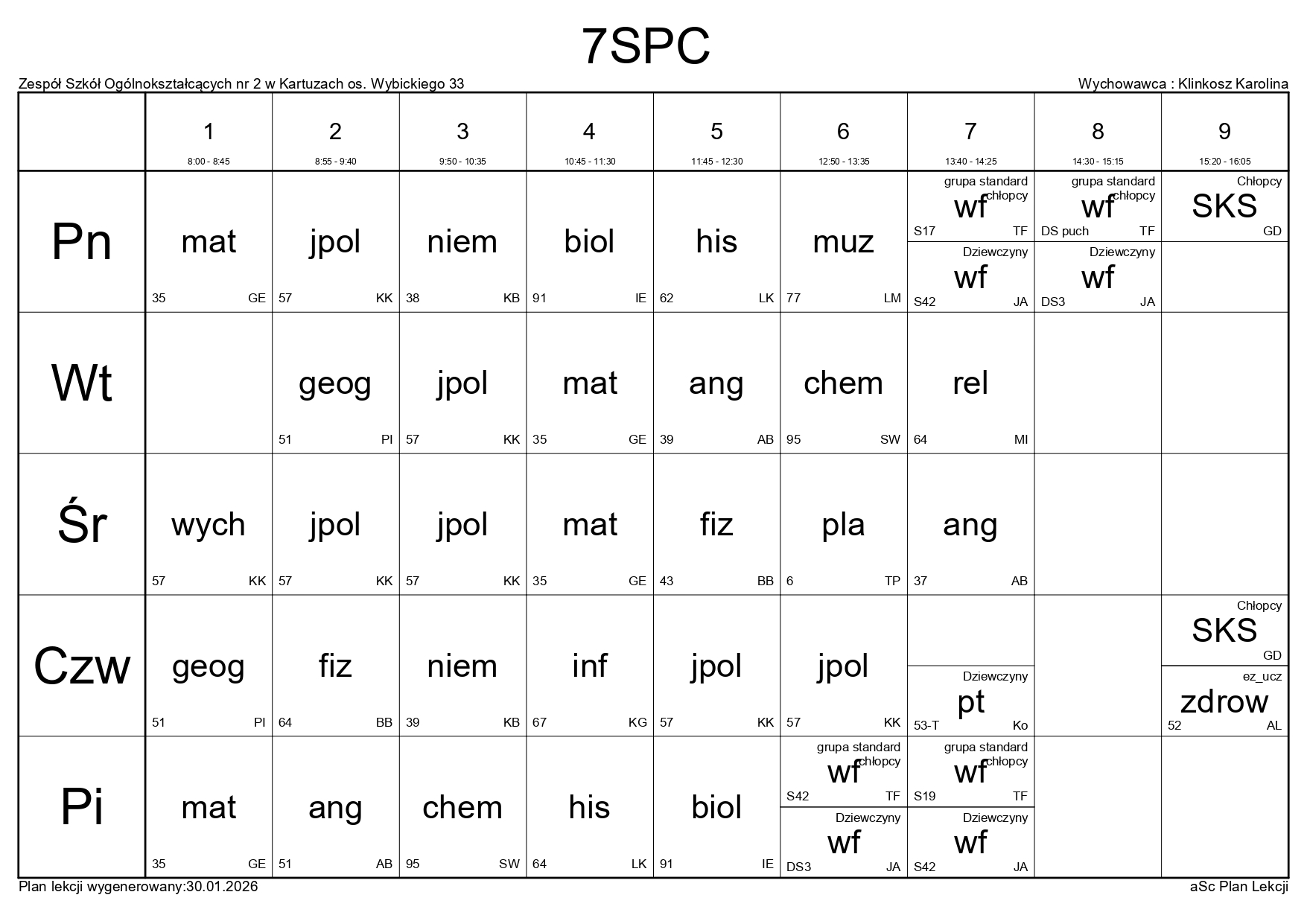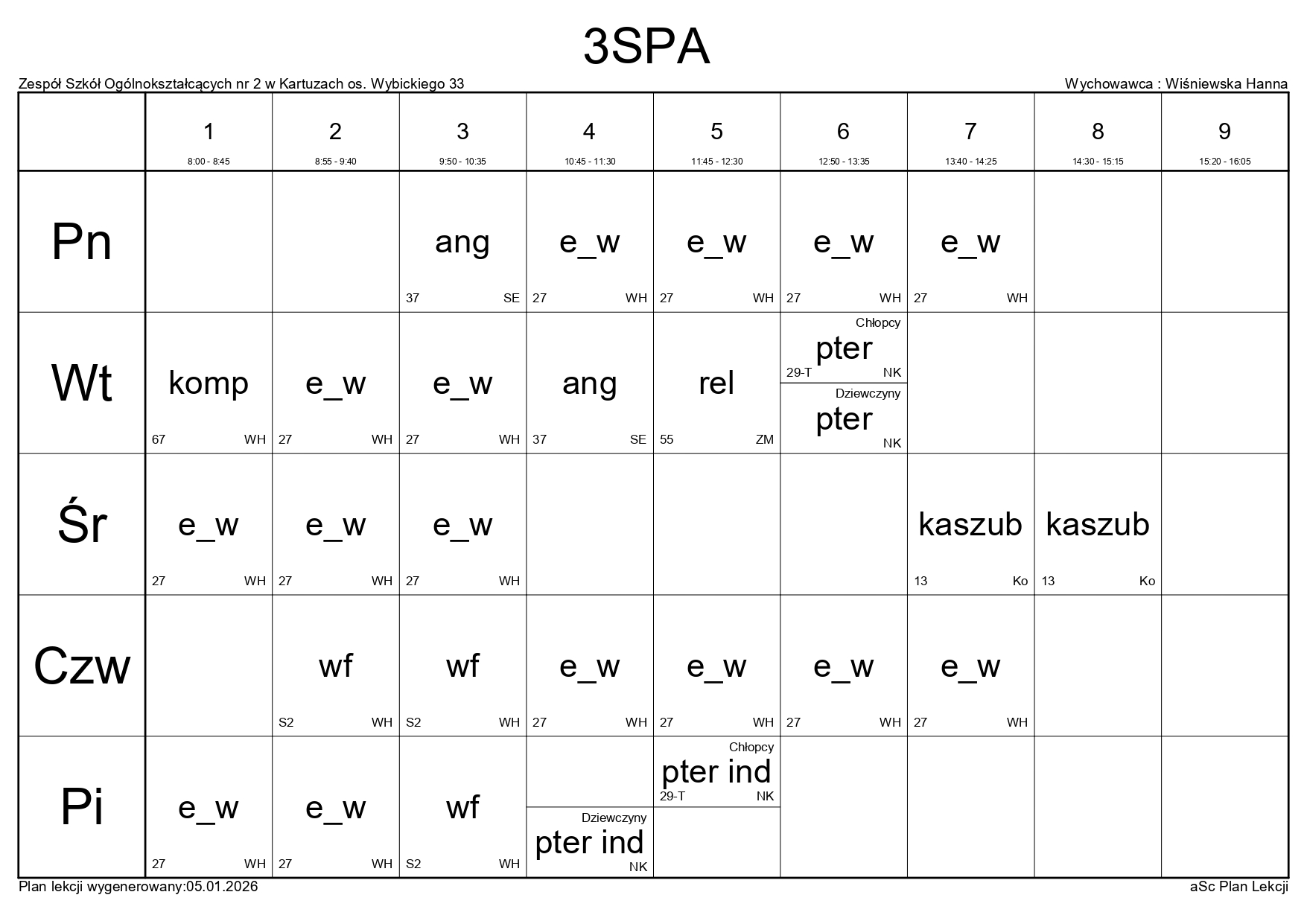 Poniżej przedstawiamy Państwu obowiązujący plan lekcji dla poszczególnych klas