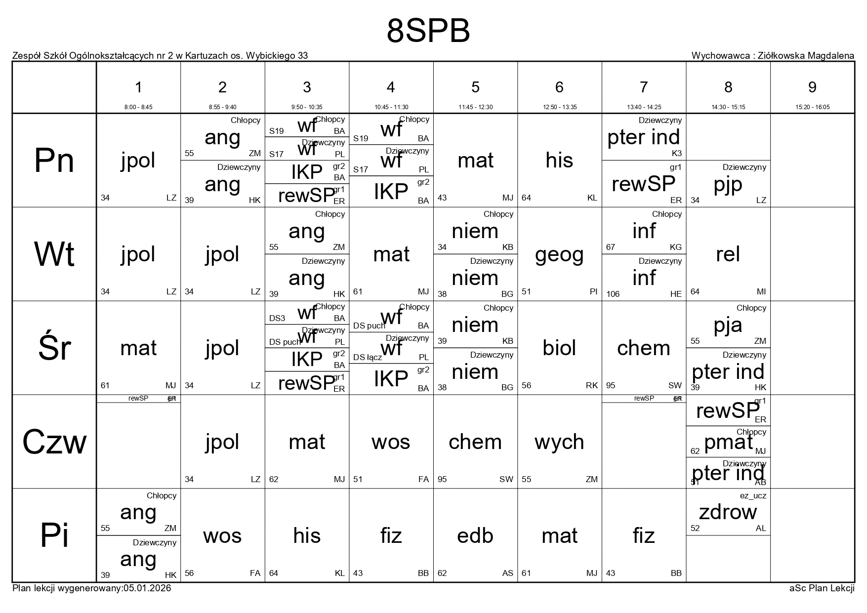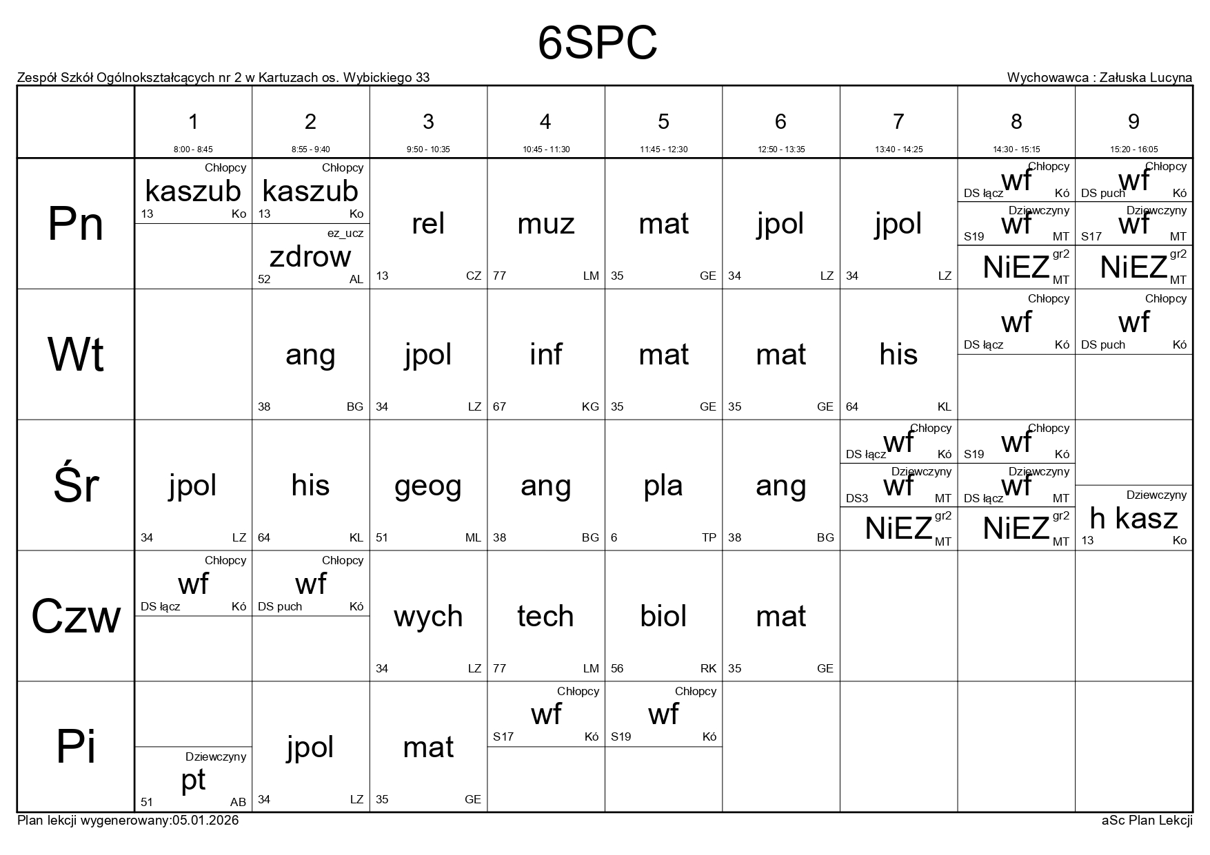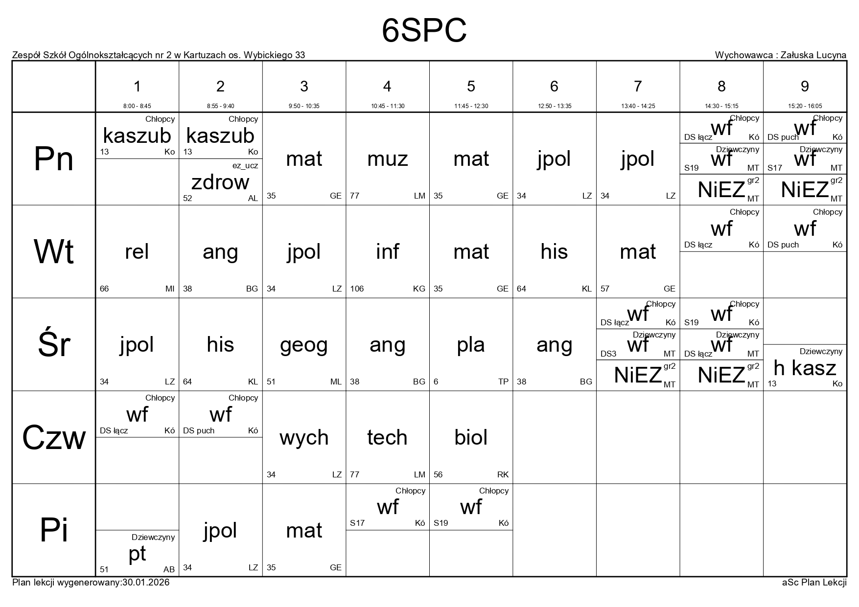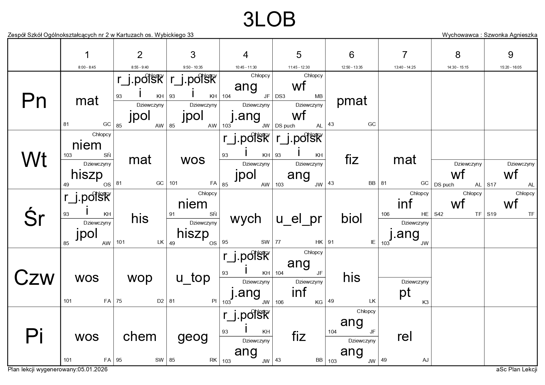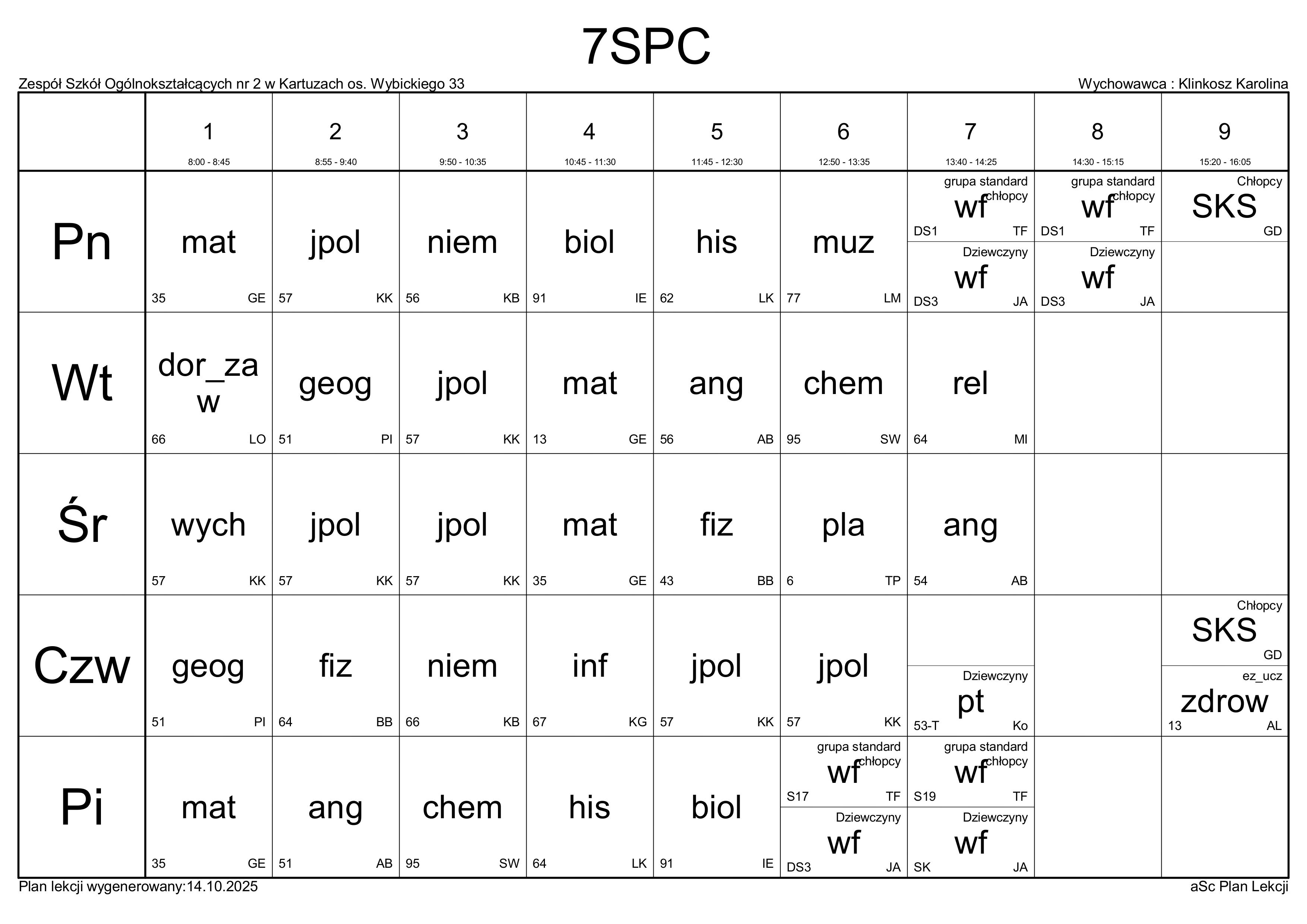 Poniżej przedstawiamy Państwu obowiązujący plan lekcji dla poszczególnych klas