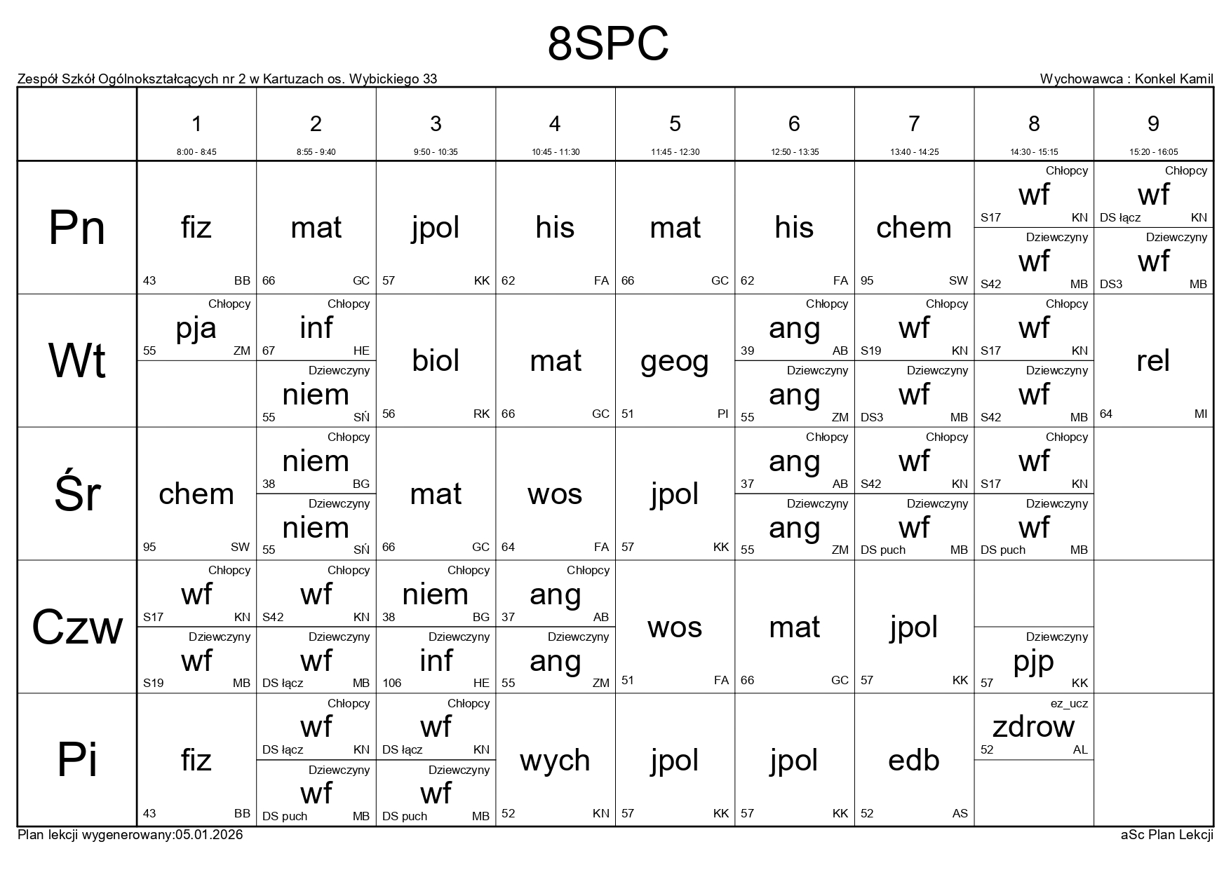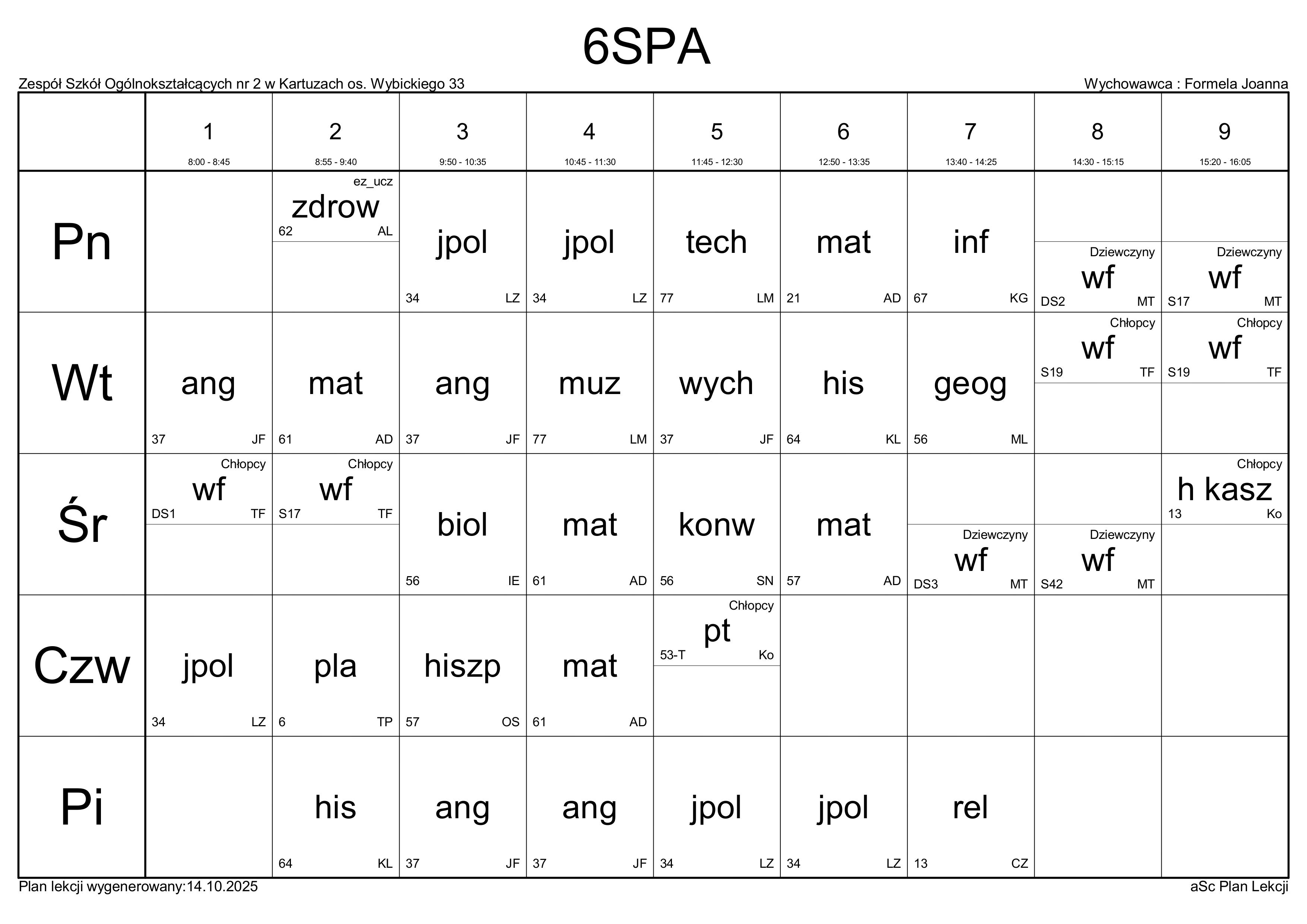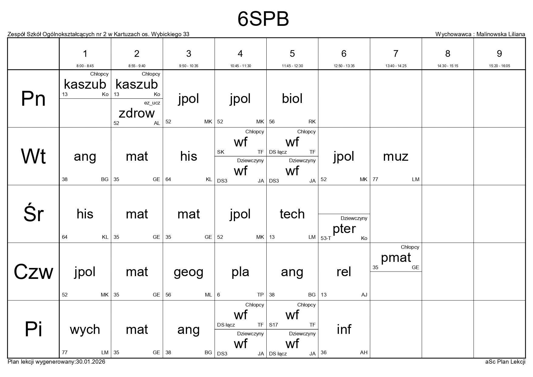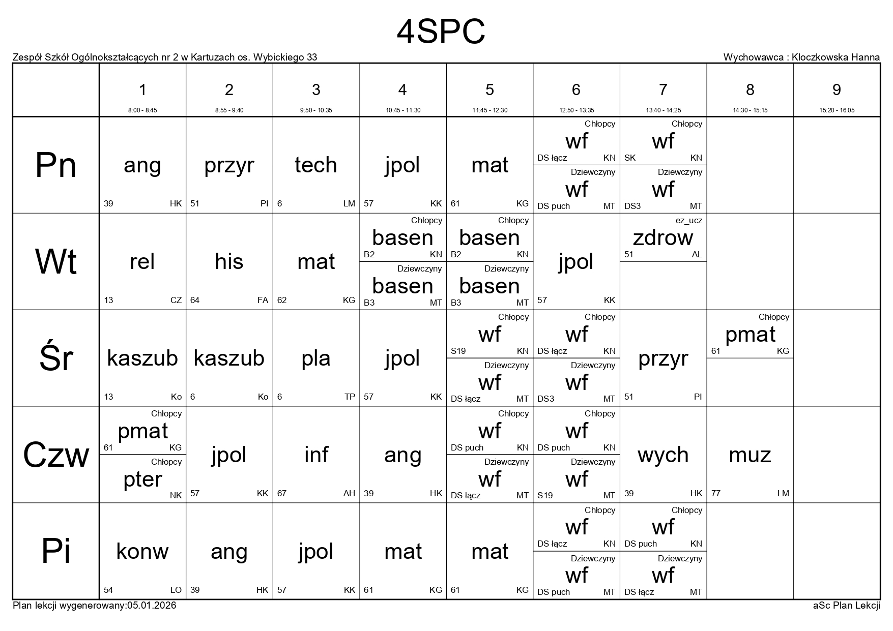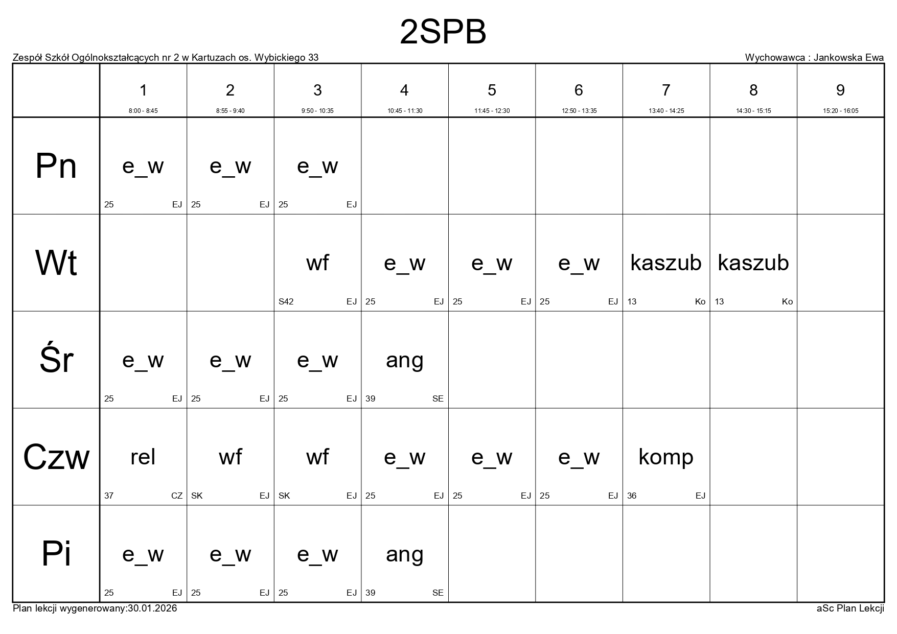 Poniżej przedstawiamy Państwu obowiązujący plan lekcji dla poszczególnych klas