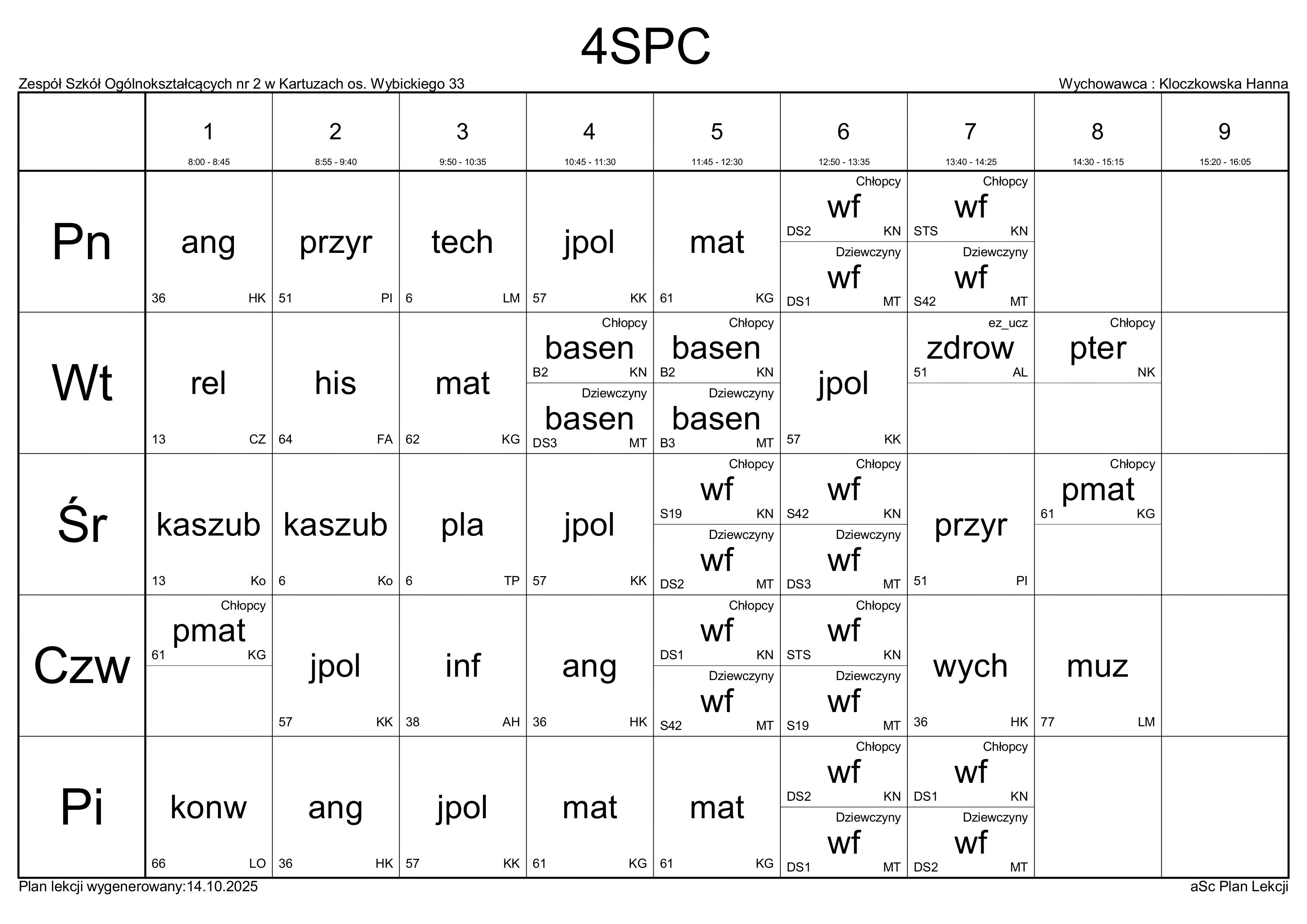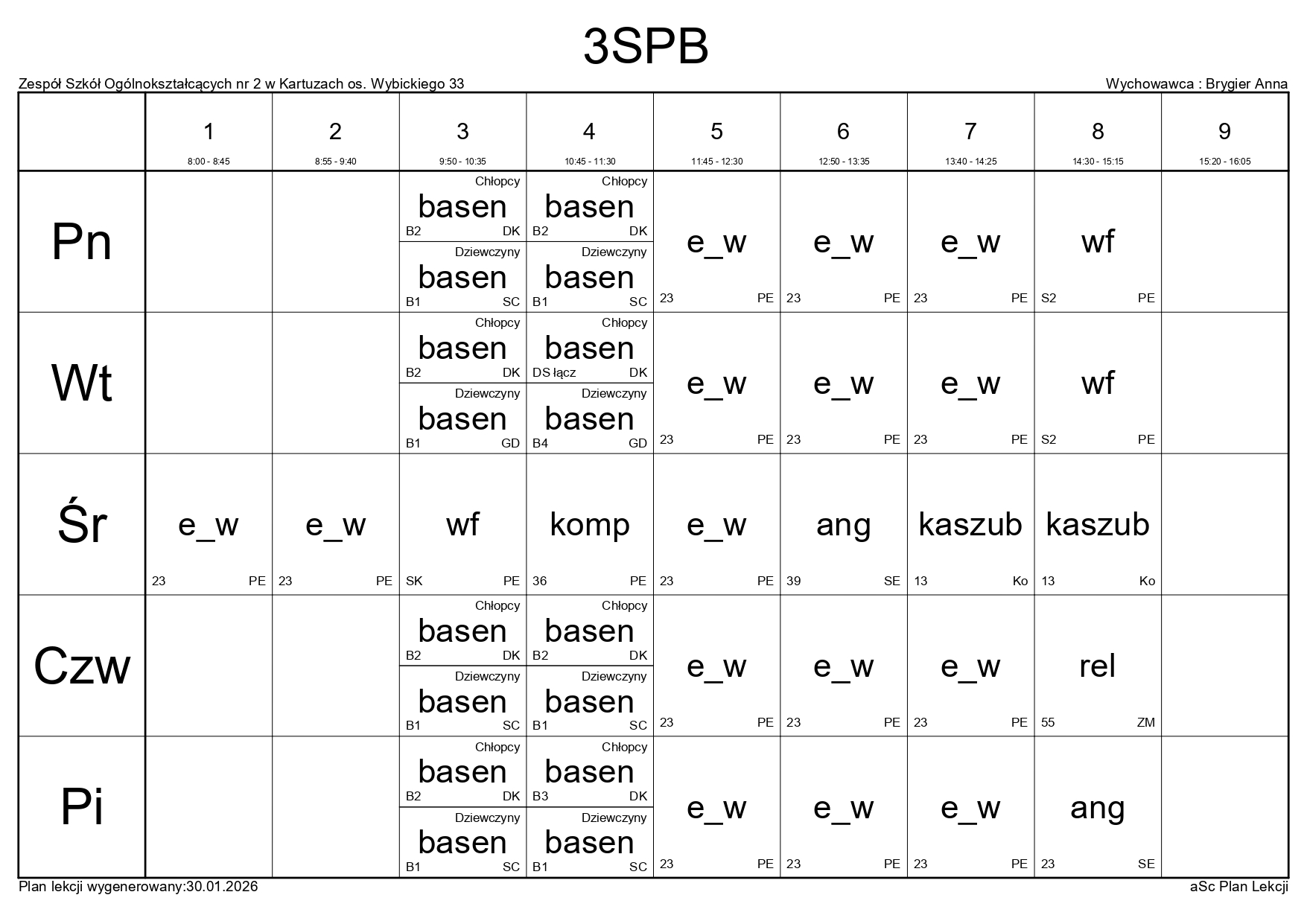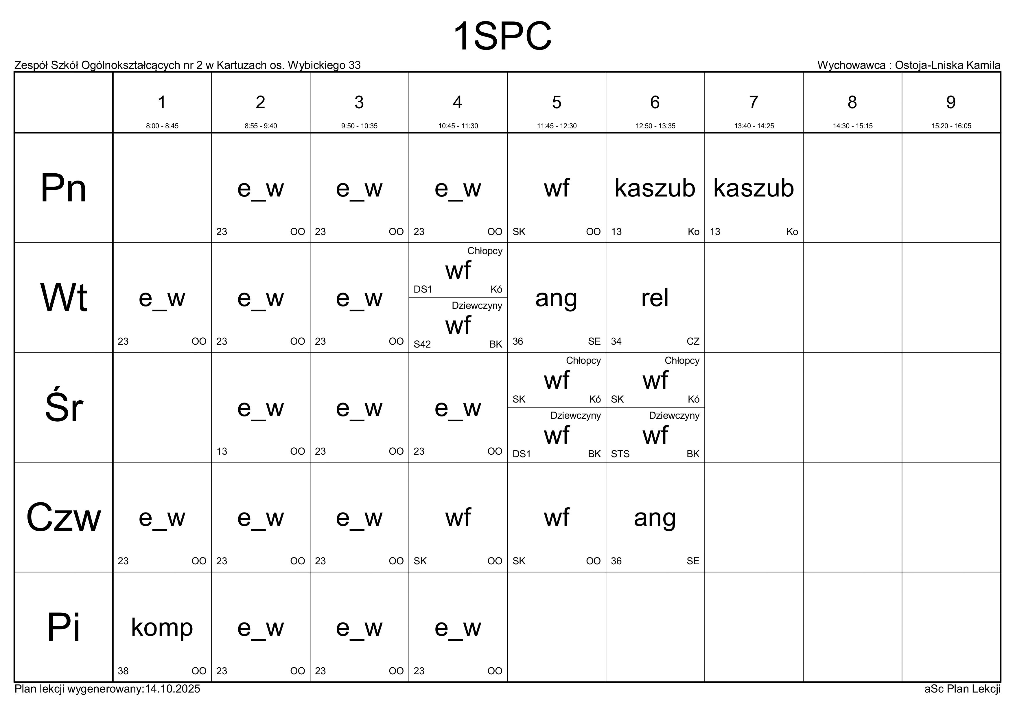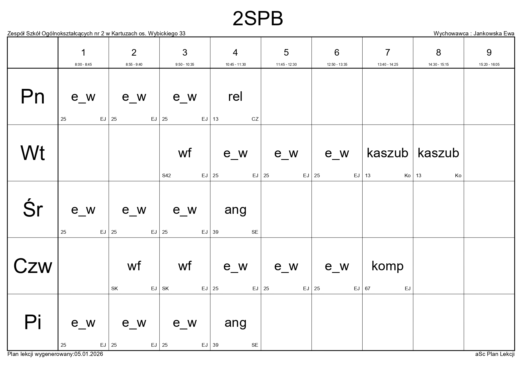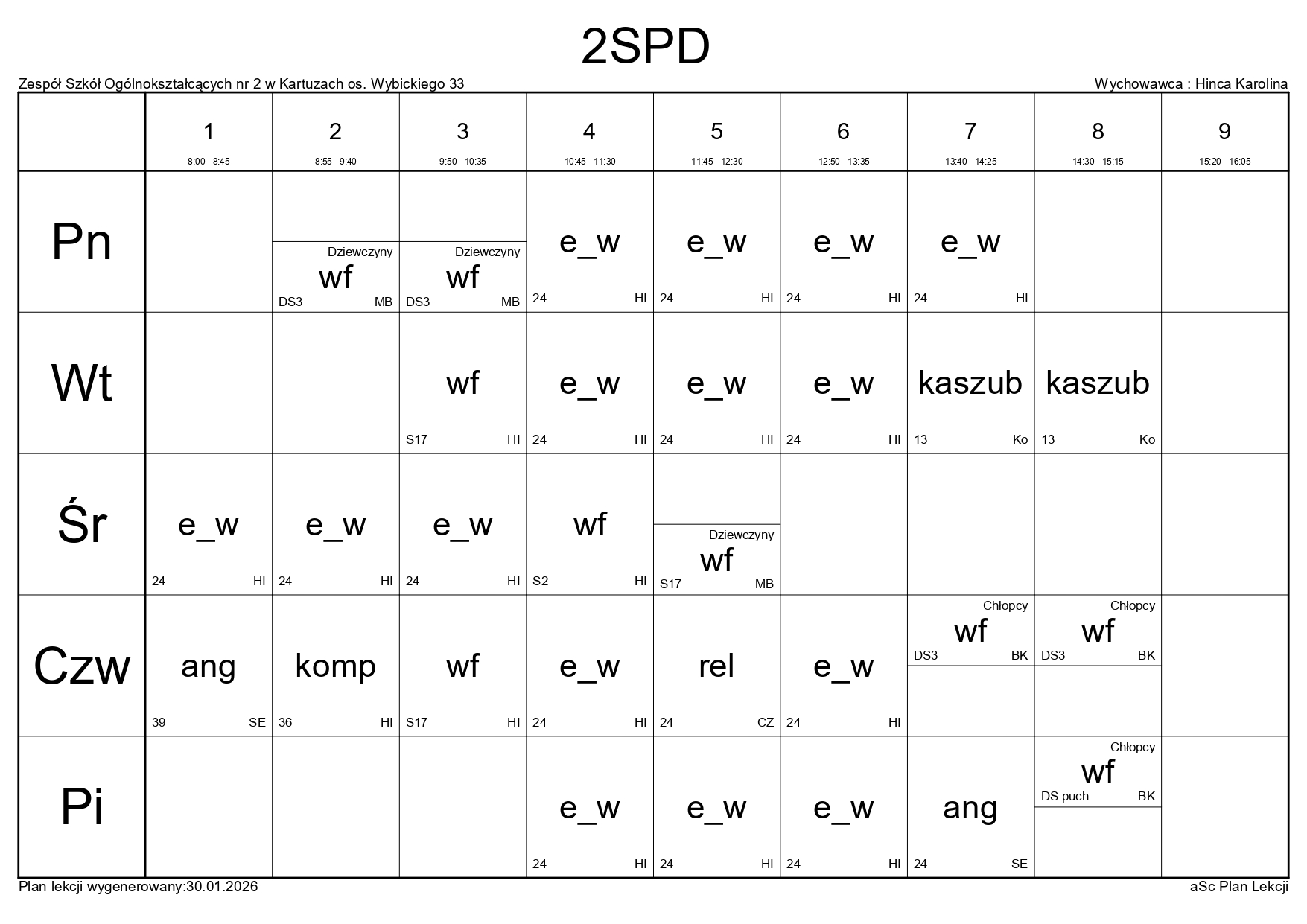 Poniżej przedstawiamy Państwu obowiązujący plan lekcji dla poszczególnych klas