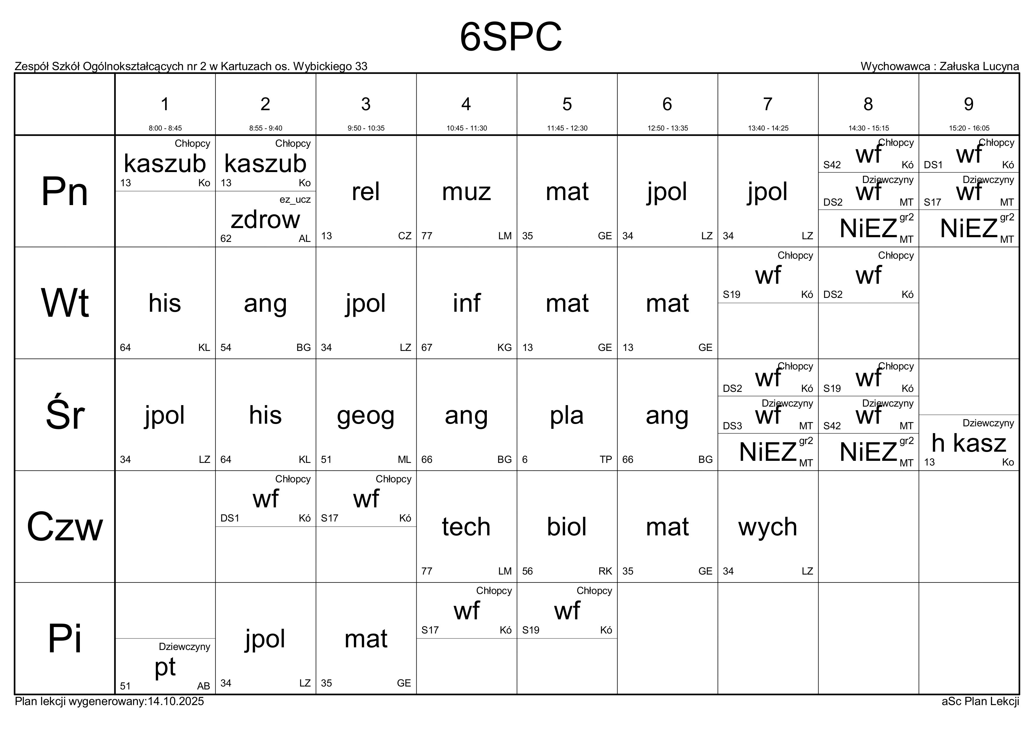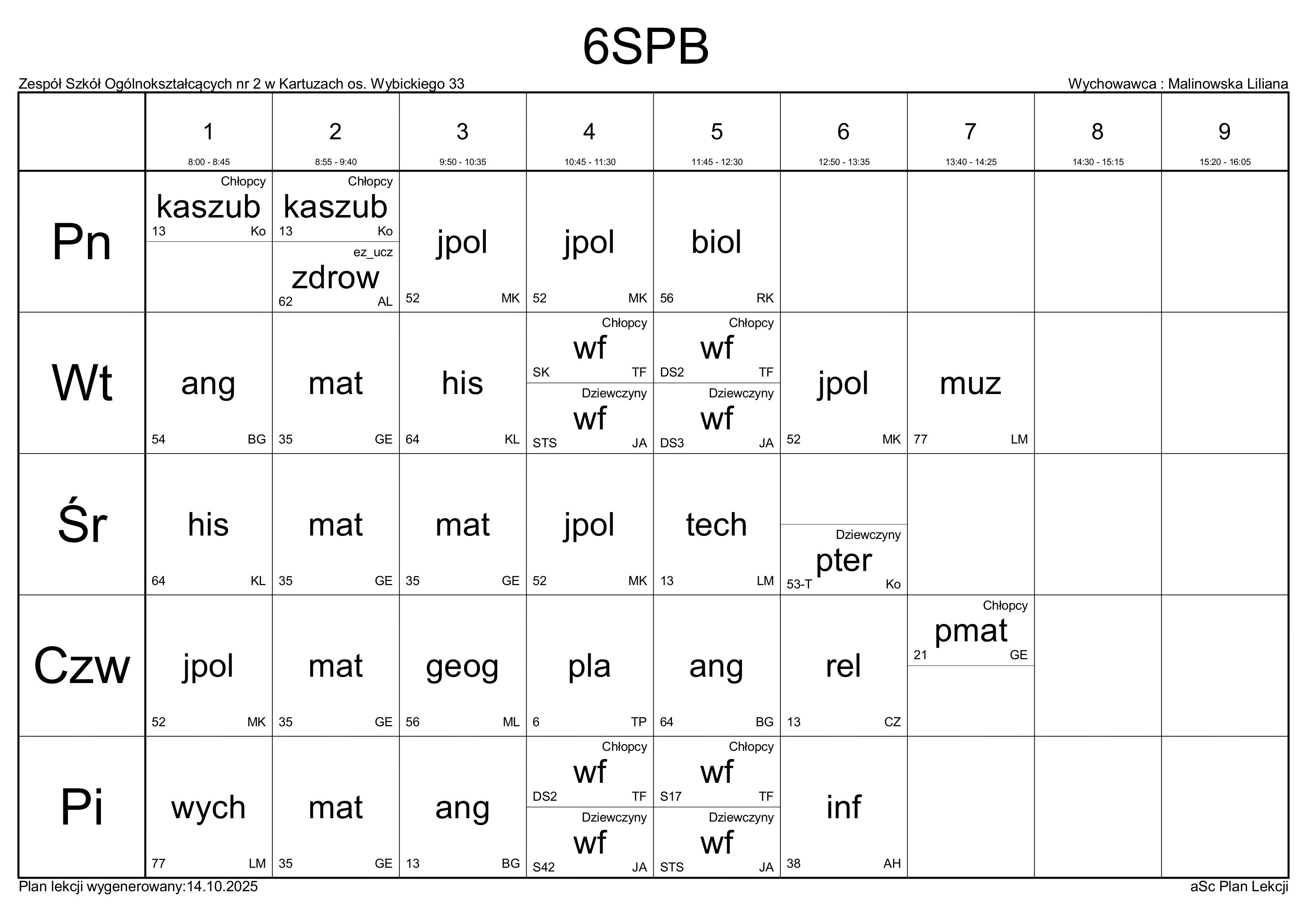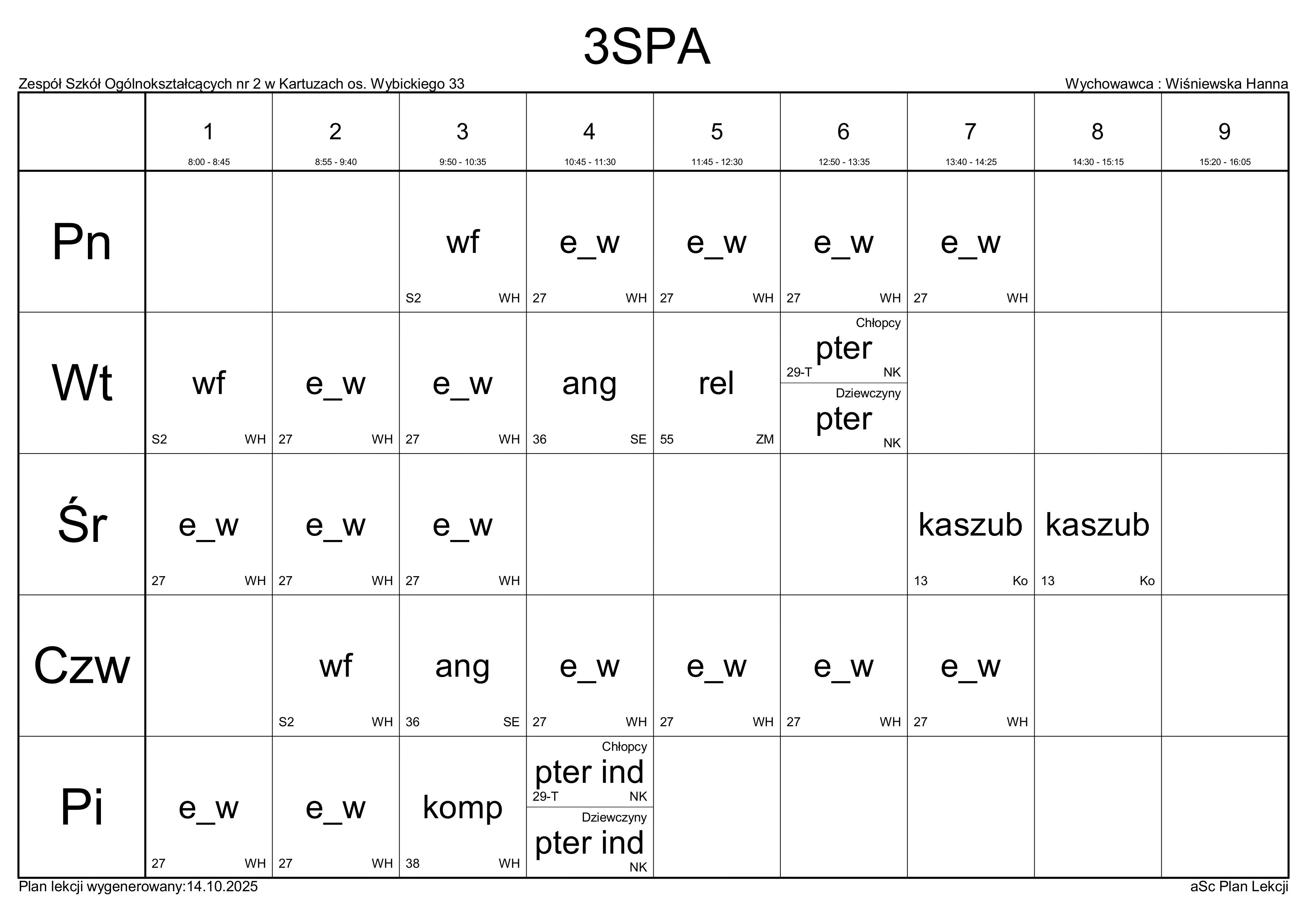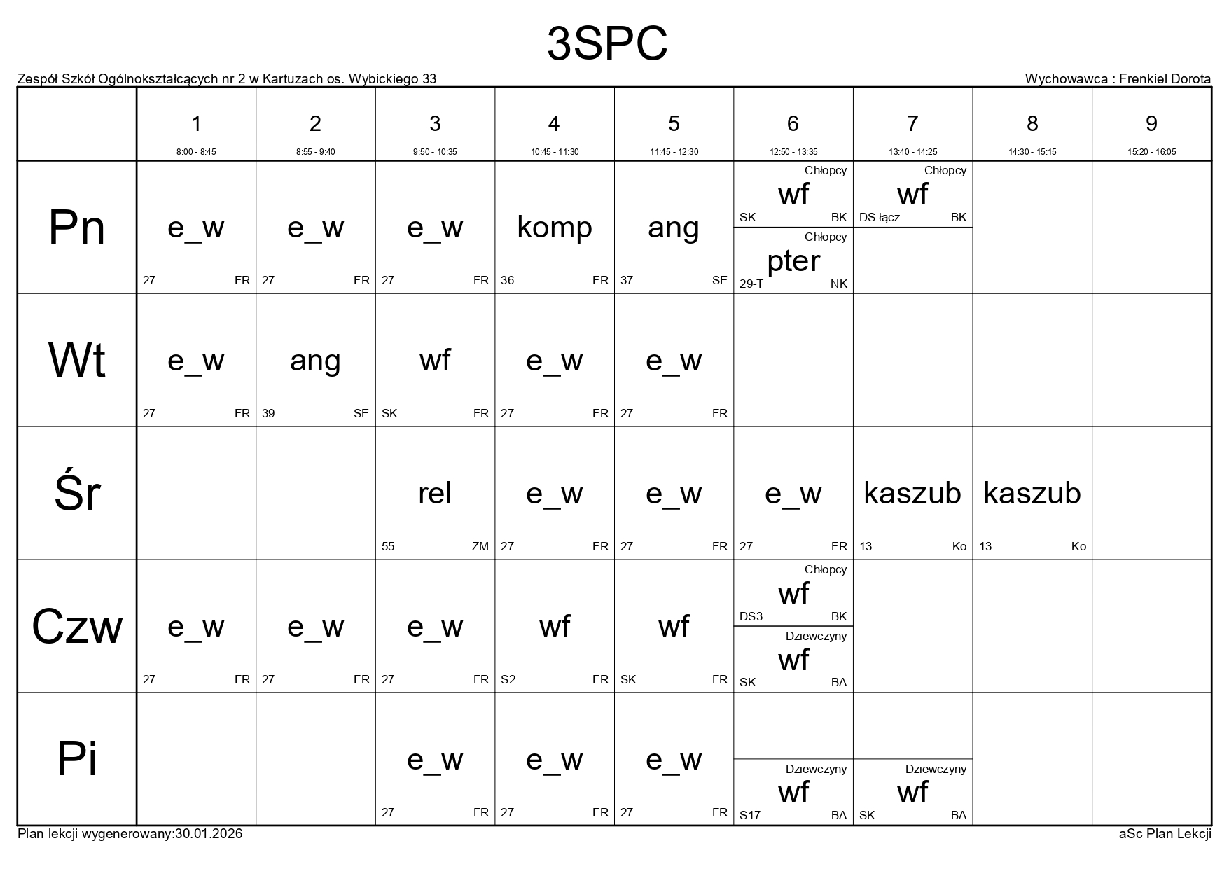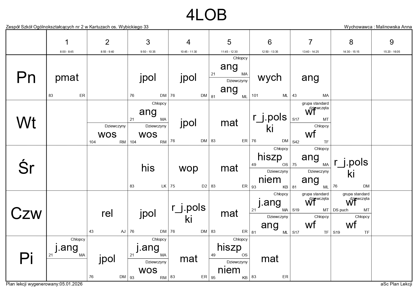 Poniżej przedstawiamy Państwu obowiązujący plan lekcji dla poszczególnych klas