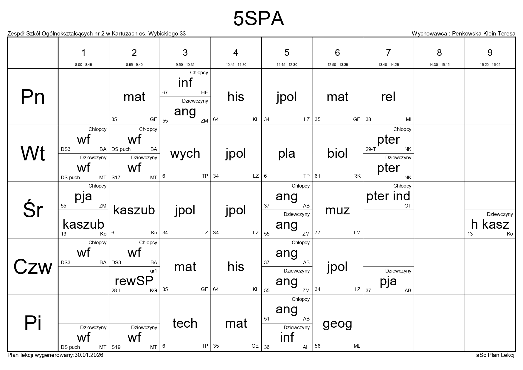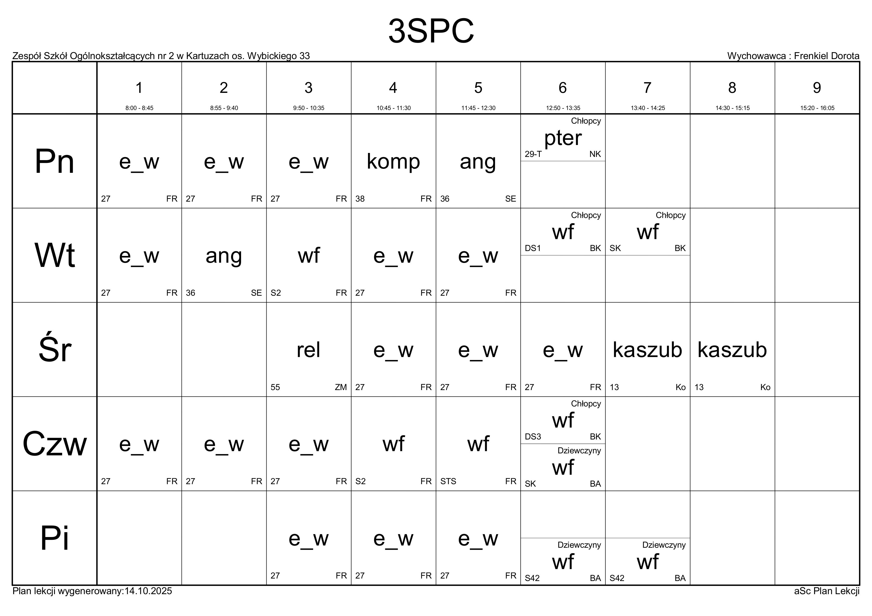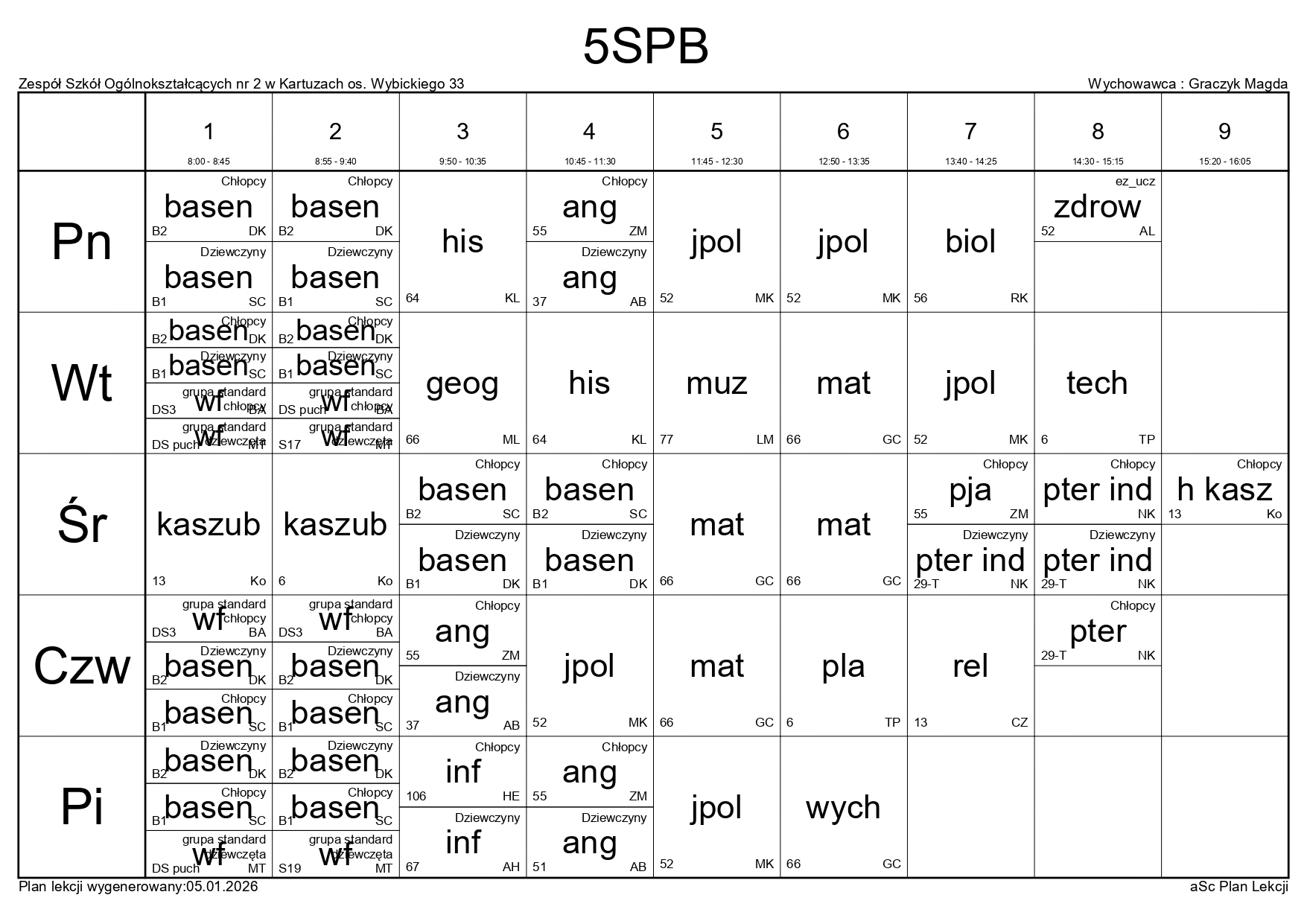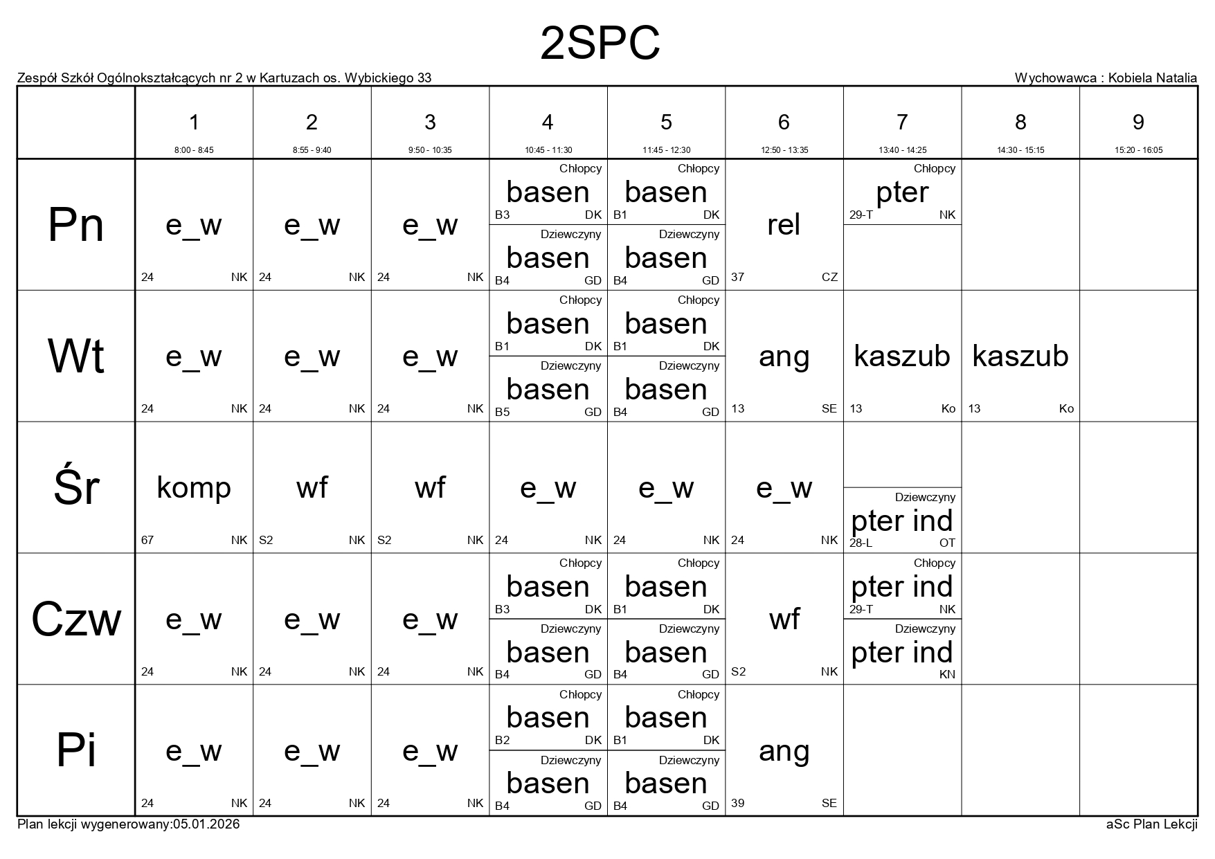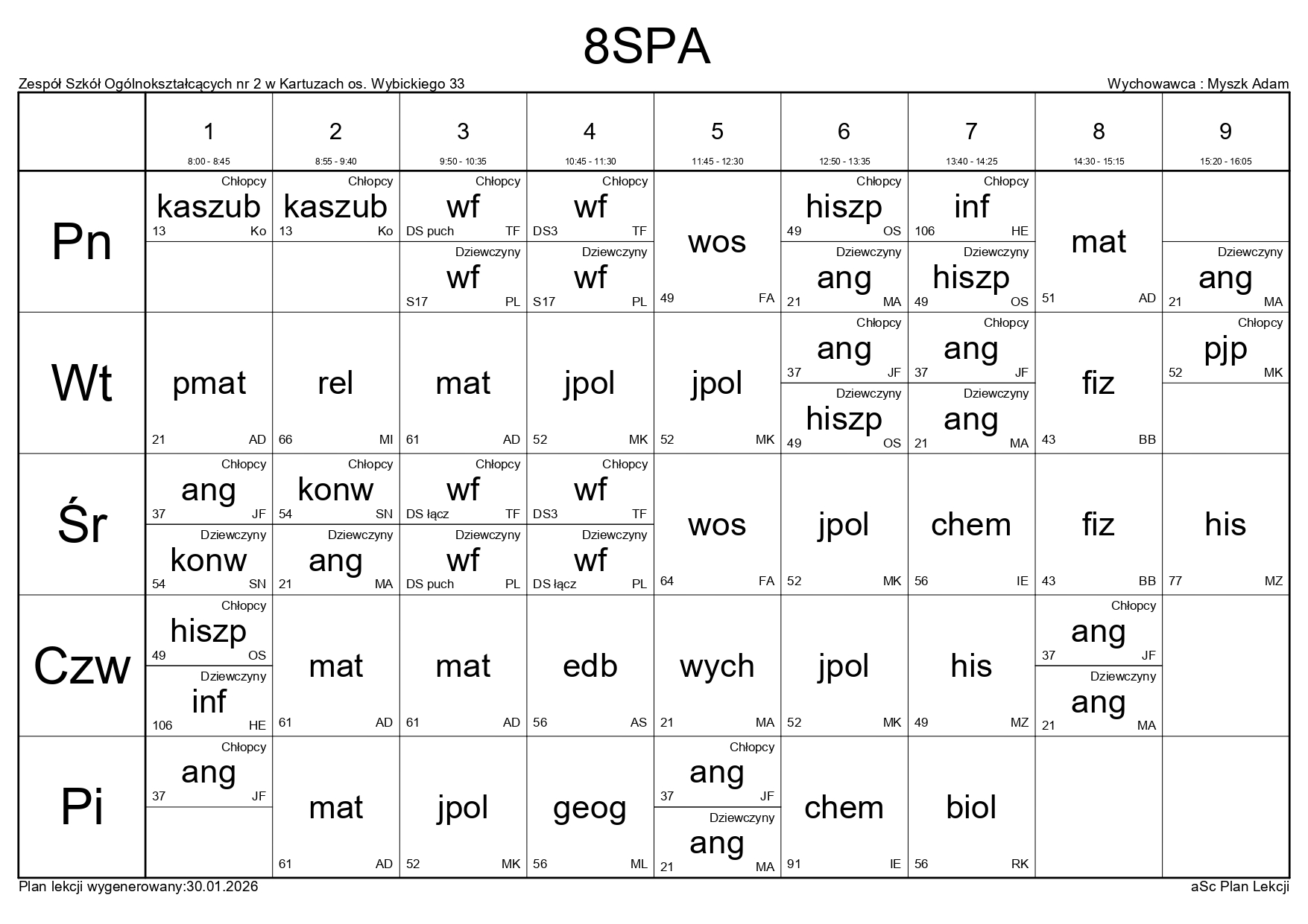 Poniżej przedstawiamy Państwu obowiązujący plan lekcji dla poszczególnych klas