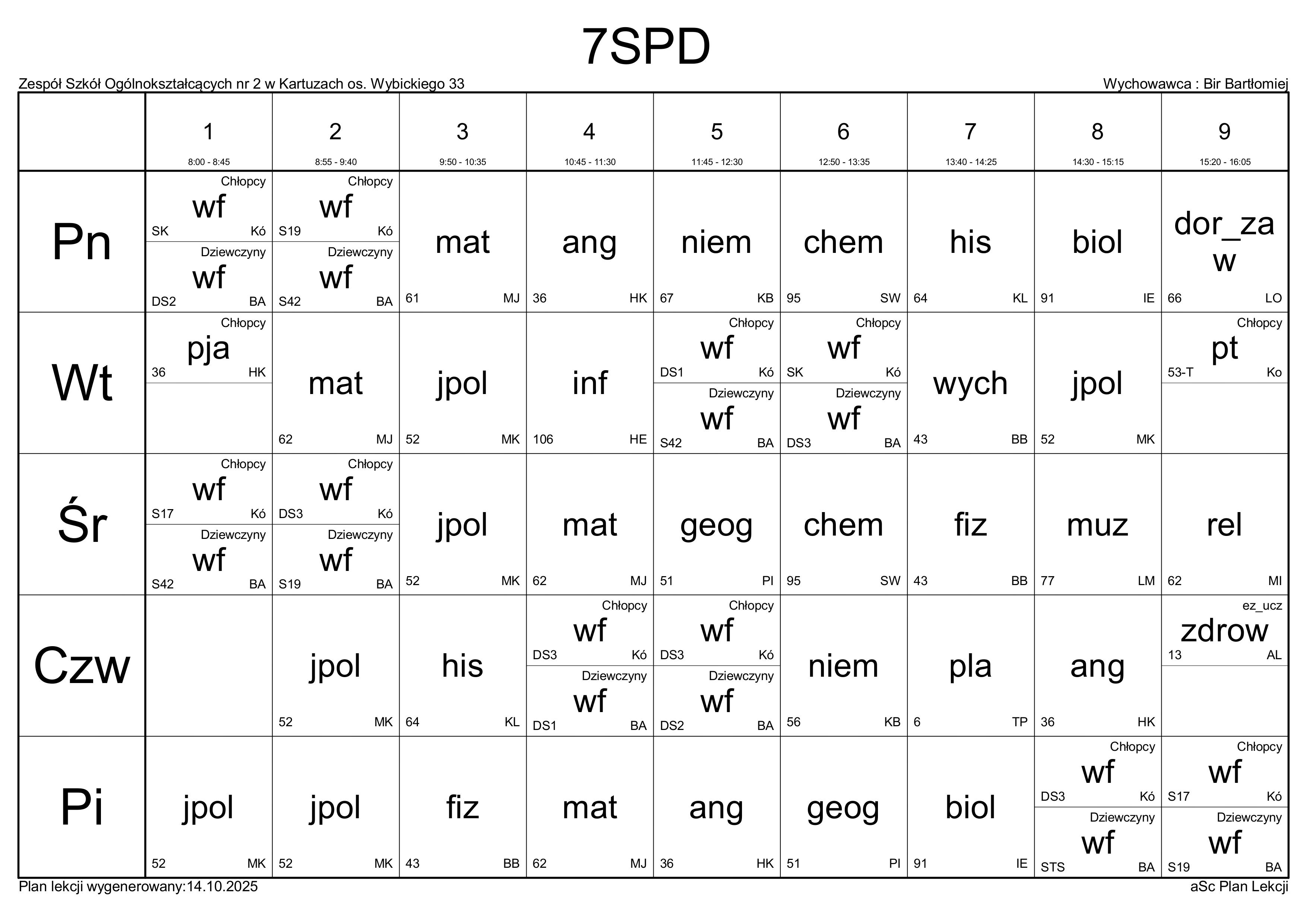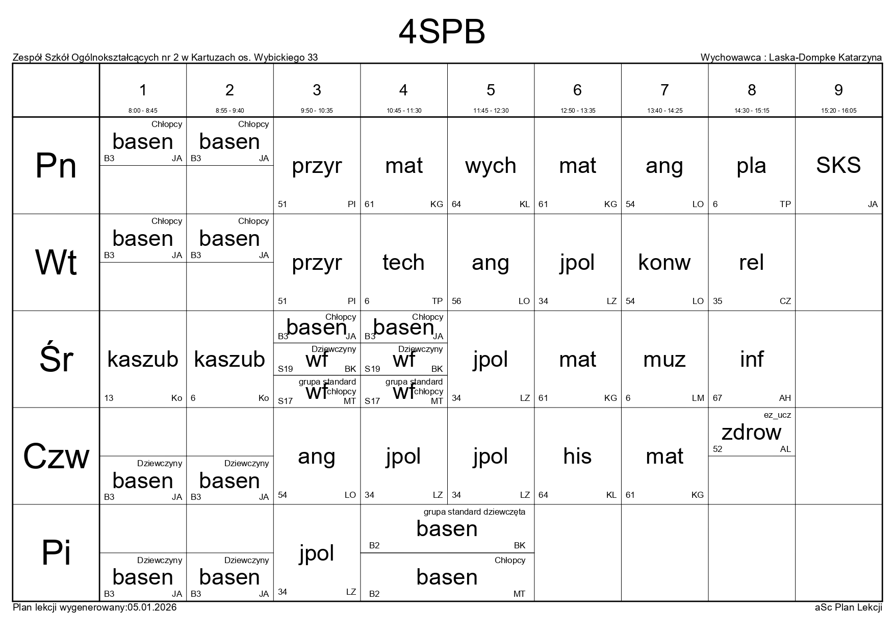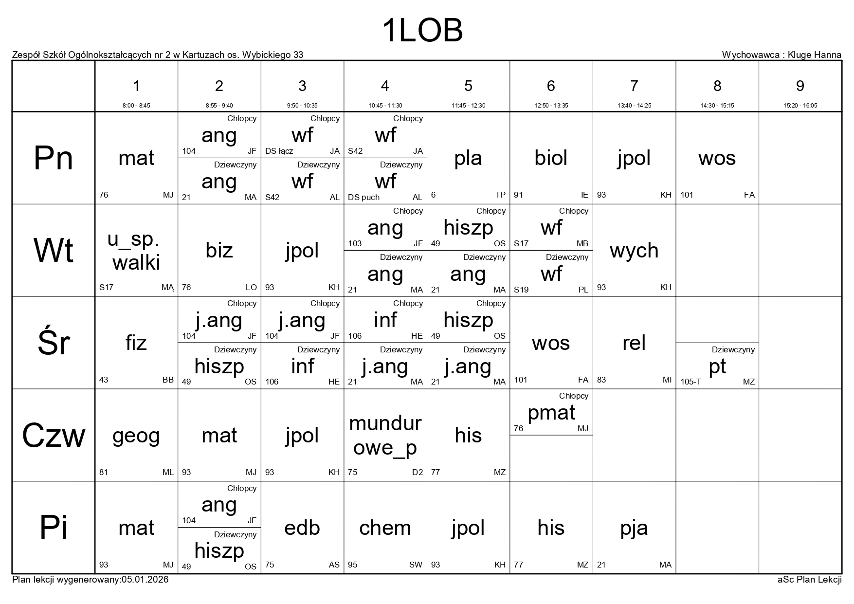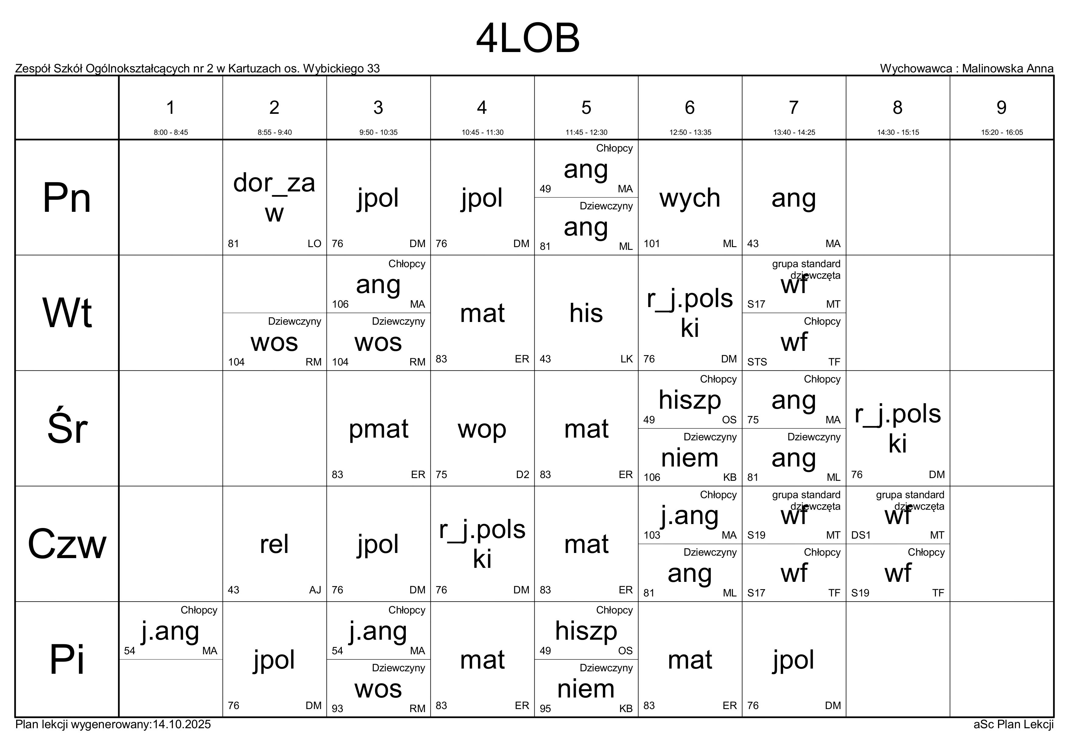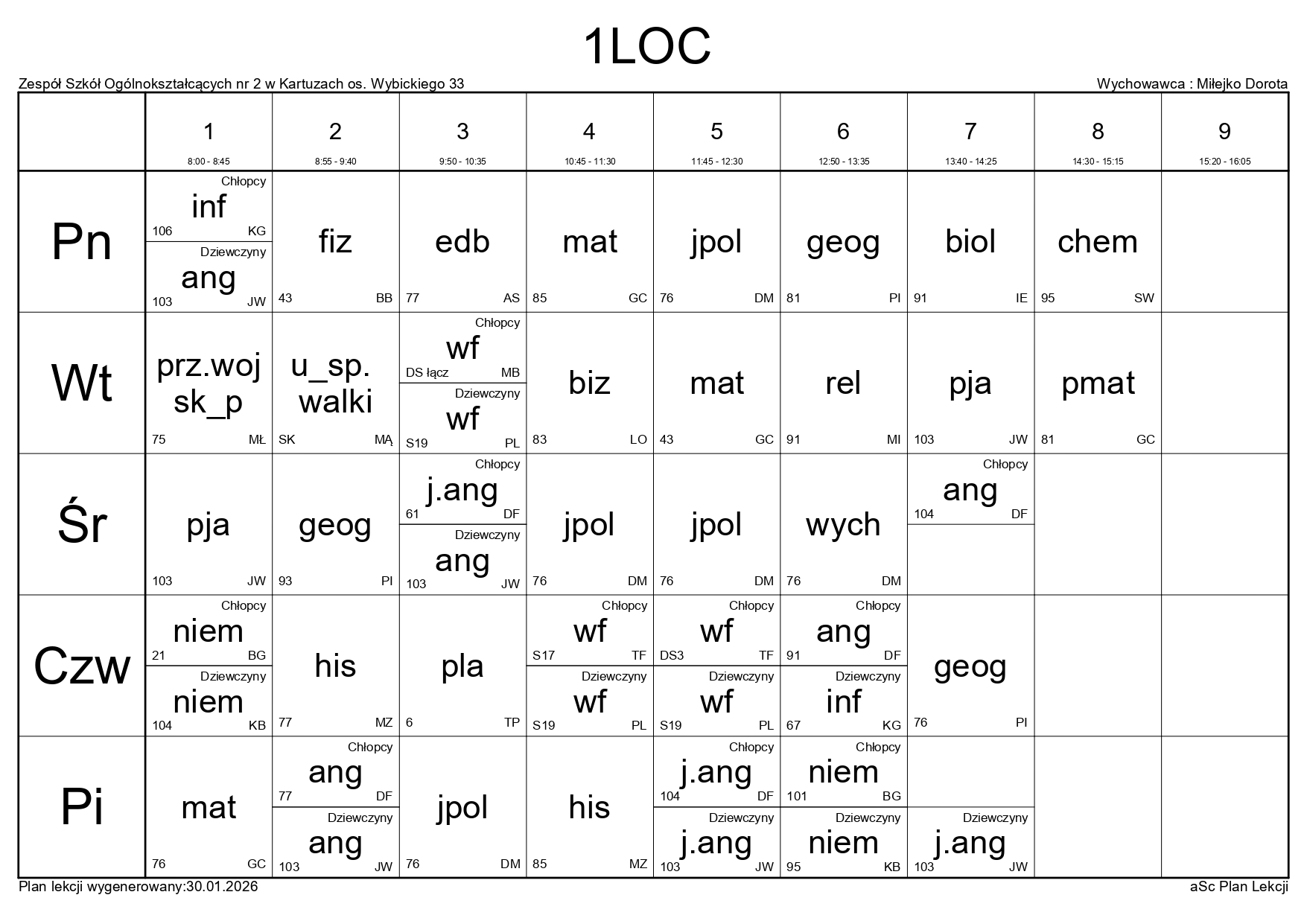 Poniżej przedstawiamy Państwu obowiązujący plan lekcji dla poszczególnych klas