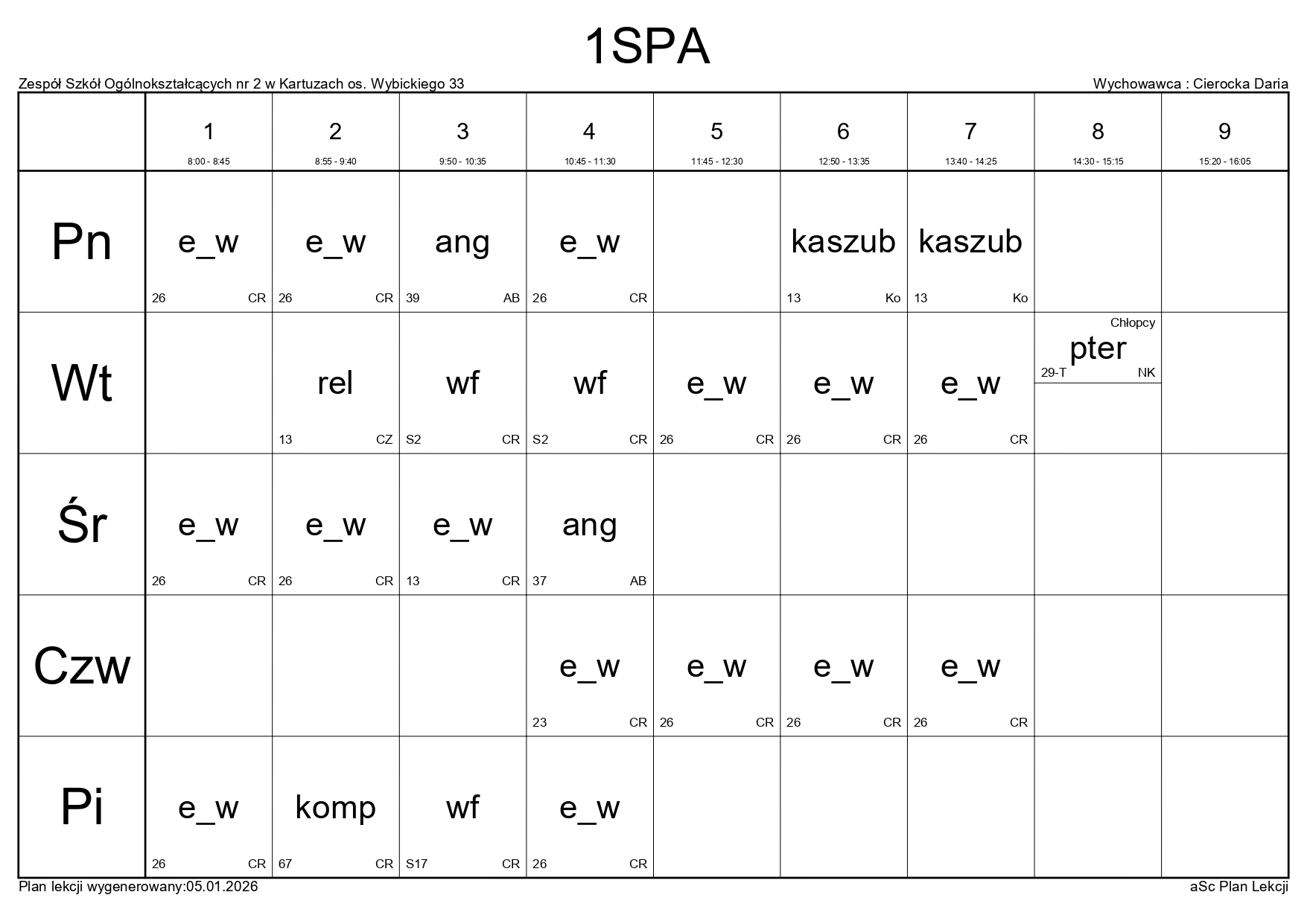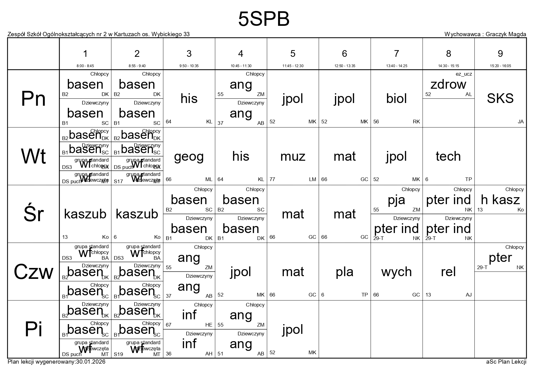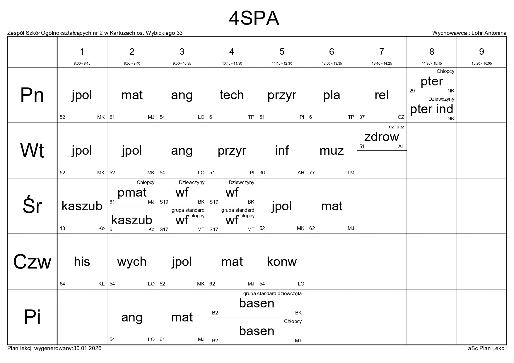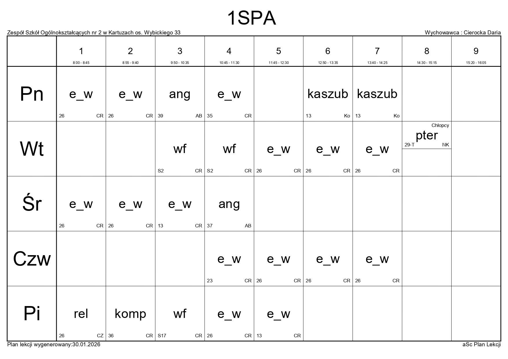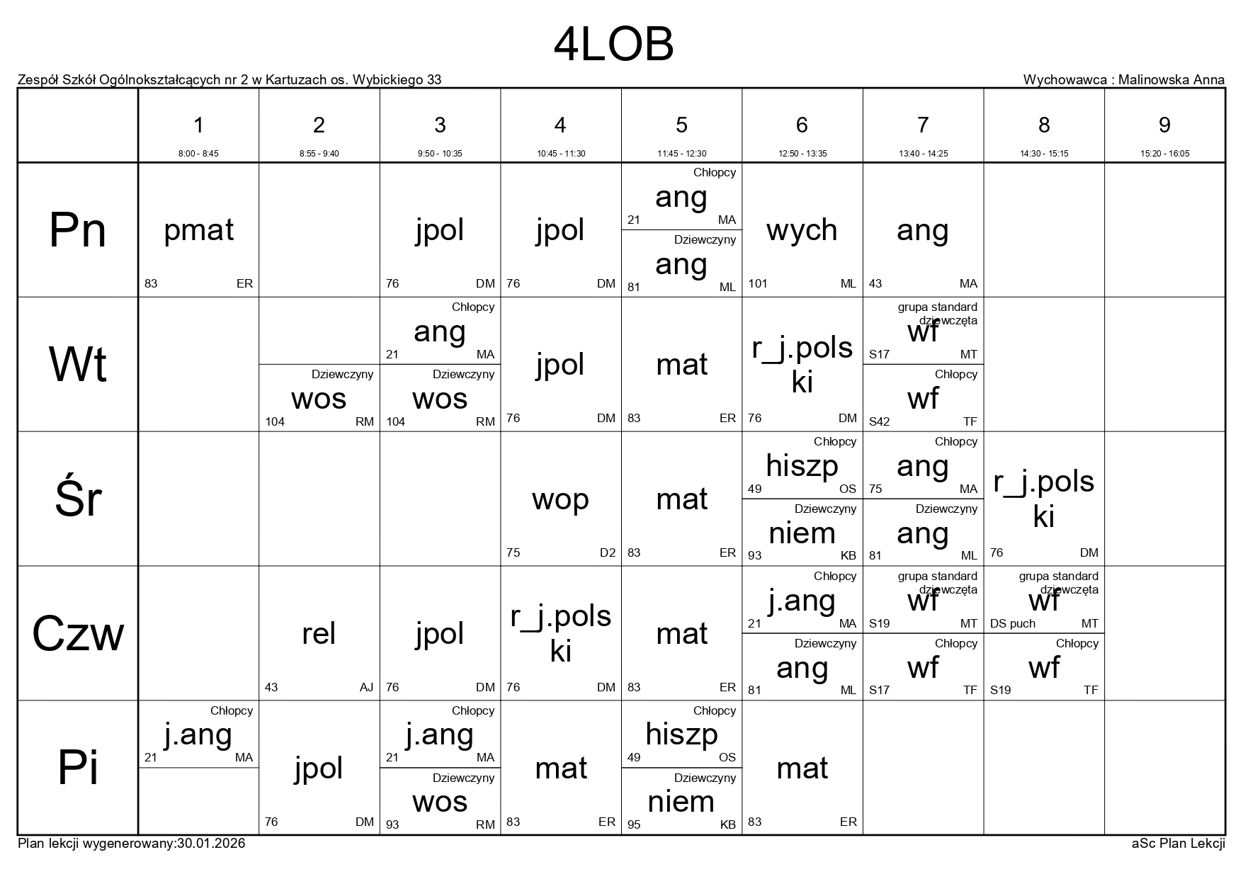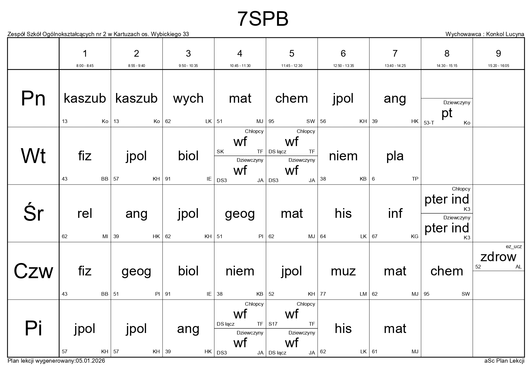 Poniżej przedstawiamy Państwu obowiązujący plan lekcji dla poszczególnych klas