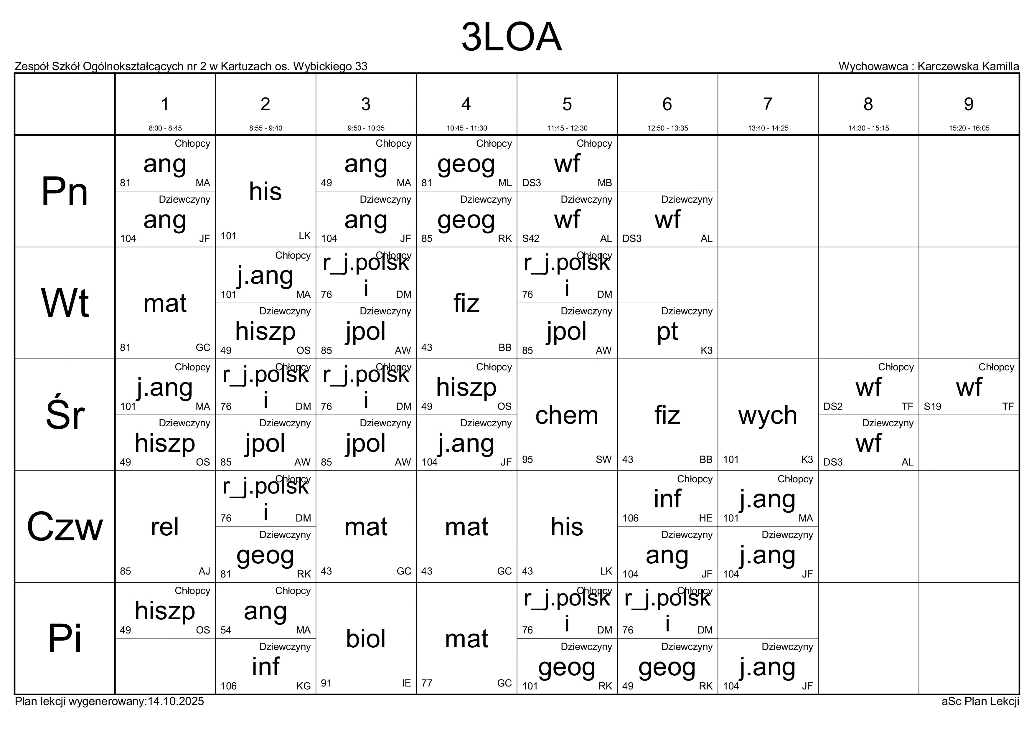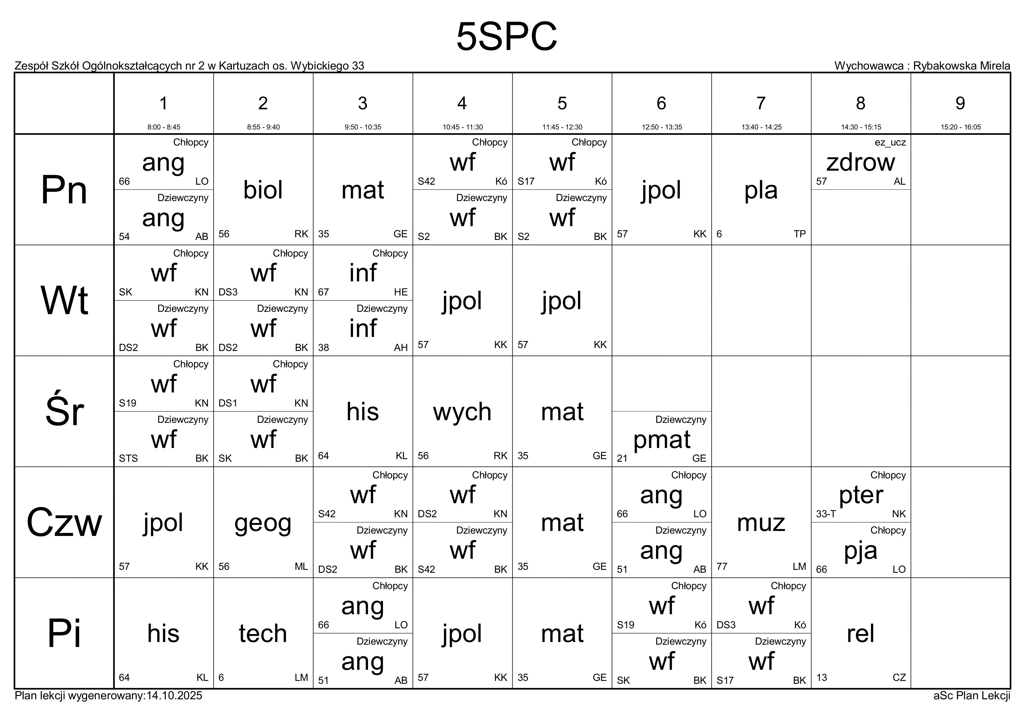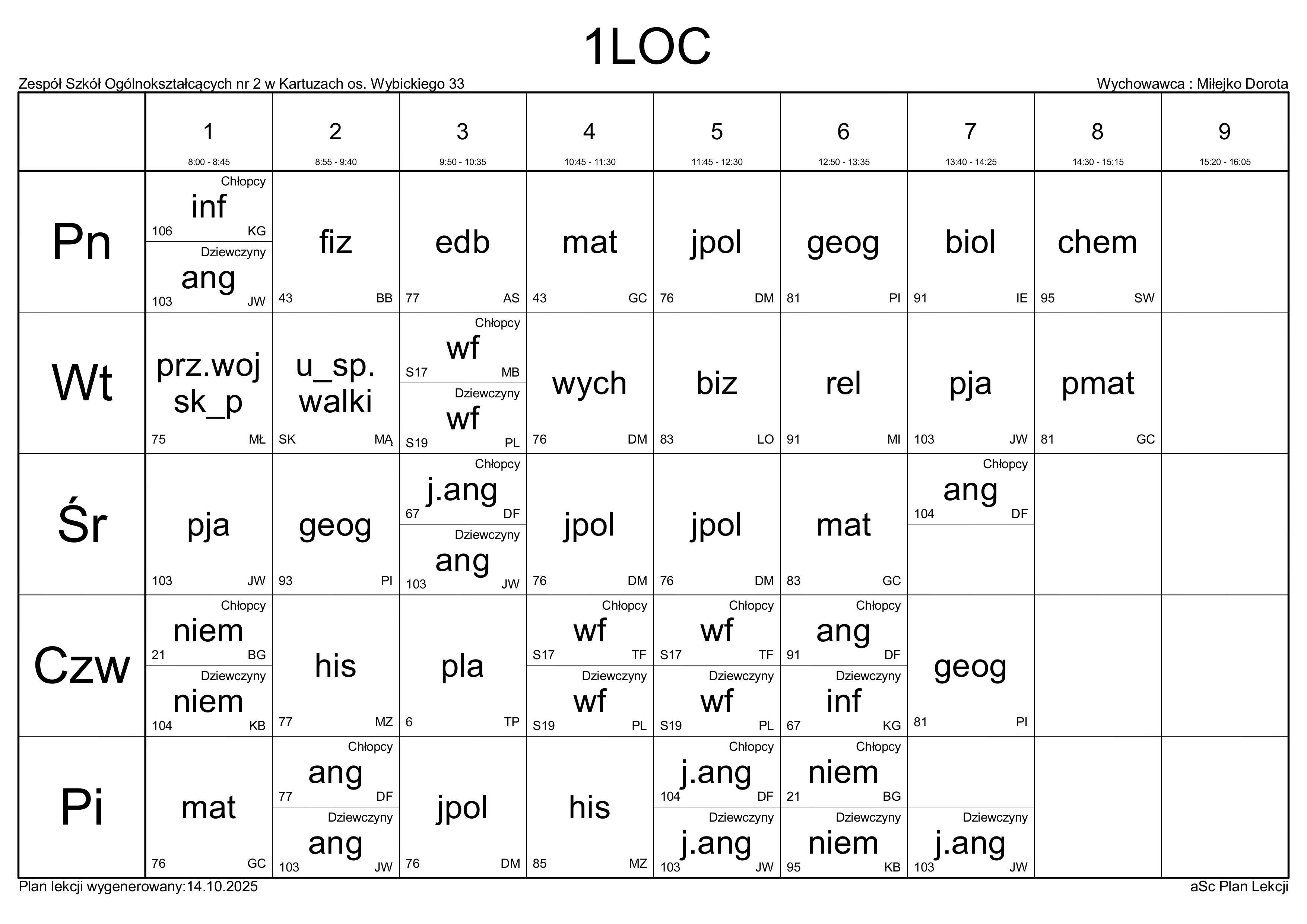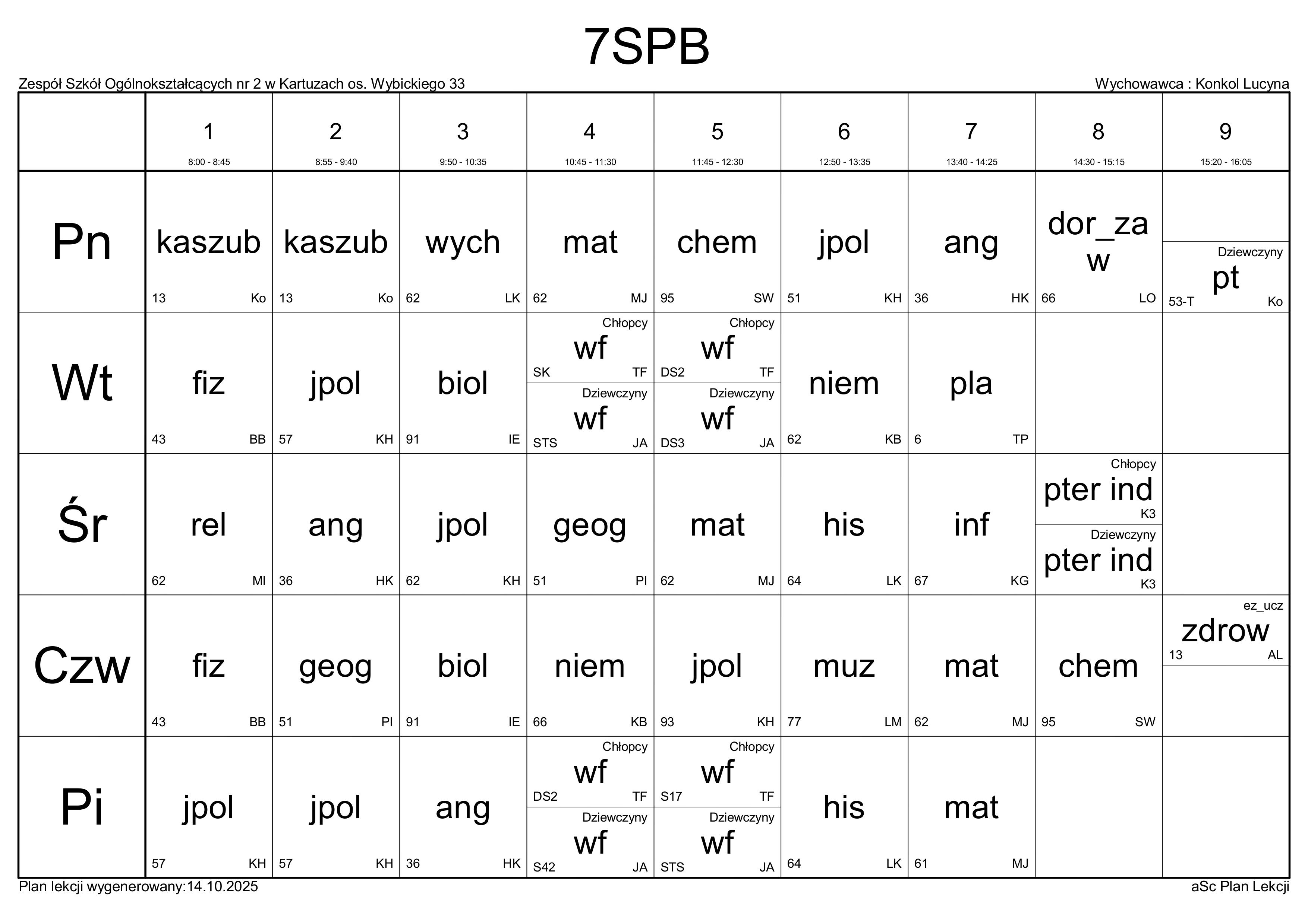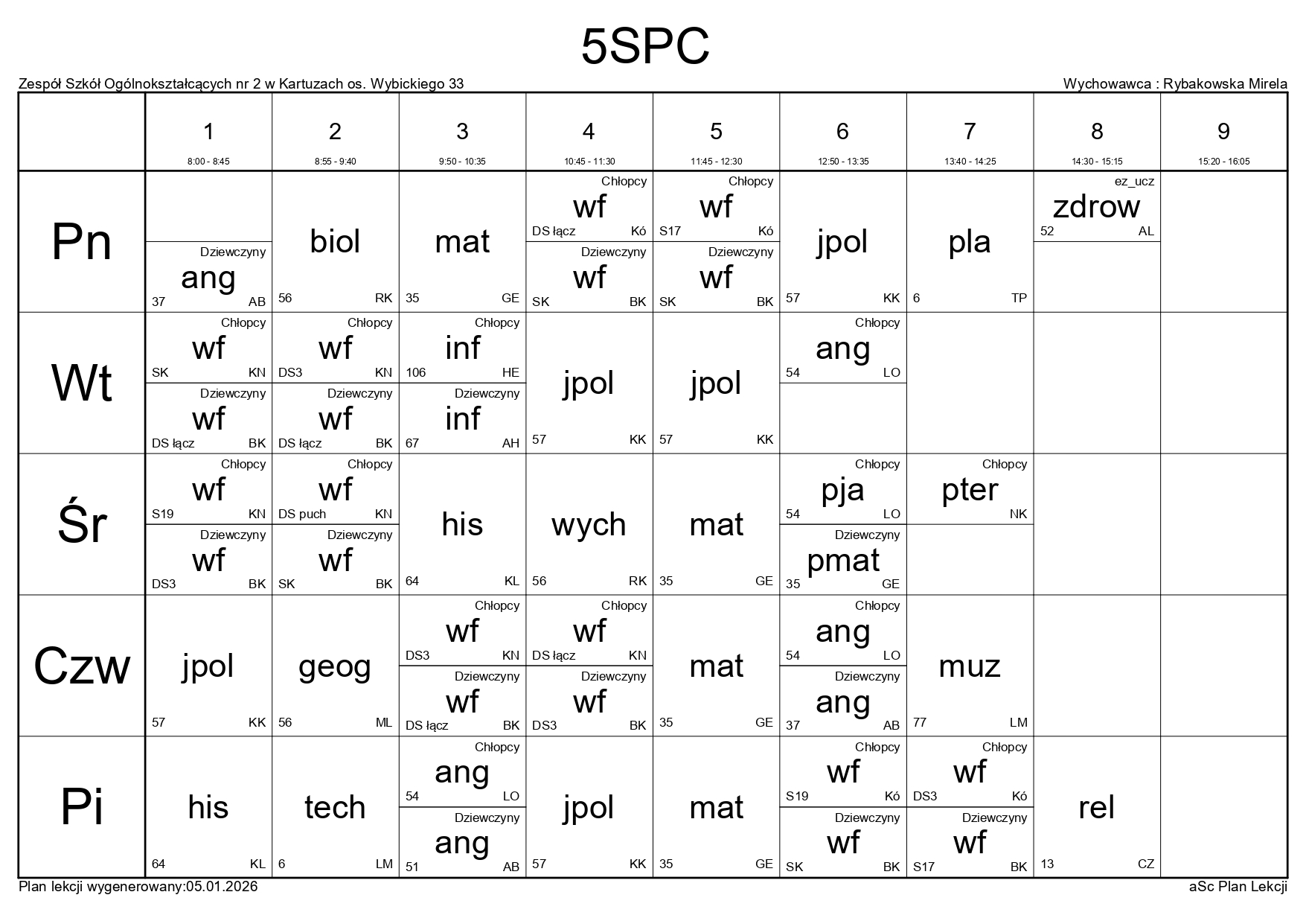 Poniżej przedstawiamy Państwu obowiązujący plan lekcji dla poszczególnych klas