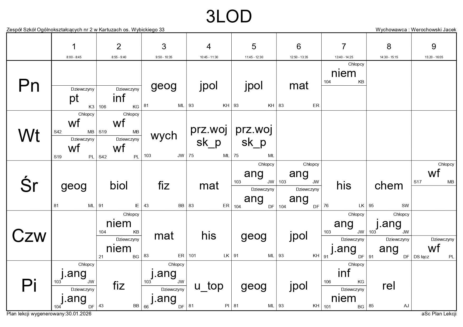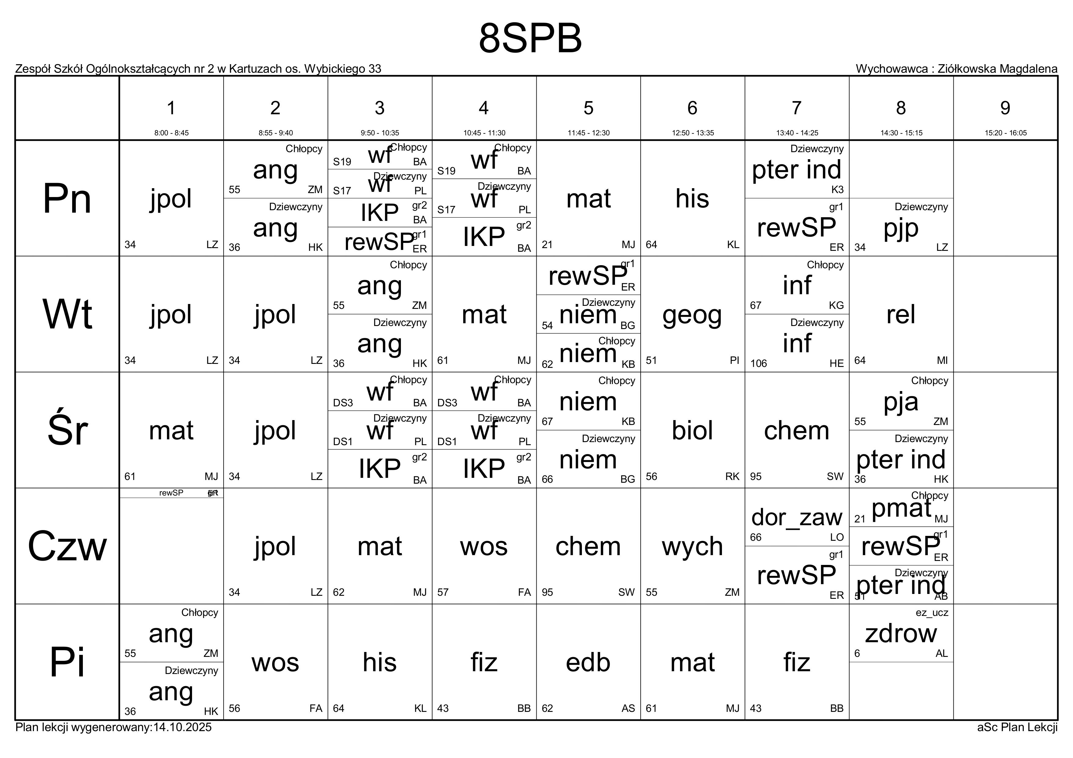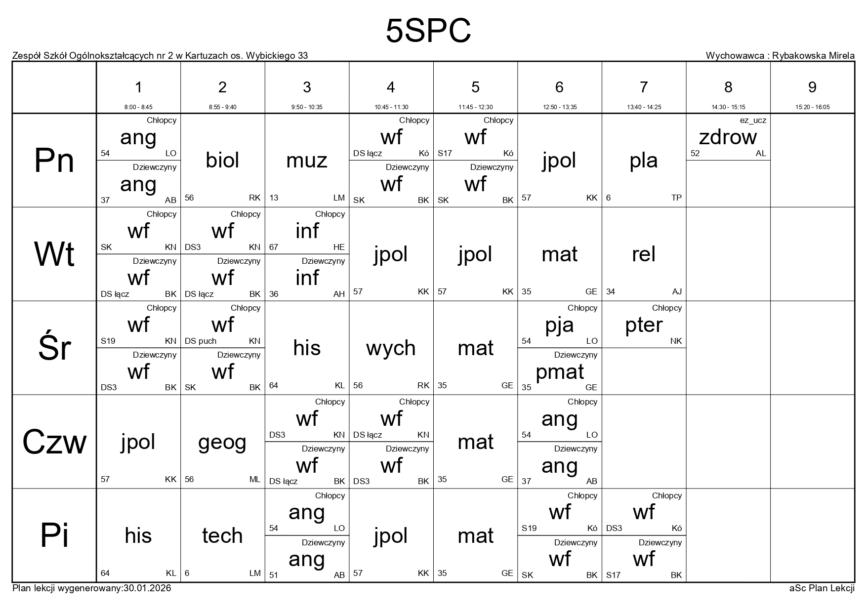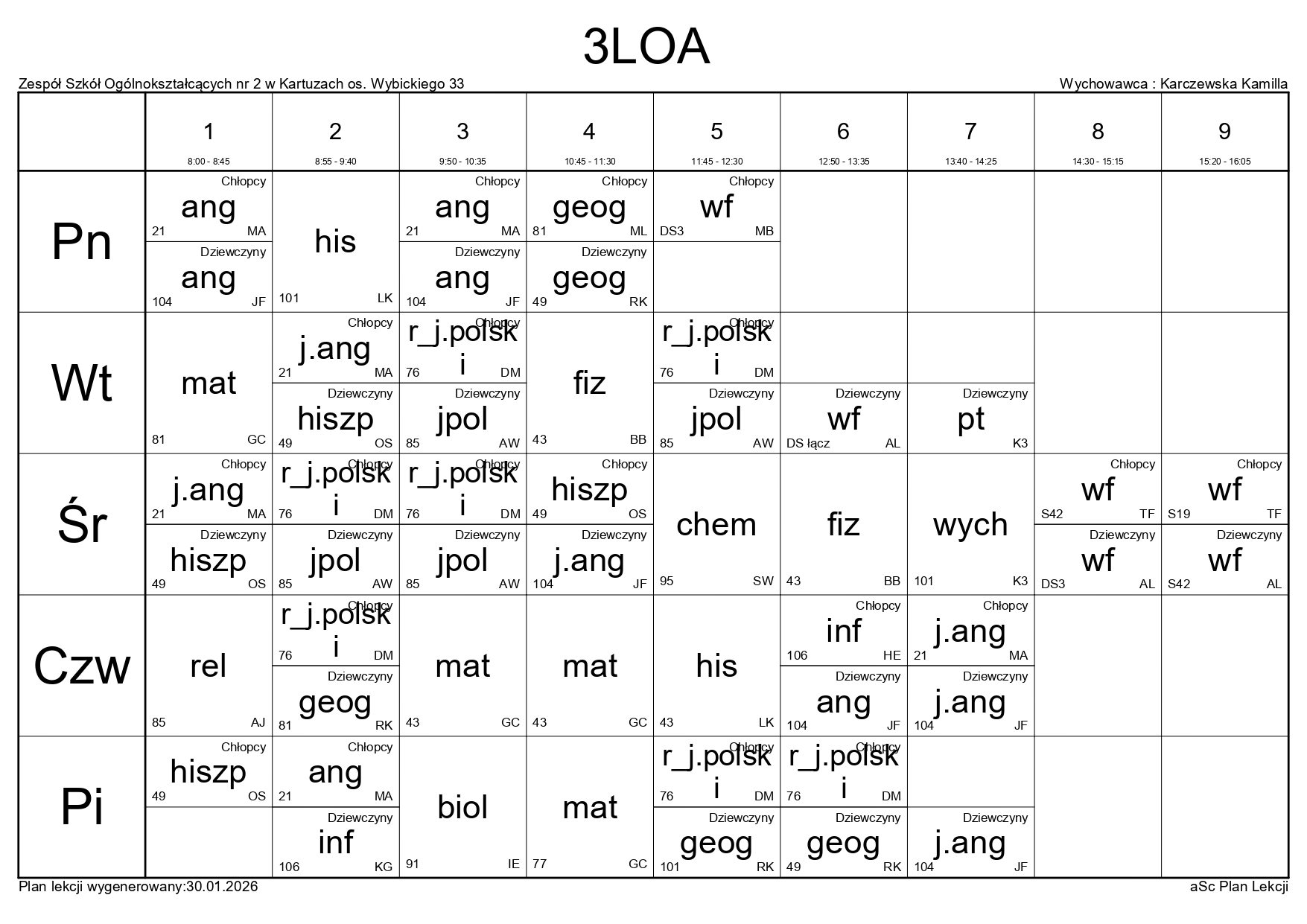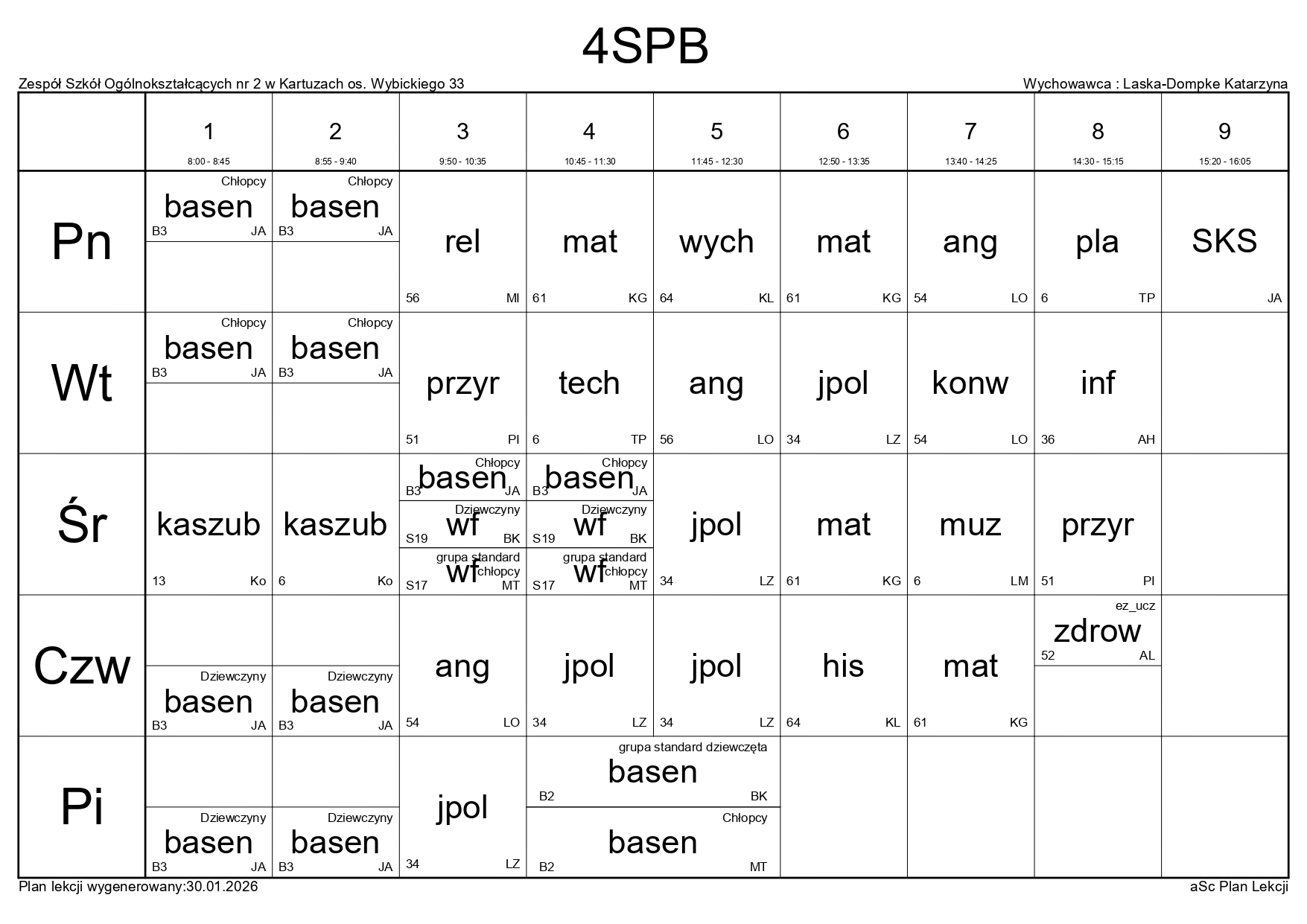 Poniżej przedstawiamy Państwu obowiązujący plan lekcji dla poszczególnych klas