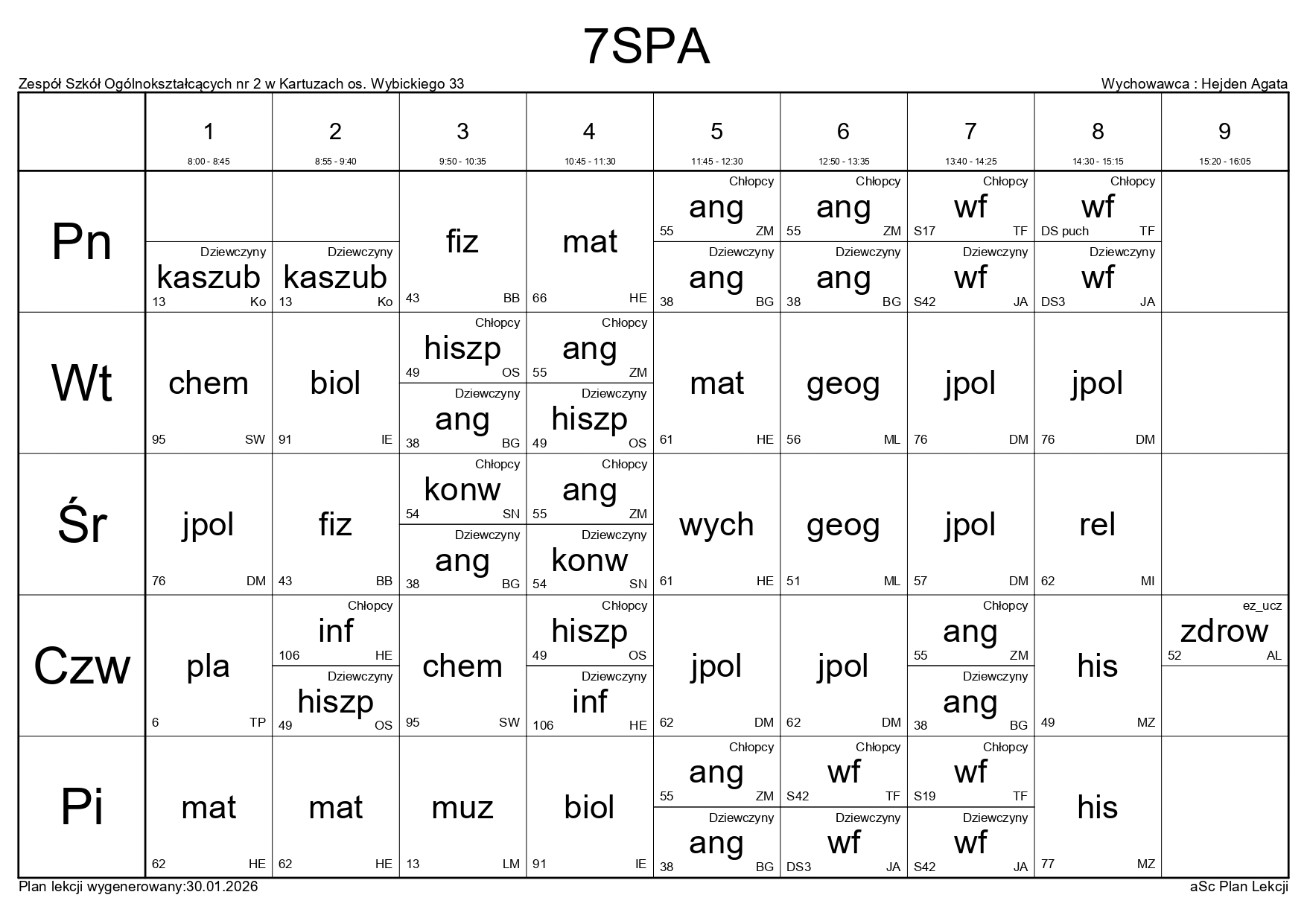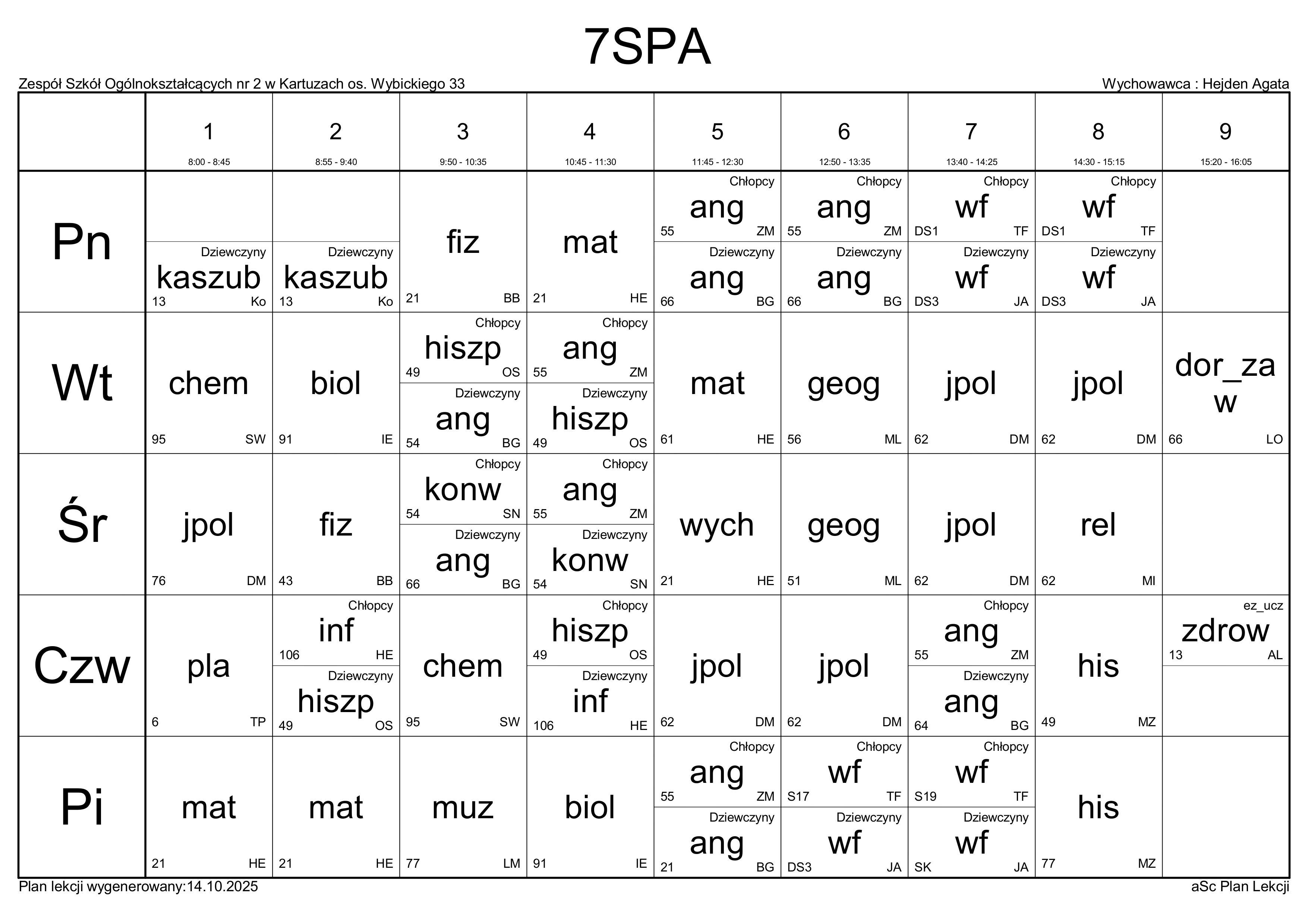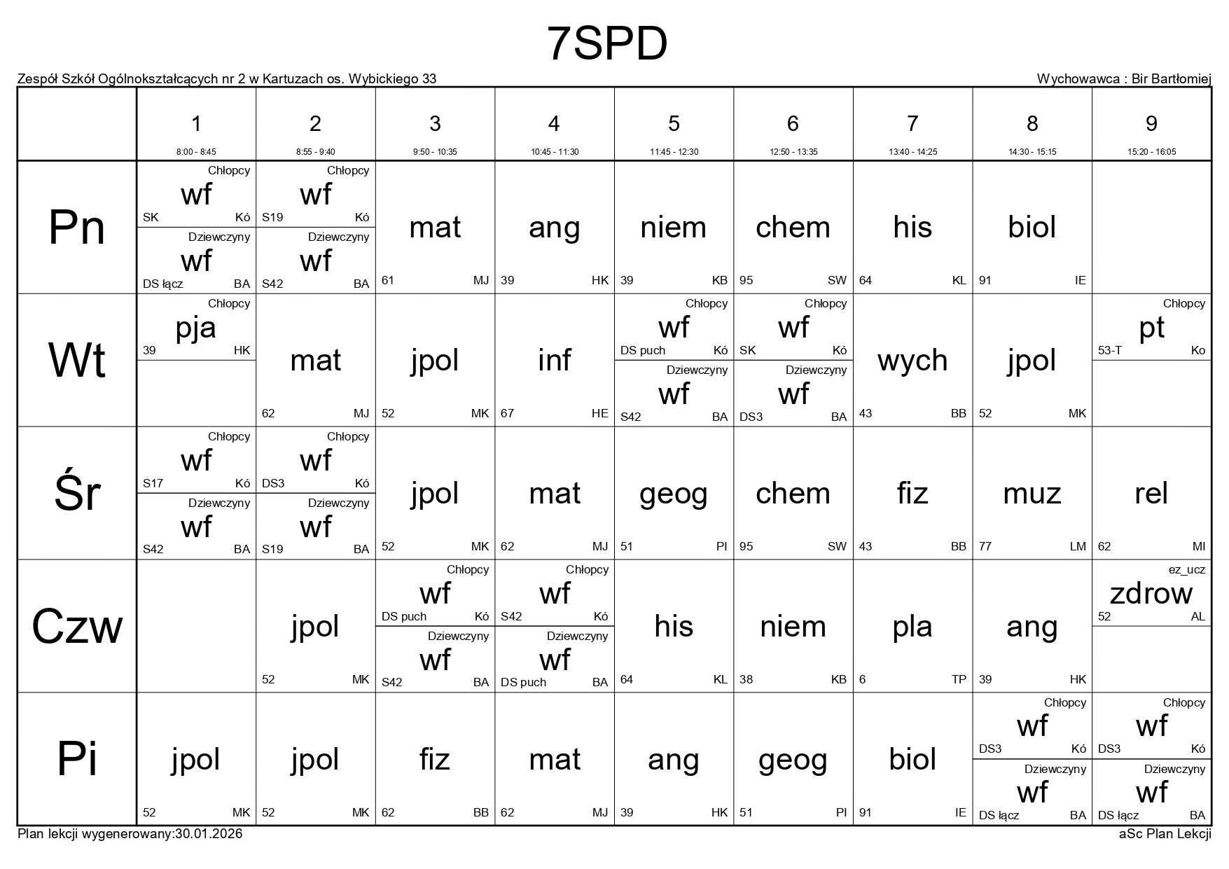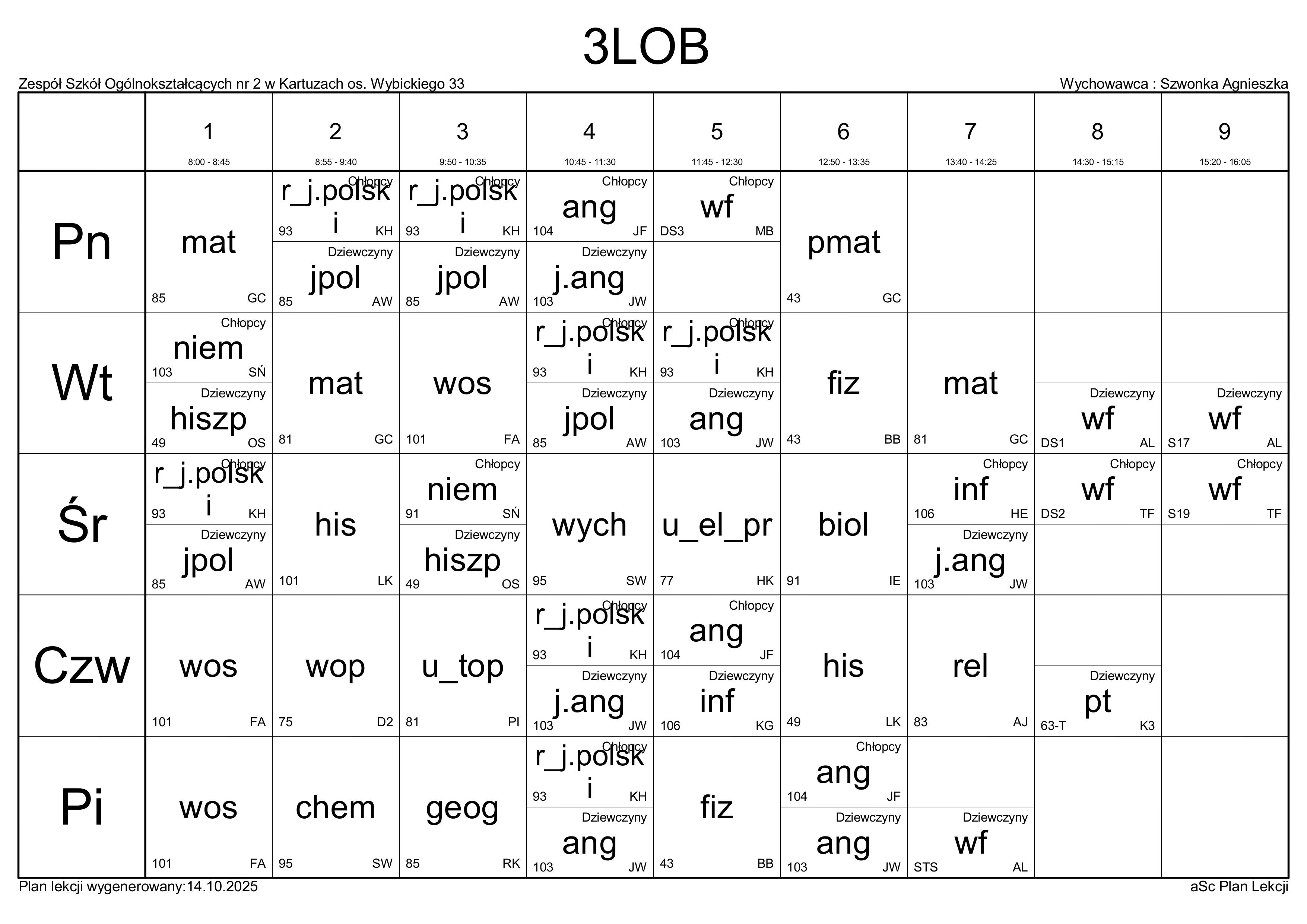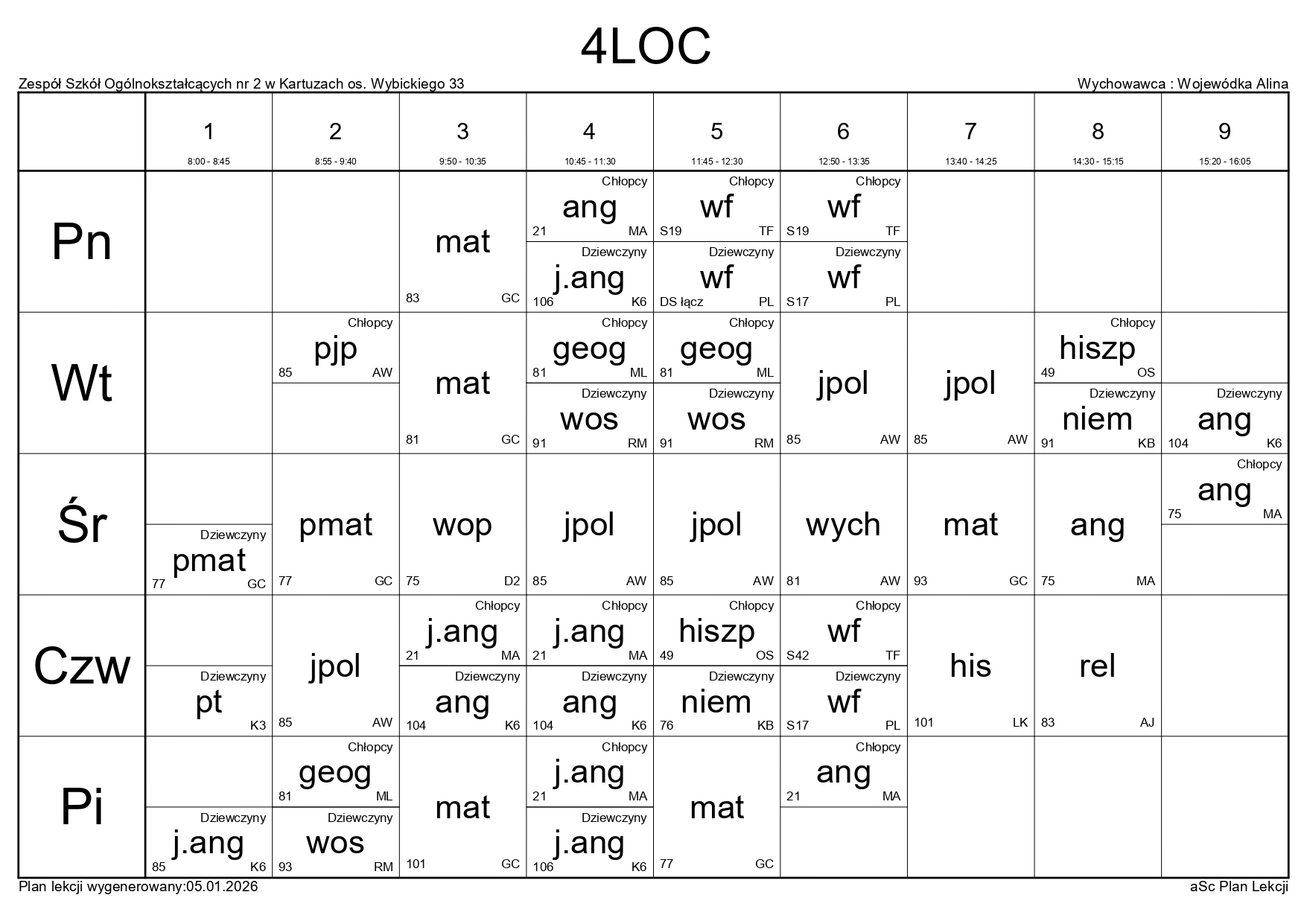 Poniżej przedstawiamy Państwu obowiązujący plan lekcji dla poszczególnych klas