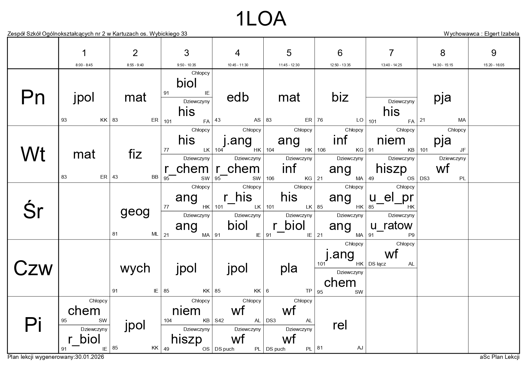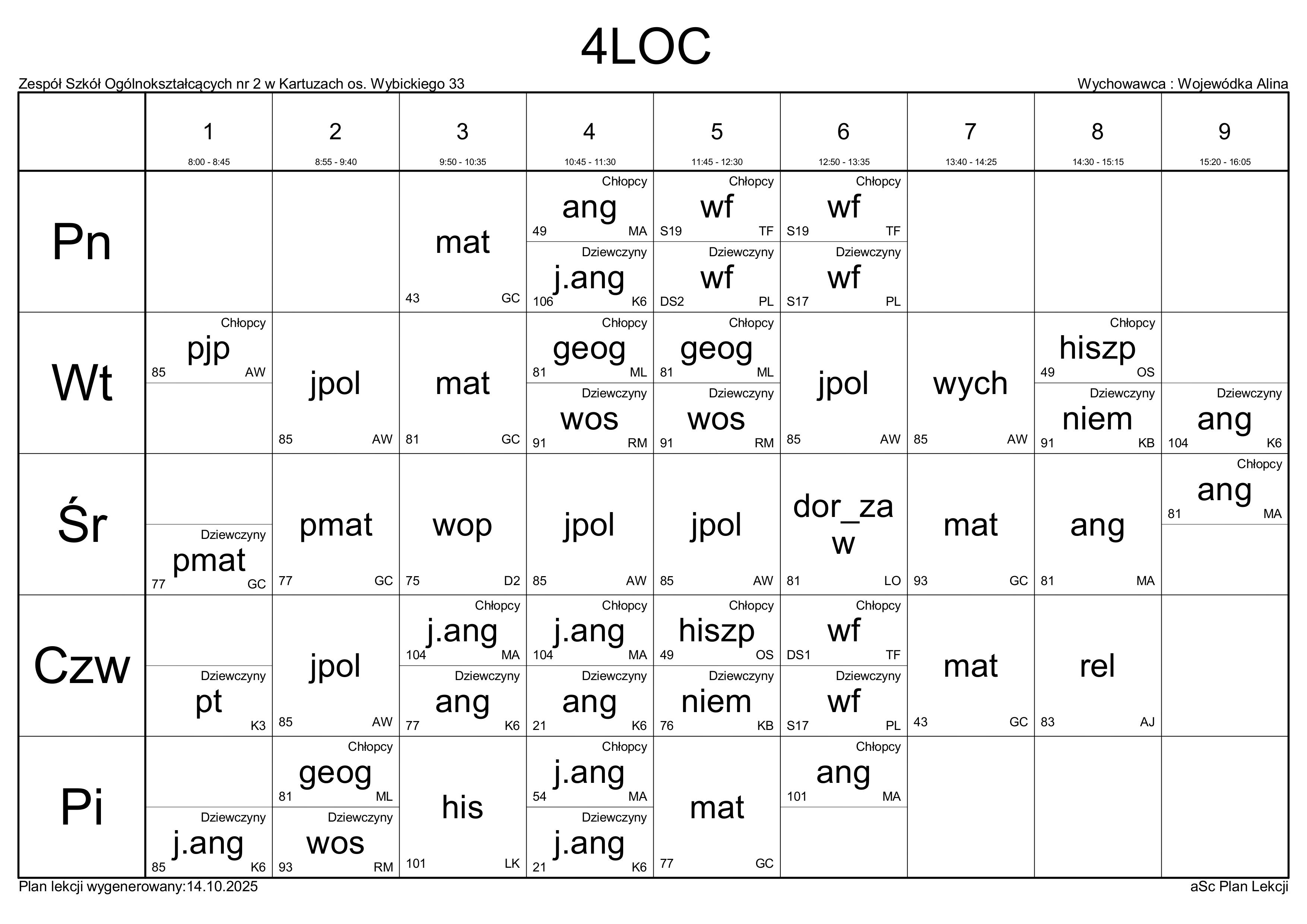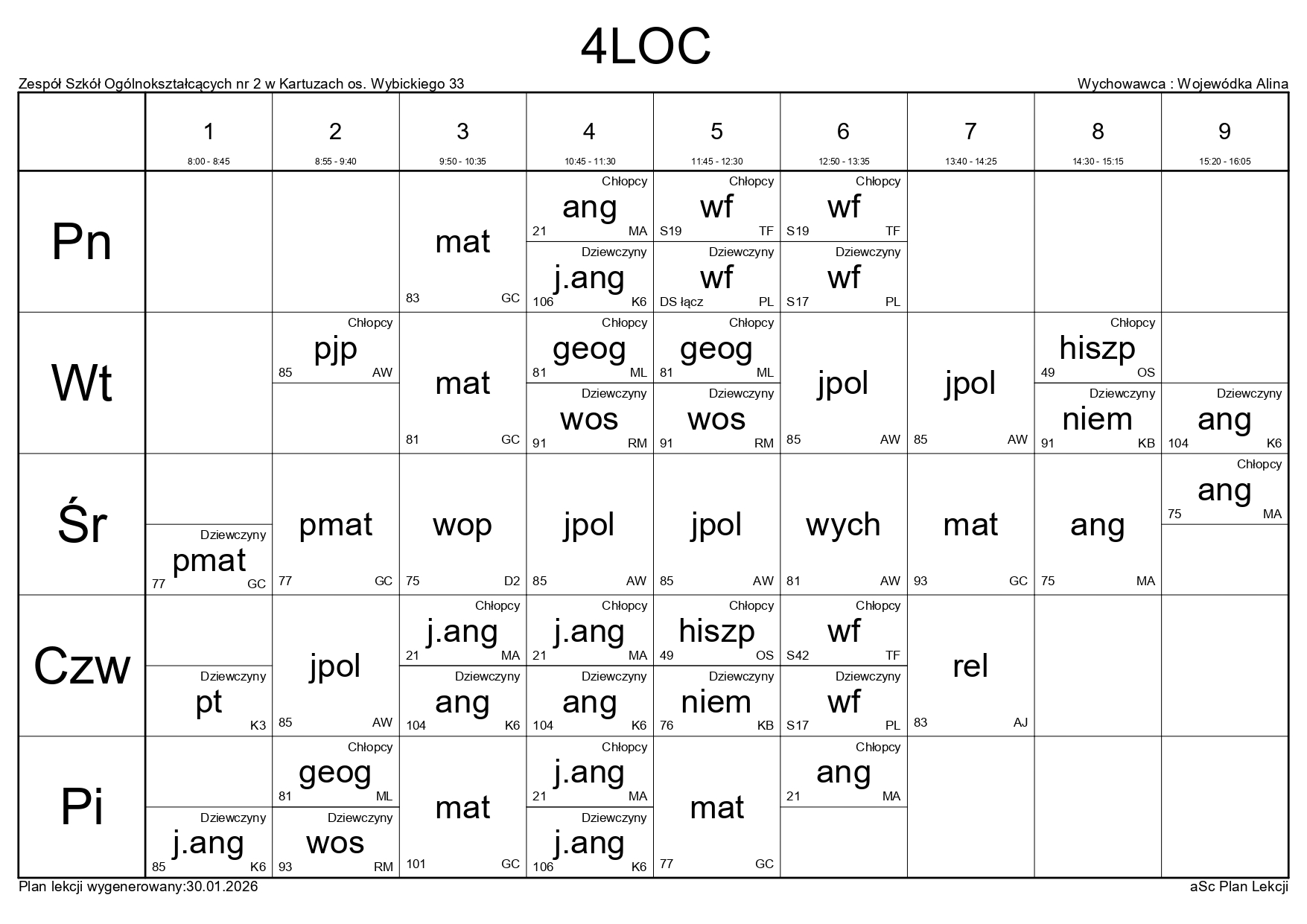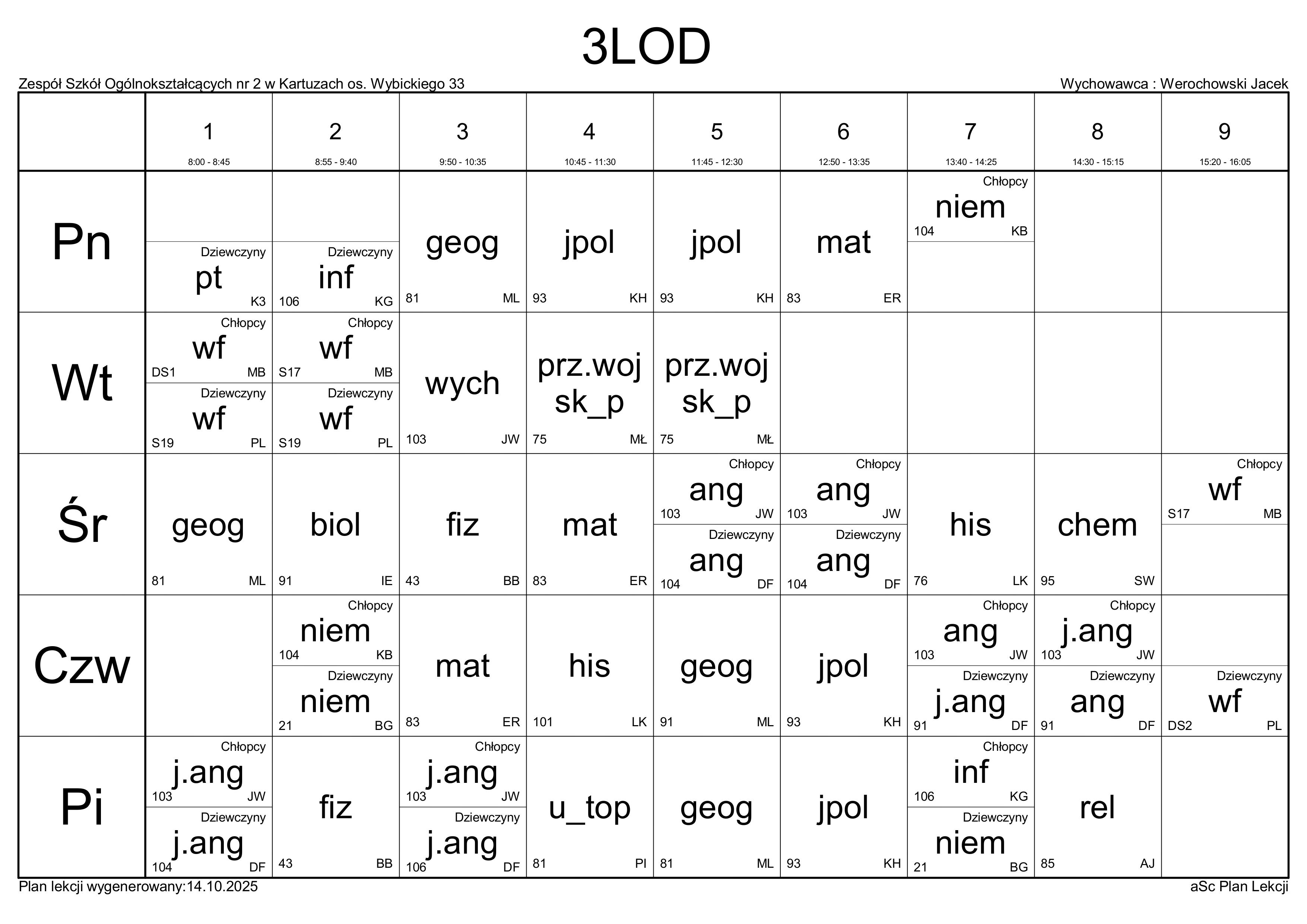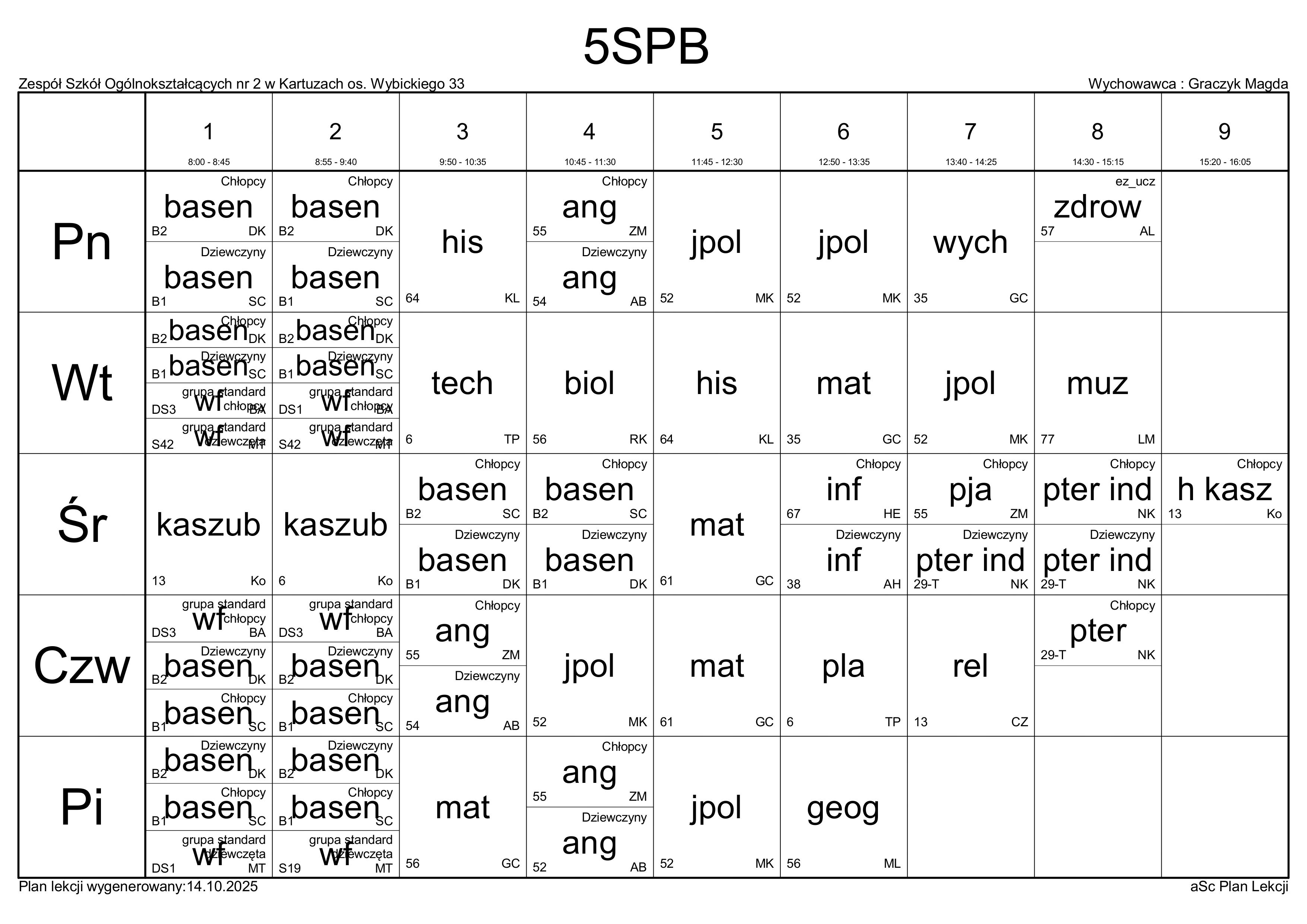 Poniżej przedstawiamy Państwu obowiązujący plan lekcji dla poszczególnych klas