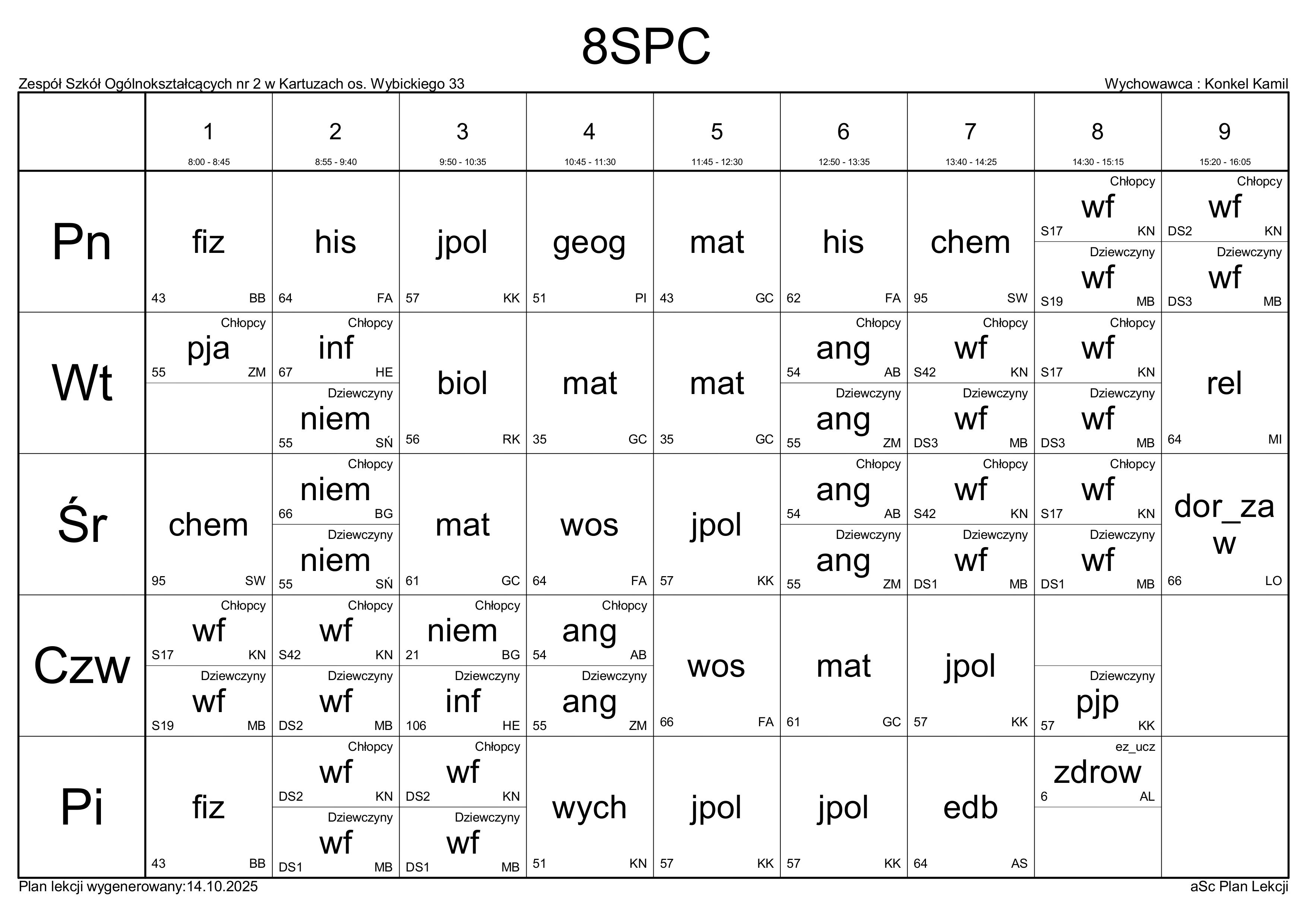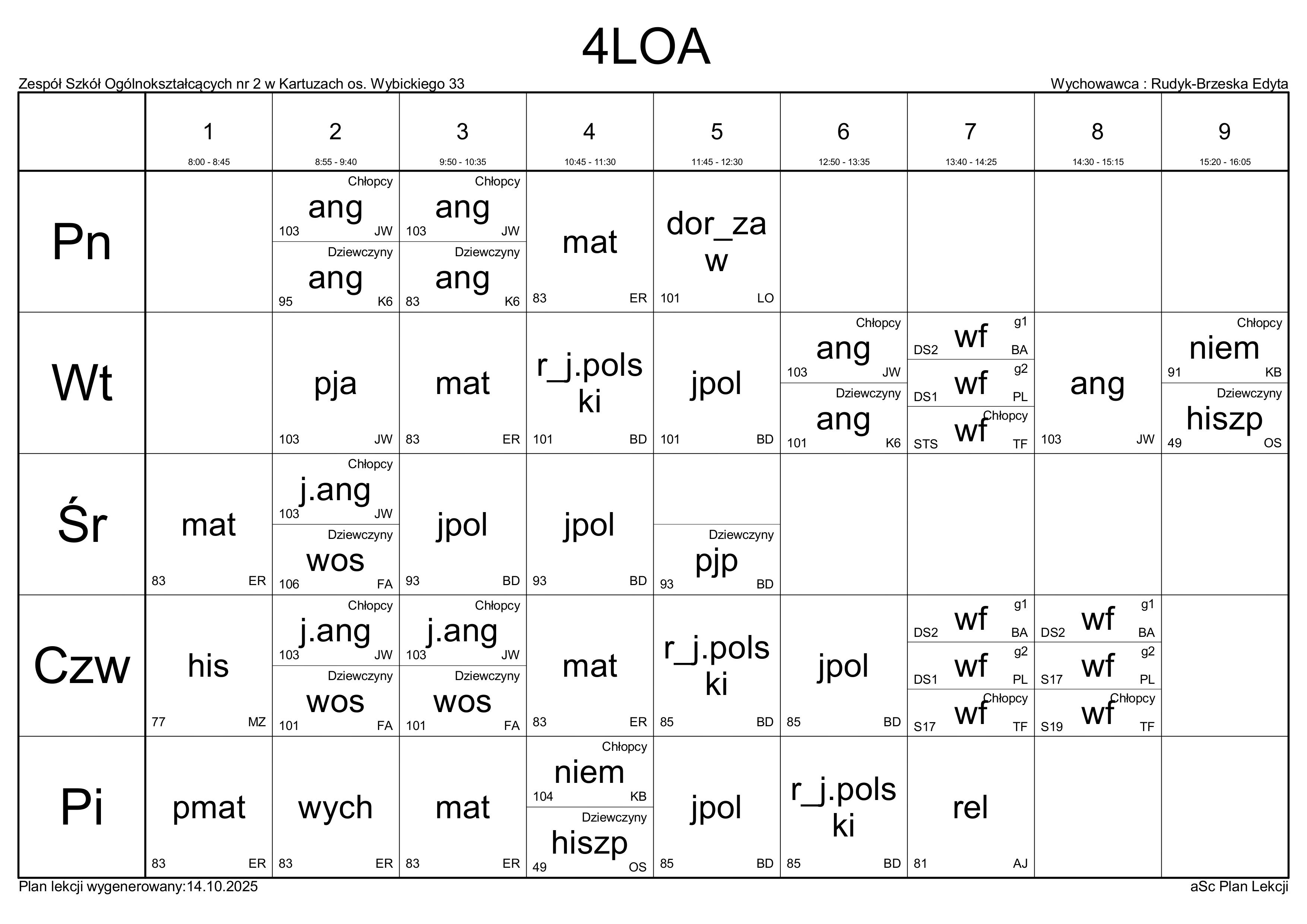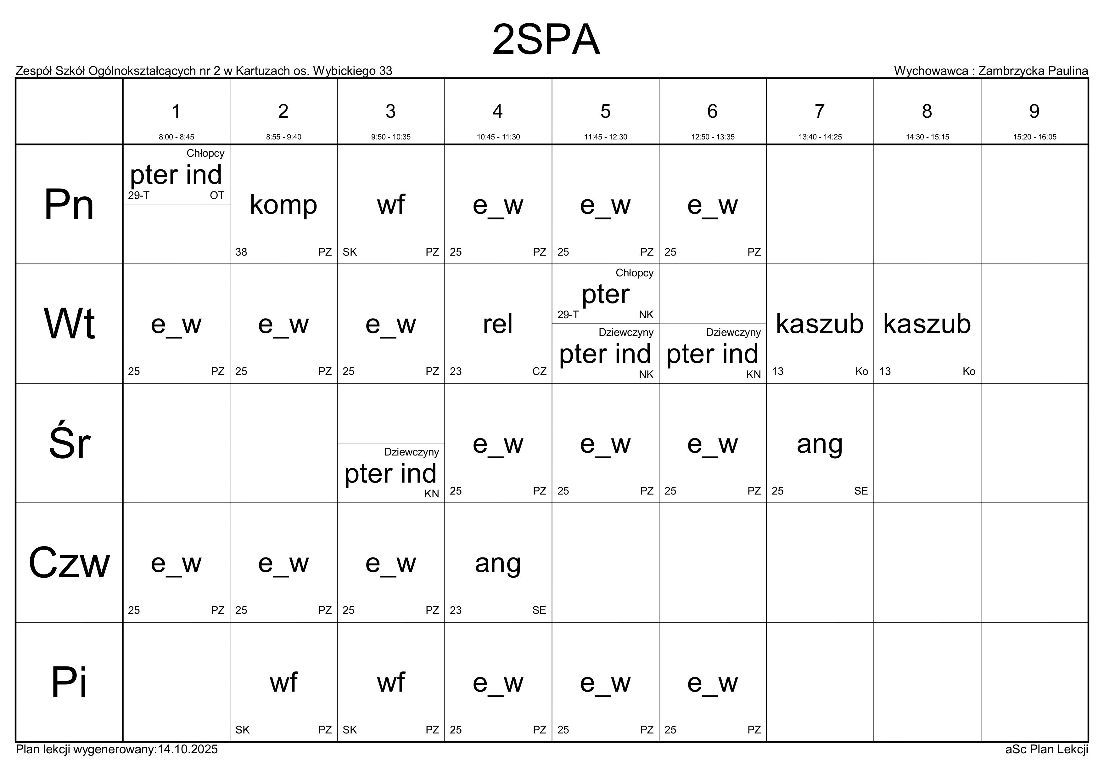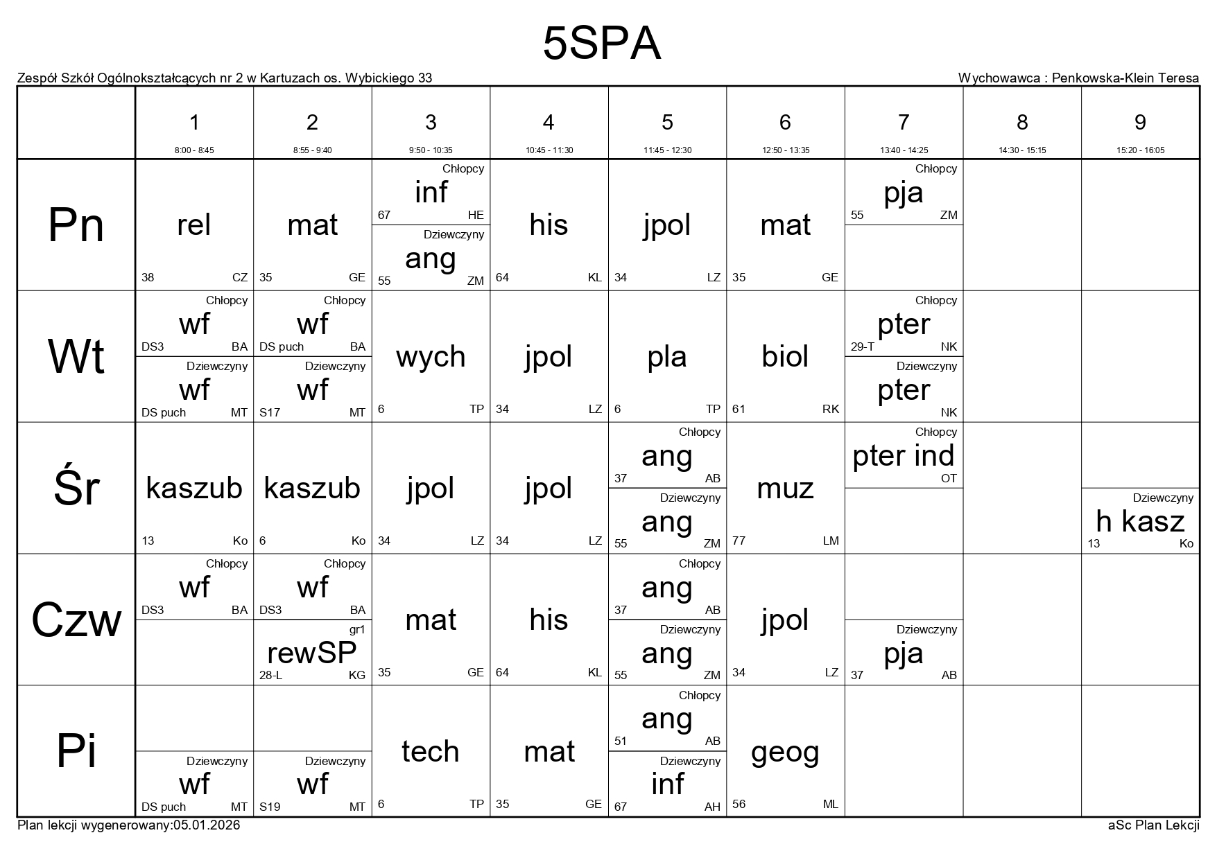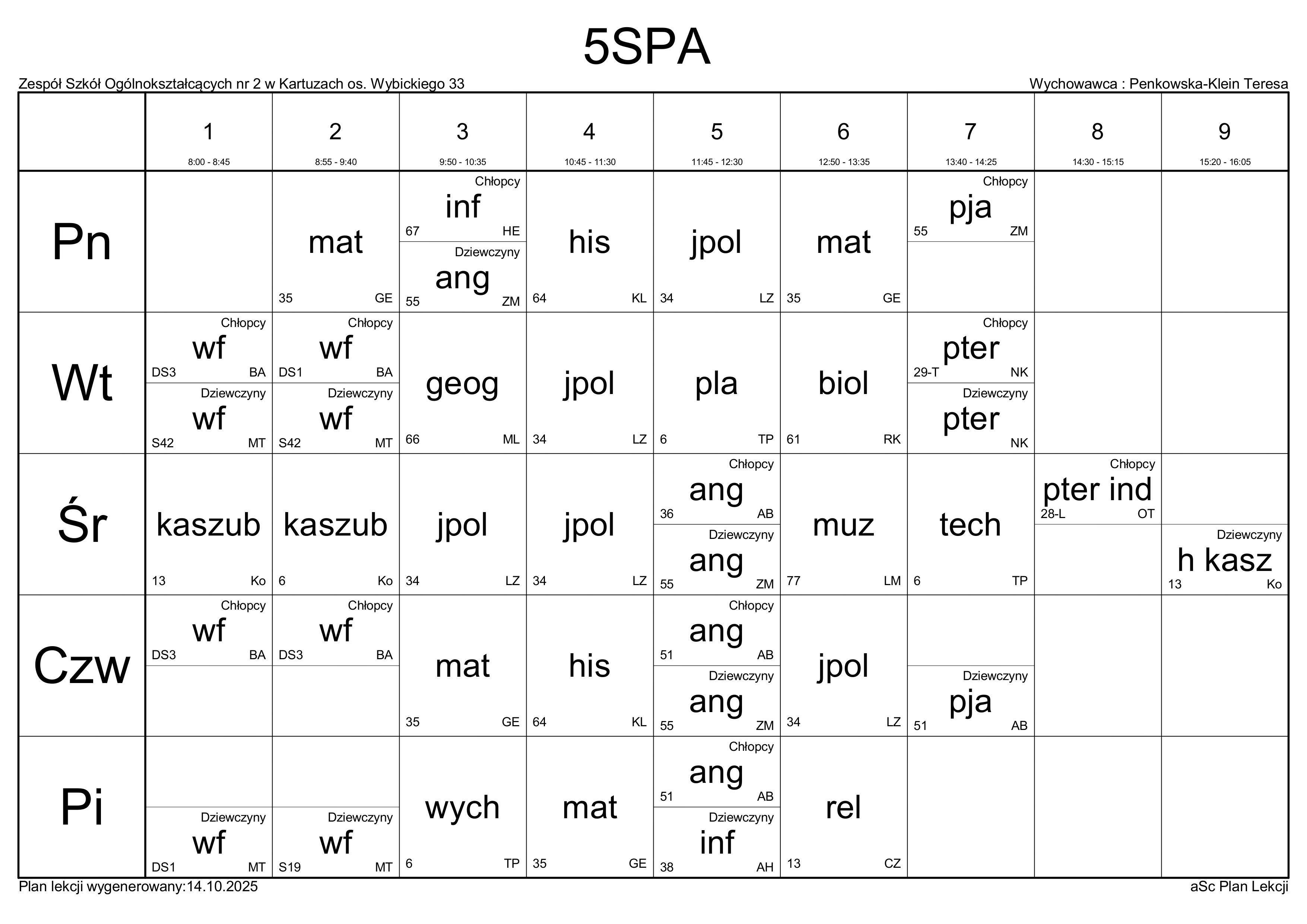 Poniżej przedstawiamy Państwu obowiązujący plan lekcji dla poszczególnych klas
