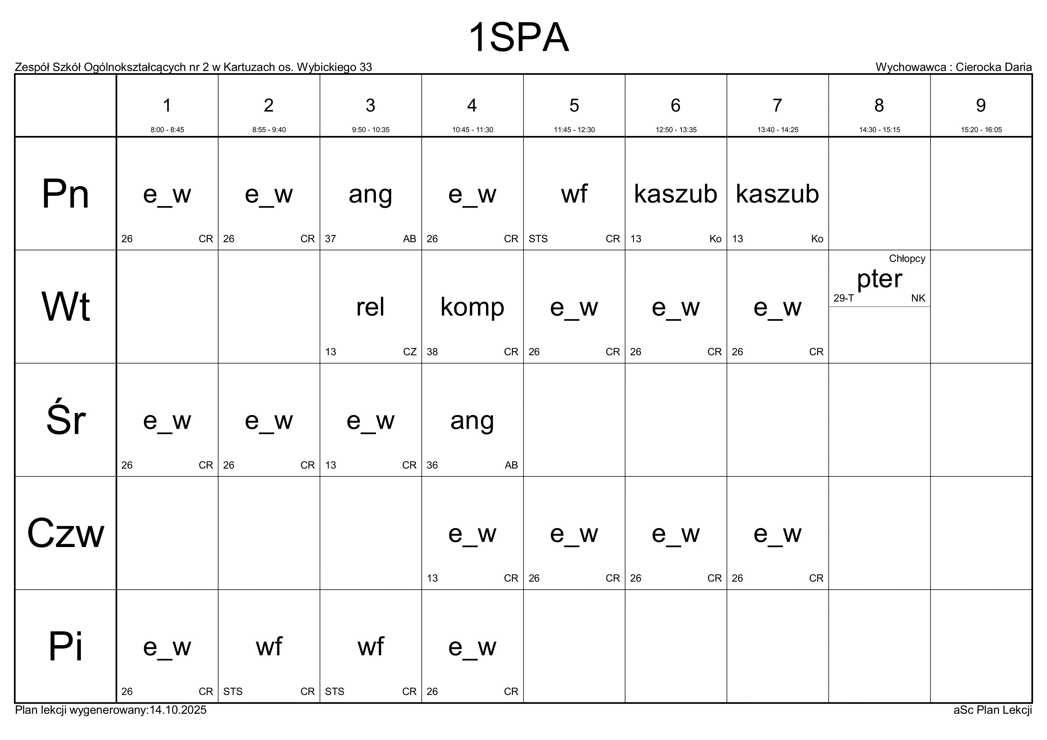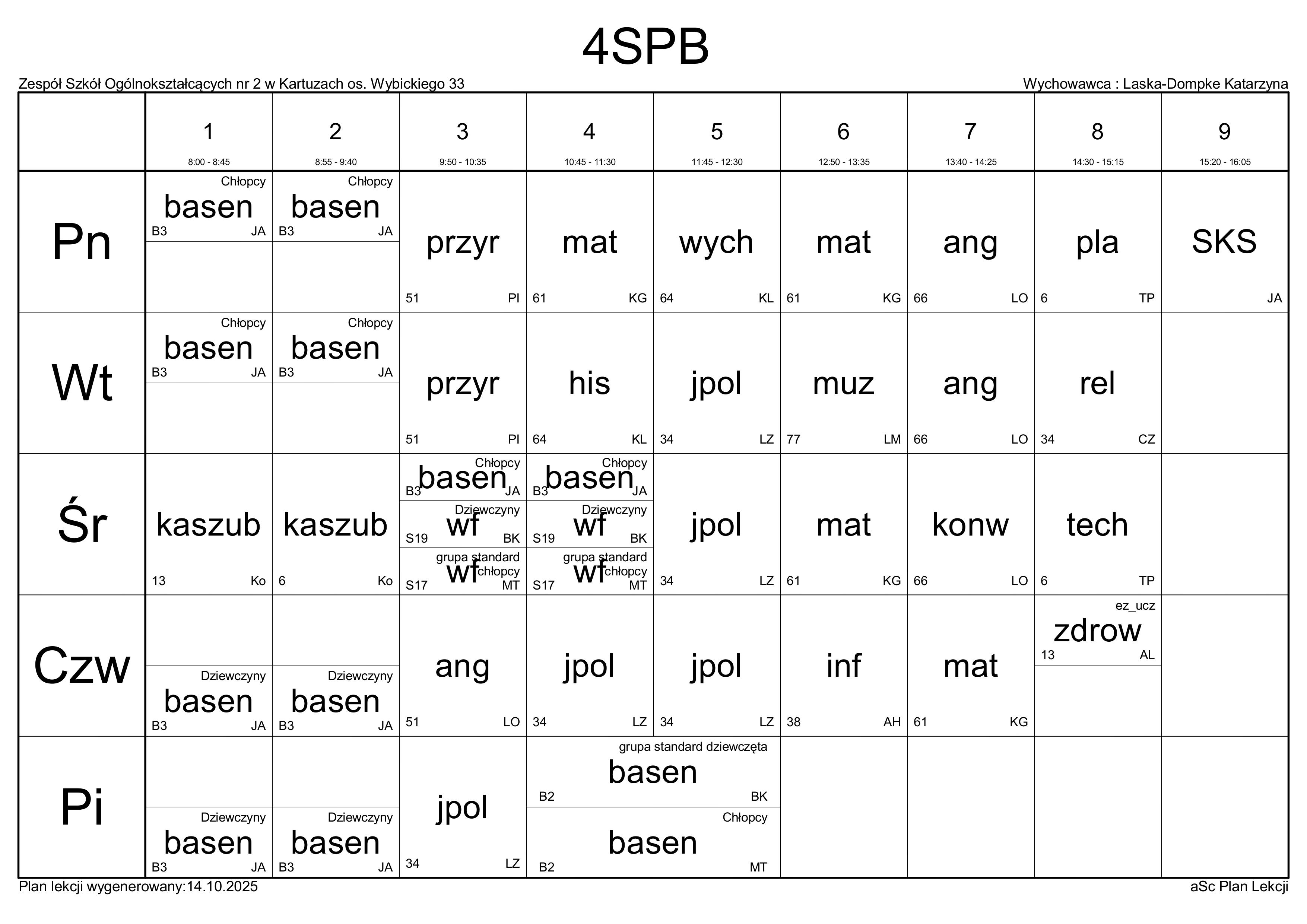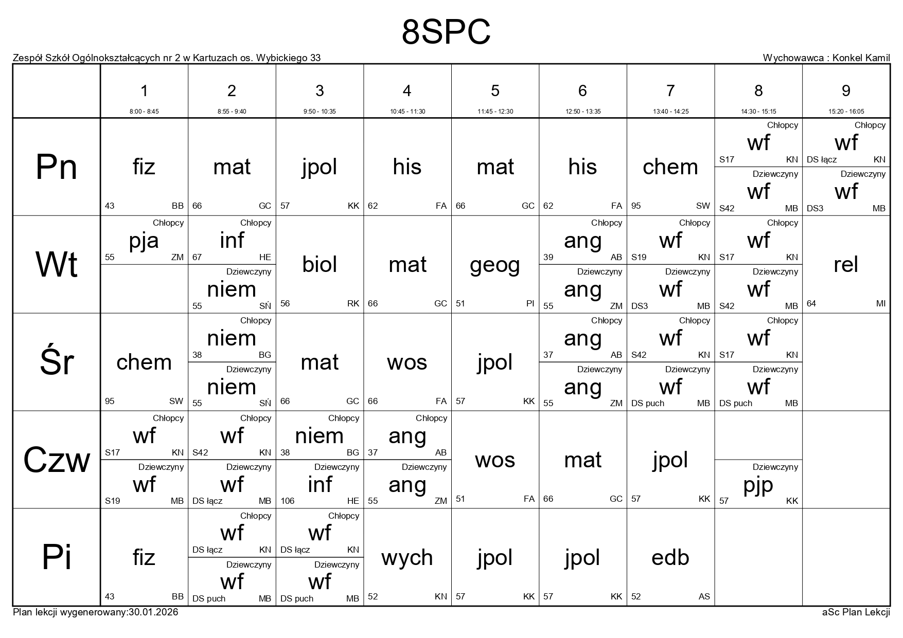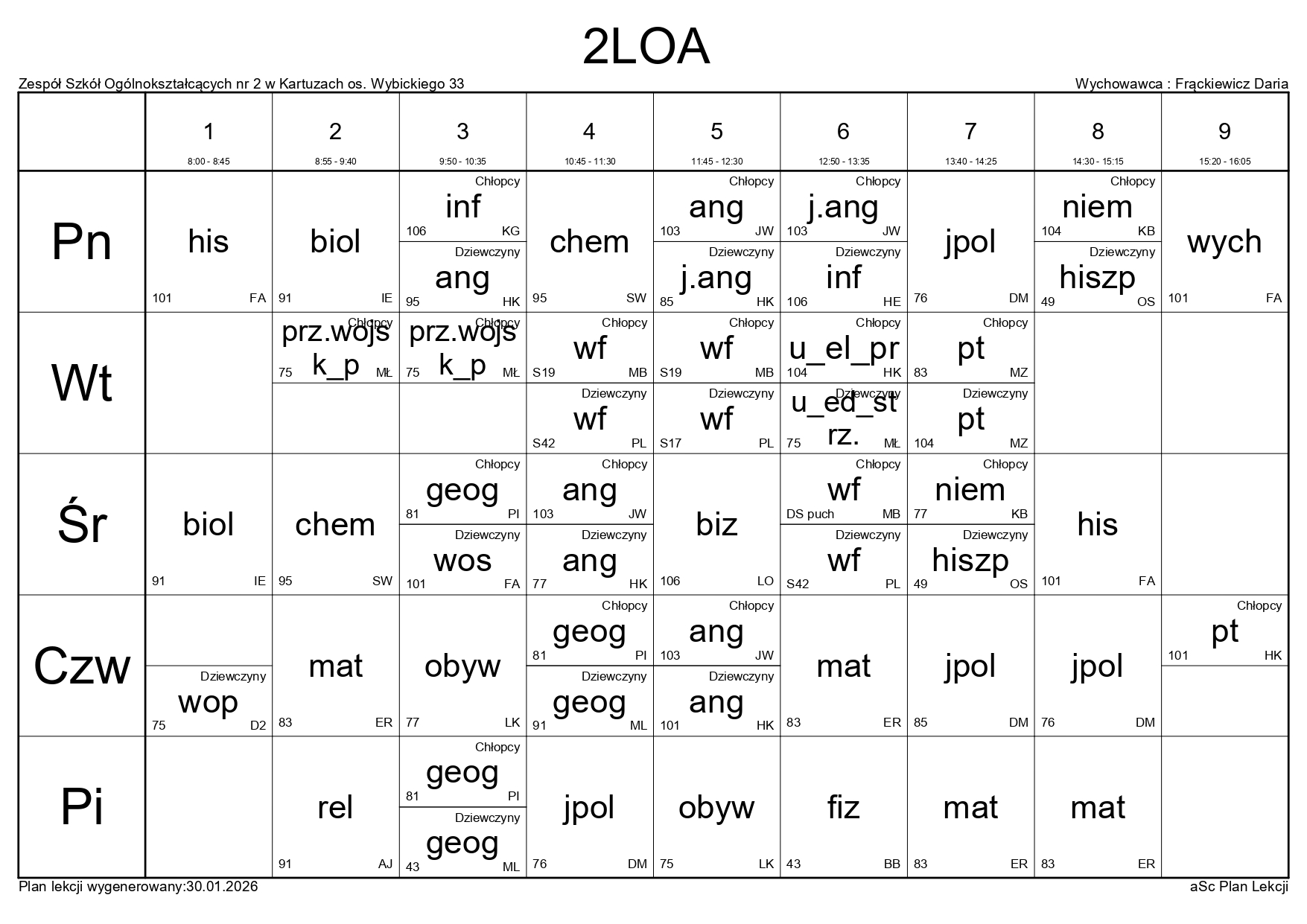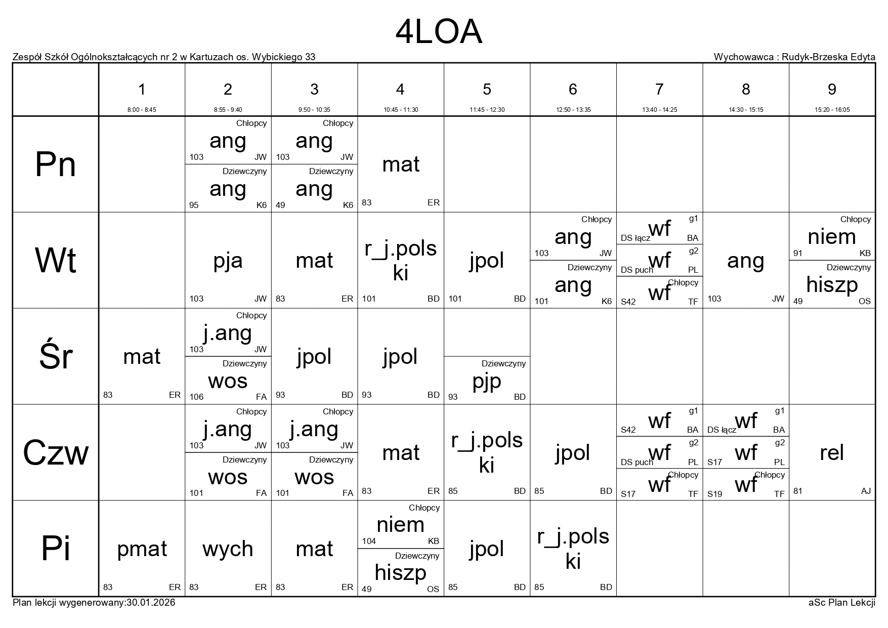 Poniżej przedstawiamy Państwu obowiązujący plan lekcji dla poszczególnych klas