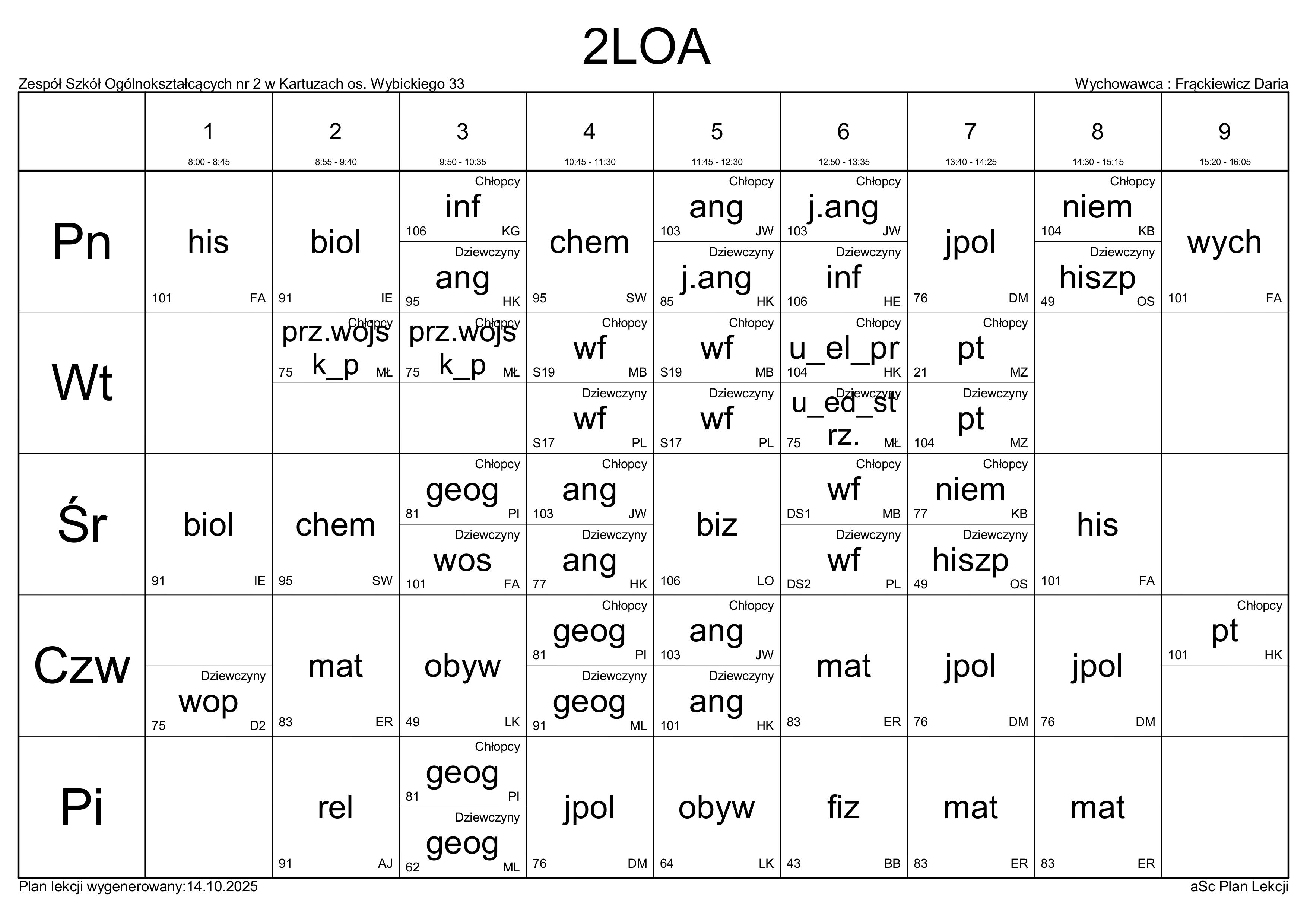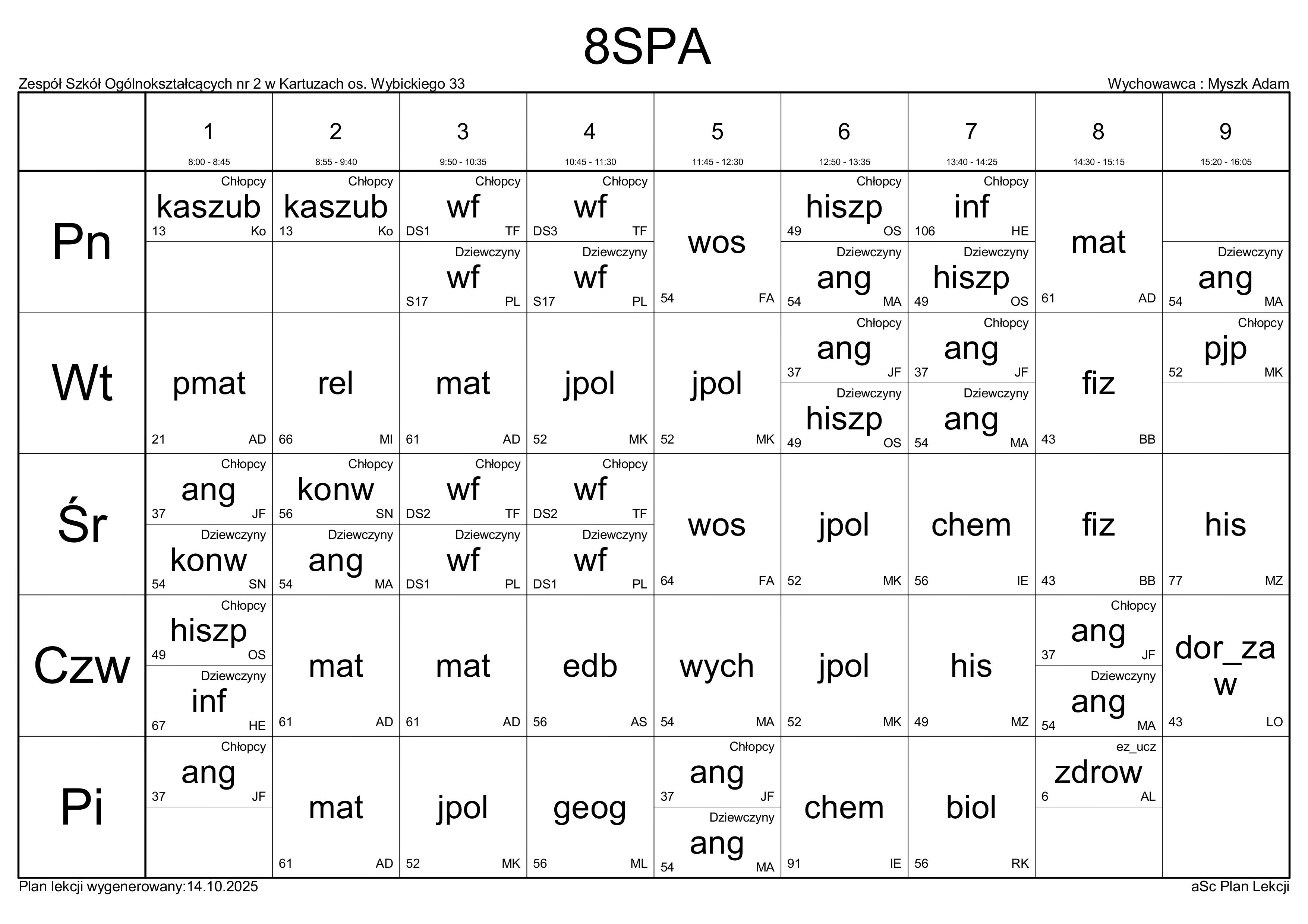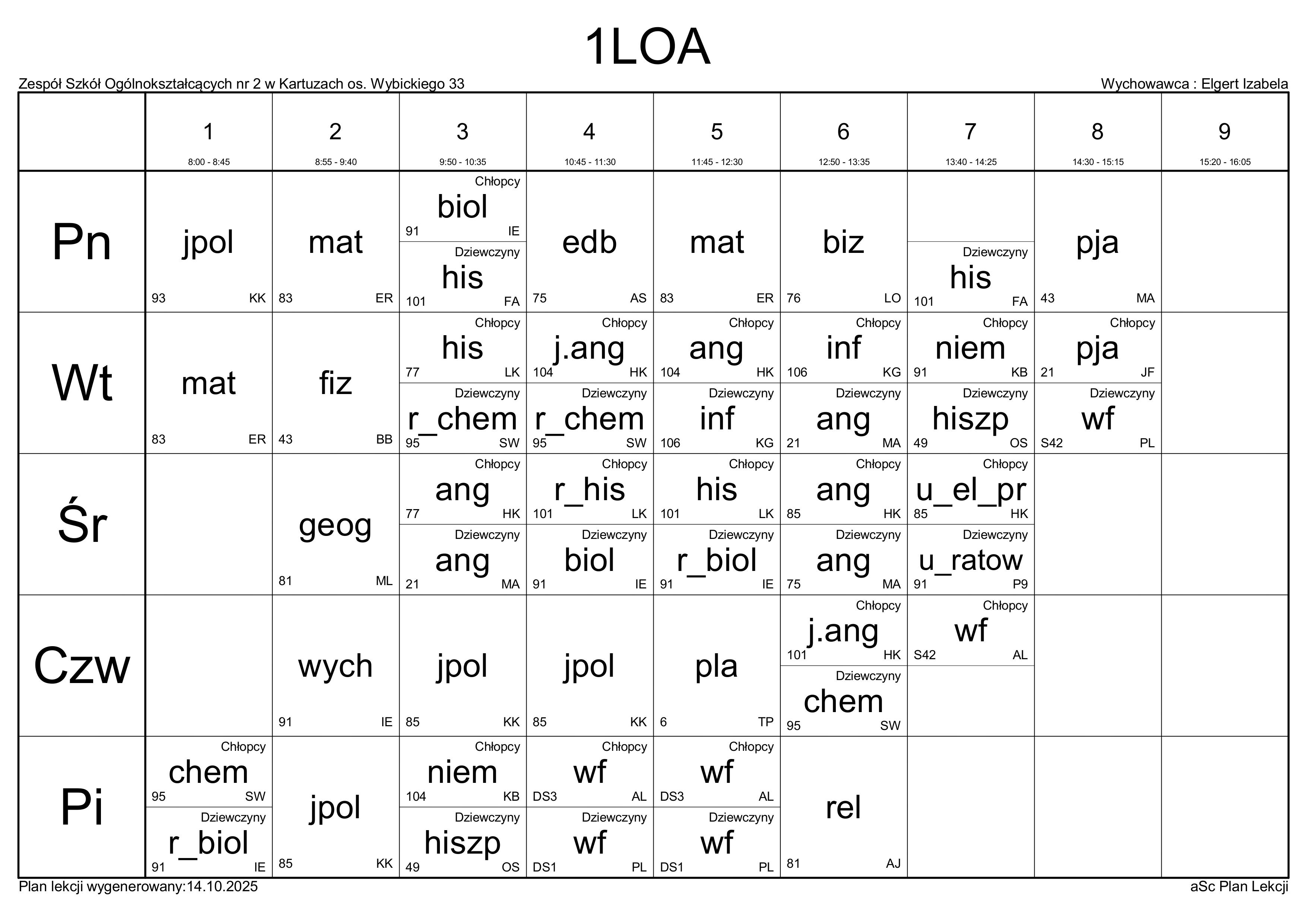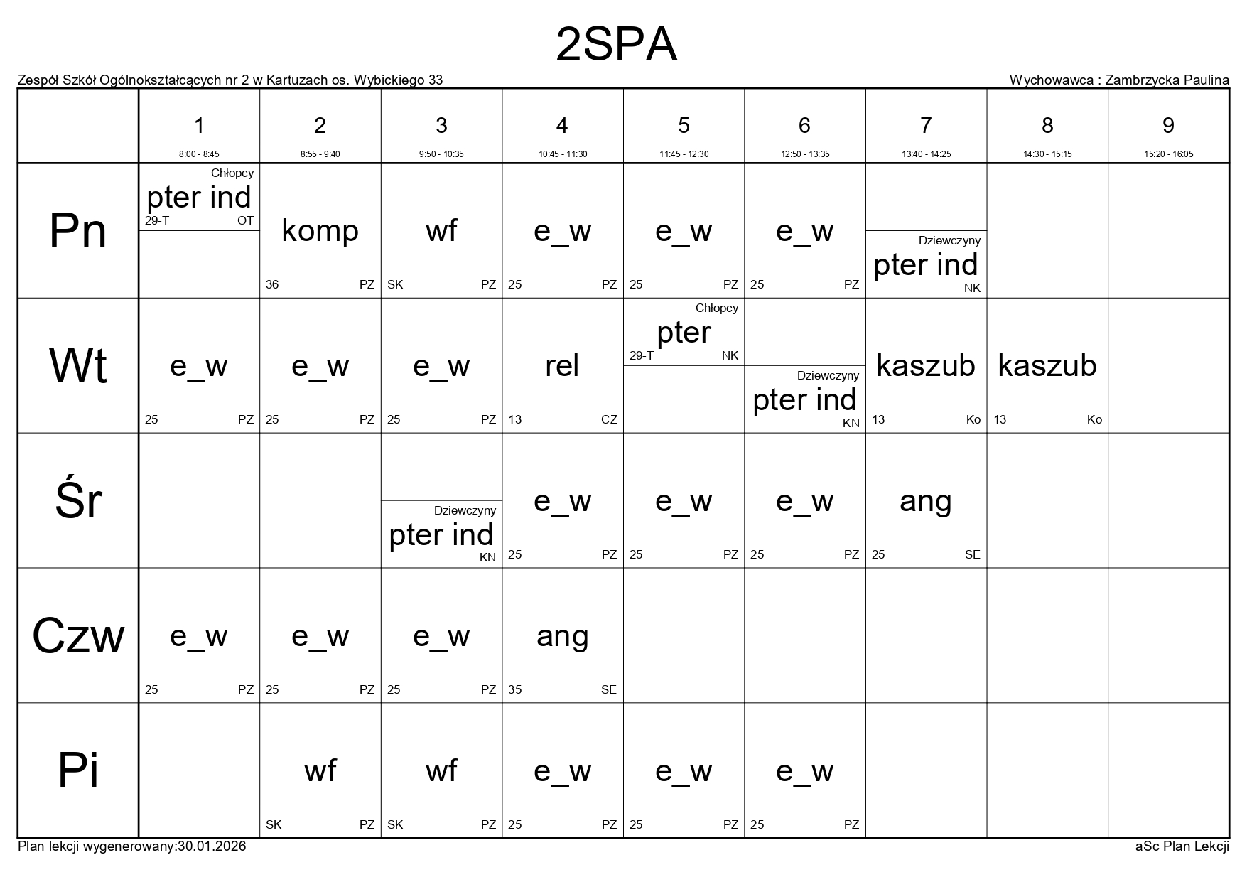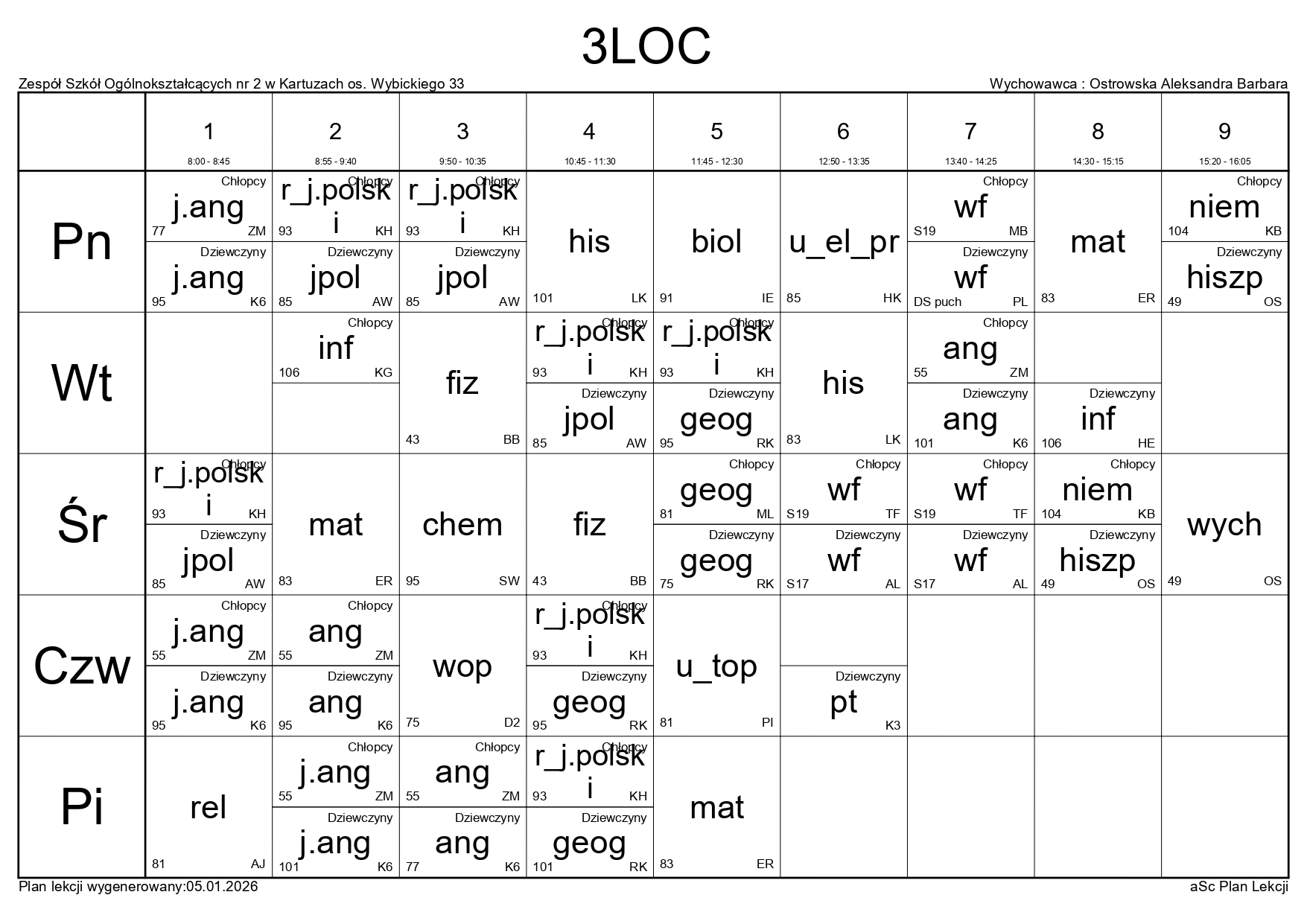 Poniżej przedstawiamy Państwu obowiązujący plan lekcji dla poszczególnych klas