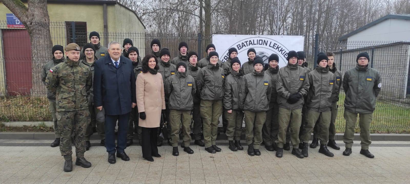 "Ważne wydarzenie dla regionu kaszubskiego". Dnia 29 listopada 2025 uczniowie klasy drugiej i trzeciej OddziaÅ‚ów Przygotowania Wojskowego wziÄ™li udziaÅ‚ w uroczystym otwarciu koszar 72 KoÅ›cierskiego Batalionu Lekkiej Piechoty im. ppor ZdzisÅ‚awa Badochy, ps. Å»elazny. Nasi uczniowie w towarzystwie pana Burmistrza Kartuz MieczysÅ‚awa Grzegorza GoÅ‚uÅ„skiego i pani dyrektor ZSO nr 2 w Kartuzach Kingi SeroczyÅ„skiej byli też Å›wiadkami uroczystej przysiÄ™gi wojskowej jakÄ… zÅ‚ożyli nowo wcieleni żoÅ‚nierze 7 Pomorskiej Brygady Obrony Terytorialnej.